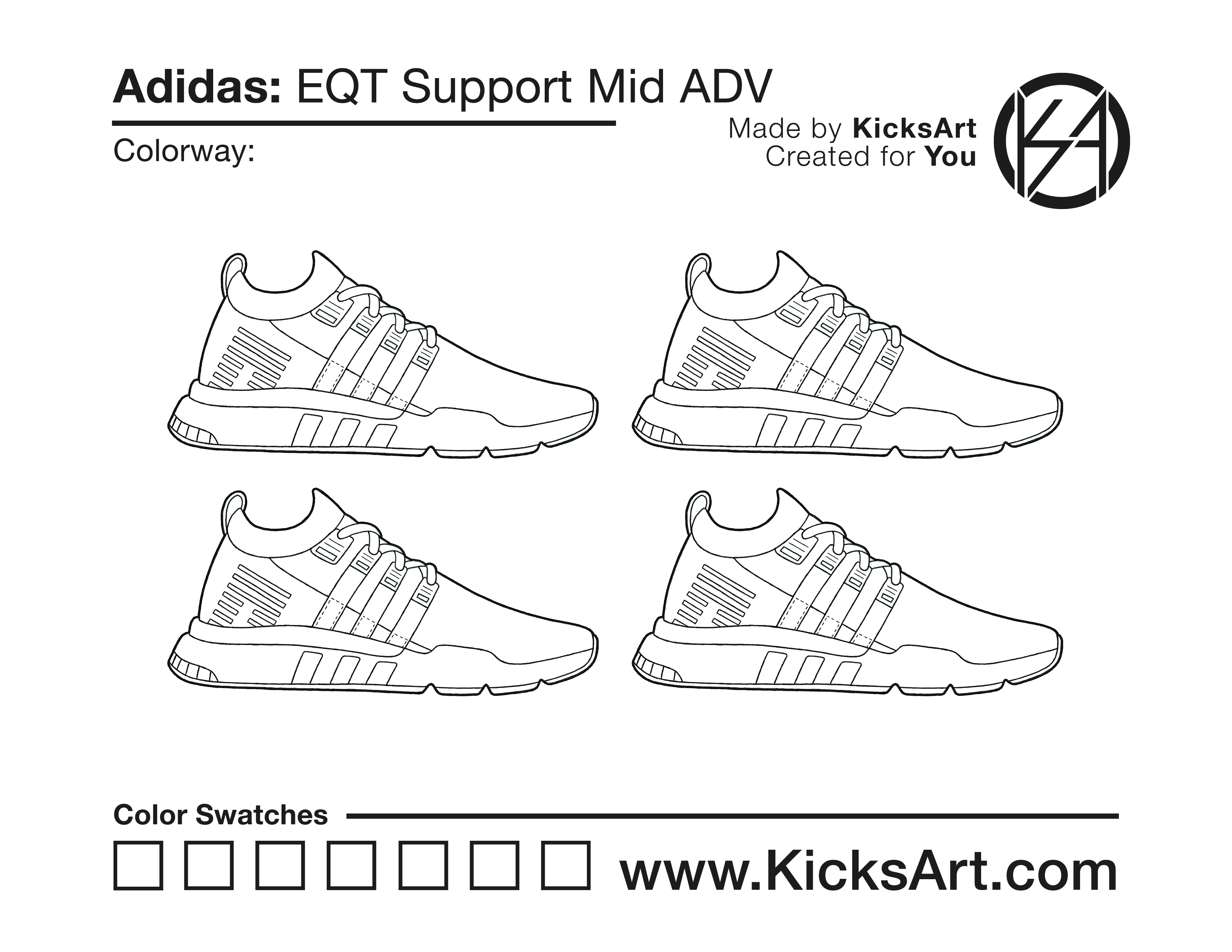 Adidas EQT Support Mid ADV Sneaker Coloring Pages March 15, 2019 kicksart05 For any sneaker coloring page, click on the button above the image to start the instant download! FREE Download: Adidas EQT Support Mid ADV Art materials can be expensive!Try out colorways on these smaller templates so your supplies can last longer! Adidas EQT Support Mid ADV (4UP)