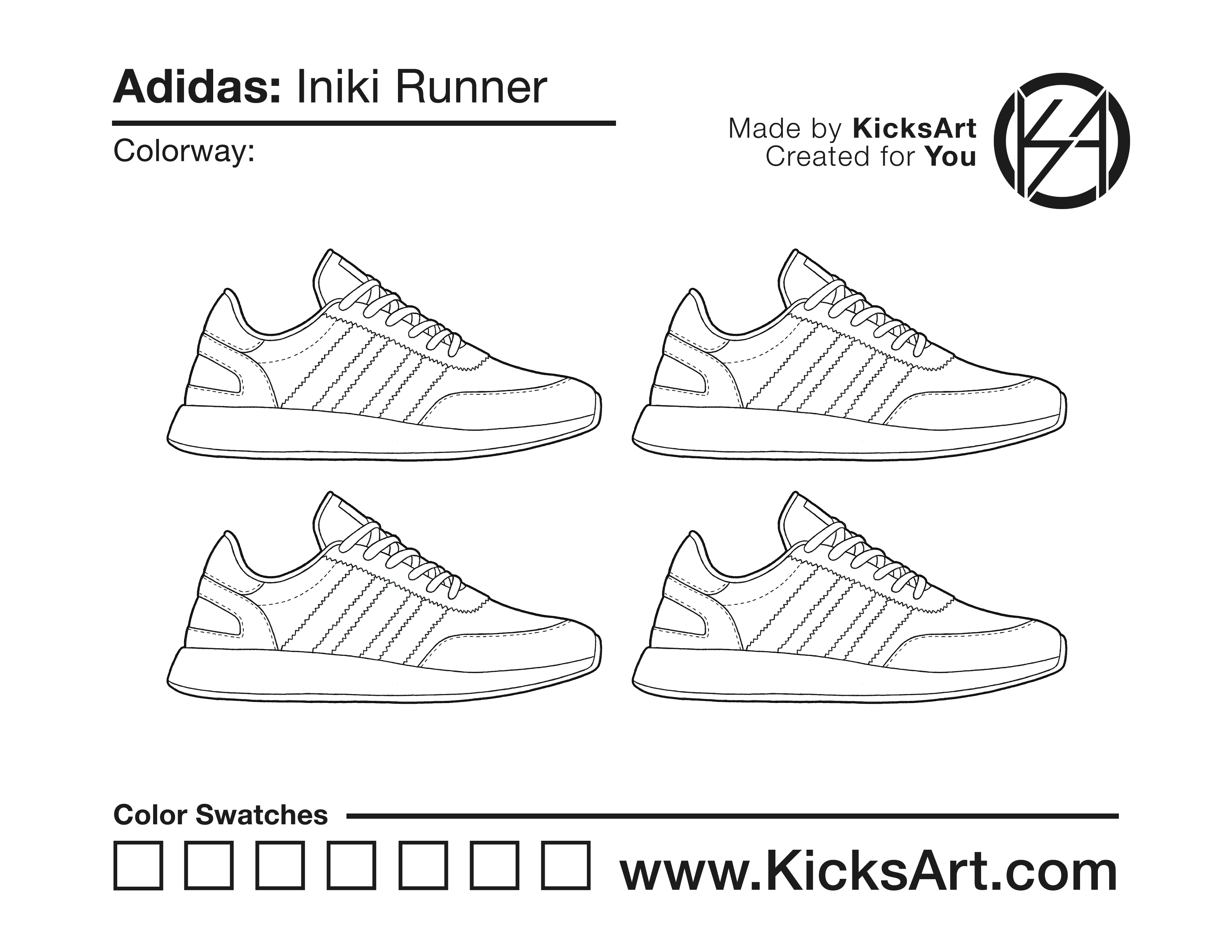 Adidas Iniki Runner Sneaker Coloring Pages March 15, 2019 kicksart05 For any sneaker coloring page, click on the button above the image to start the instant download! FREE Download: Adidas Iniki Runner Art materials can be expensive!Try out colorways on these smaller templates so your supplies can last longer! Adidas Iniki Runner (4UP)