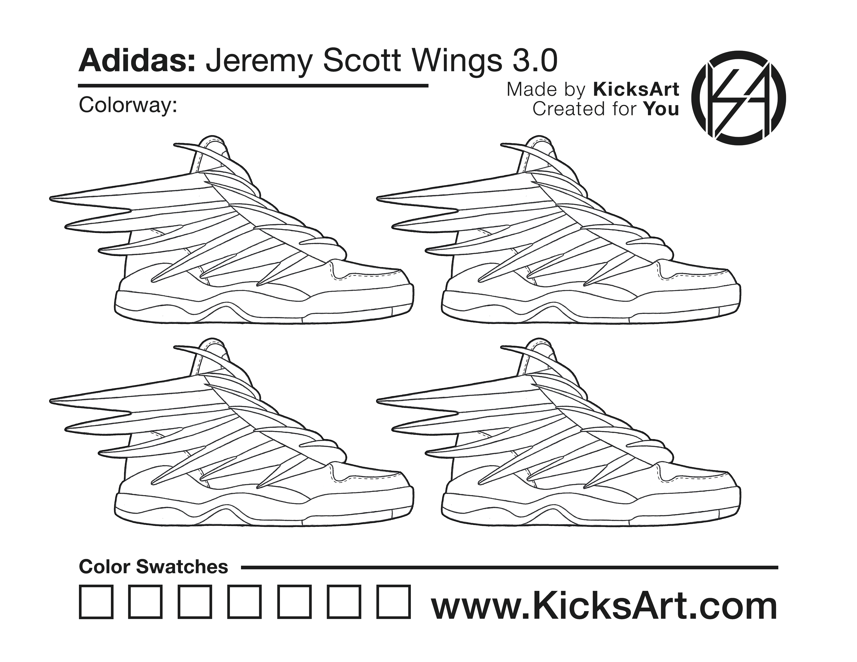 Adidas Jeremy Scott 3.0 Sneaker Coloring Pages March 15, 2019 kicksart05 For any sneaker coloring page, click on the button above the image to start the instant download! FREE Download: Adidas Jeremy Scott 3.0 Art materials can be expensive!Try out colorways on these smaller templates so your supplies can last longer! Adidas Jeremy Scott 3.0 (4UP)