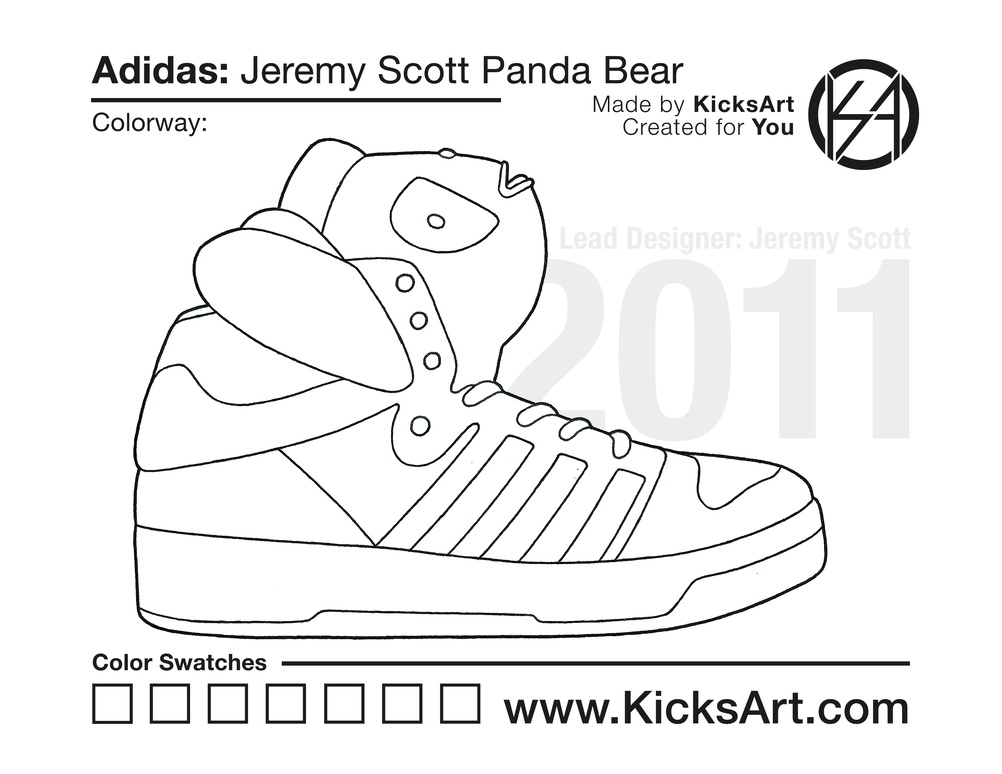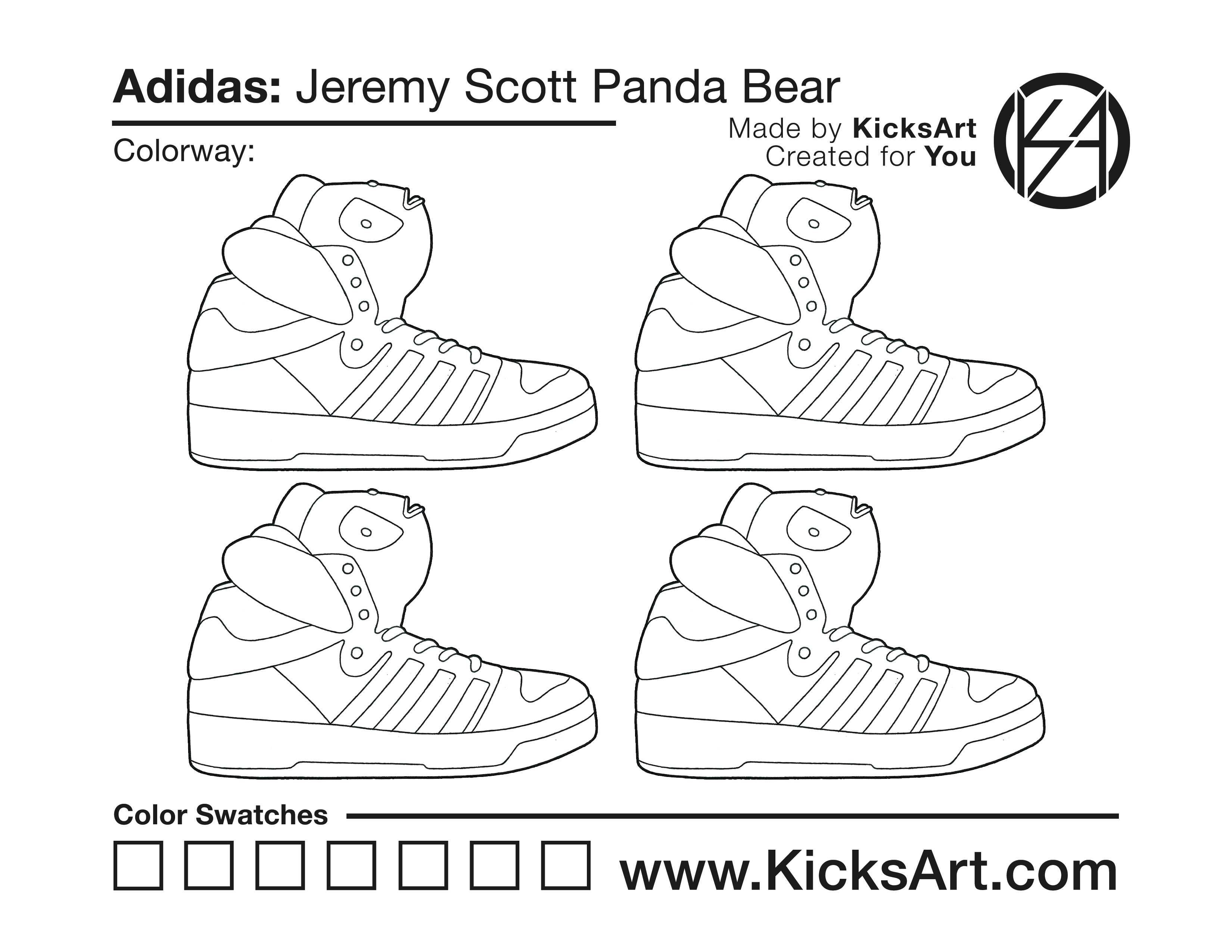 Adidas Jeremy Scott Panda Bear Sneaker Coloring Pages March 15, 2019 kicksart05 For any sneaker coloring page, click on the button above the image to start the instant download! FREE Download: Adidas Jeremy Scott Panda Bear Art materials can be expensive!Try out colorways on these smaller templates so your supplies can last longer! Adidas Jeremy Scott Panda Bear (4UP)