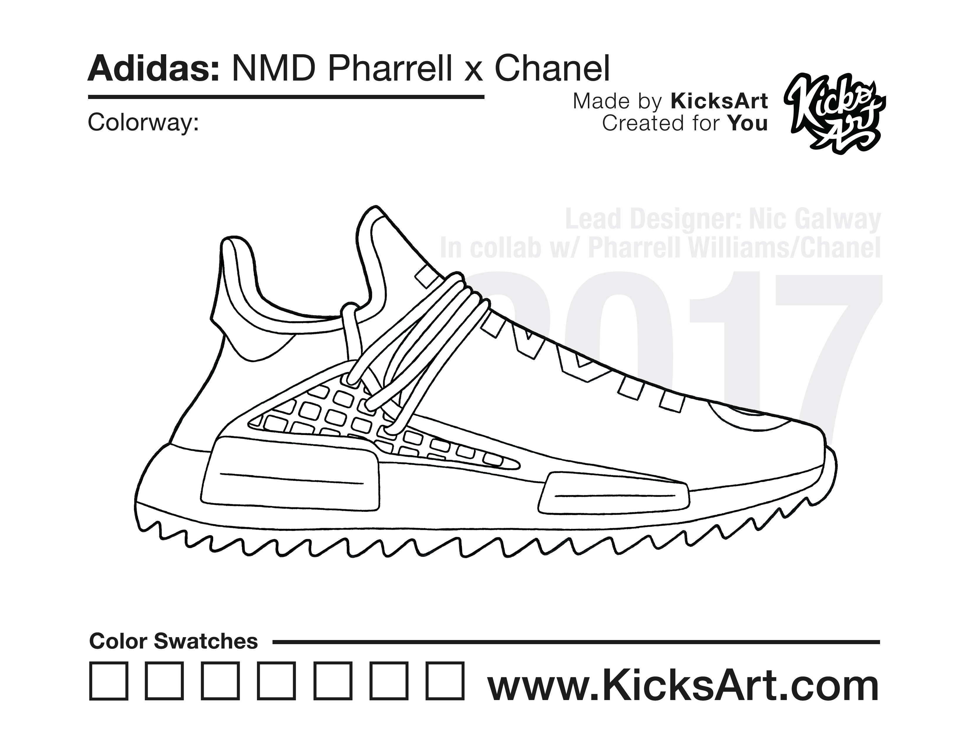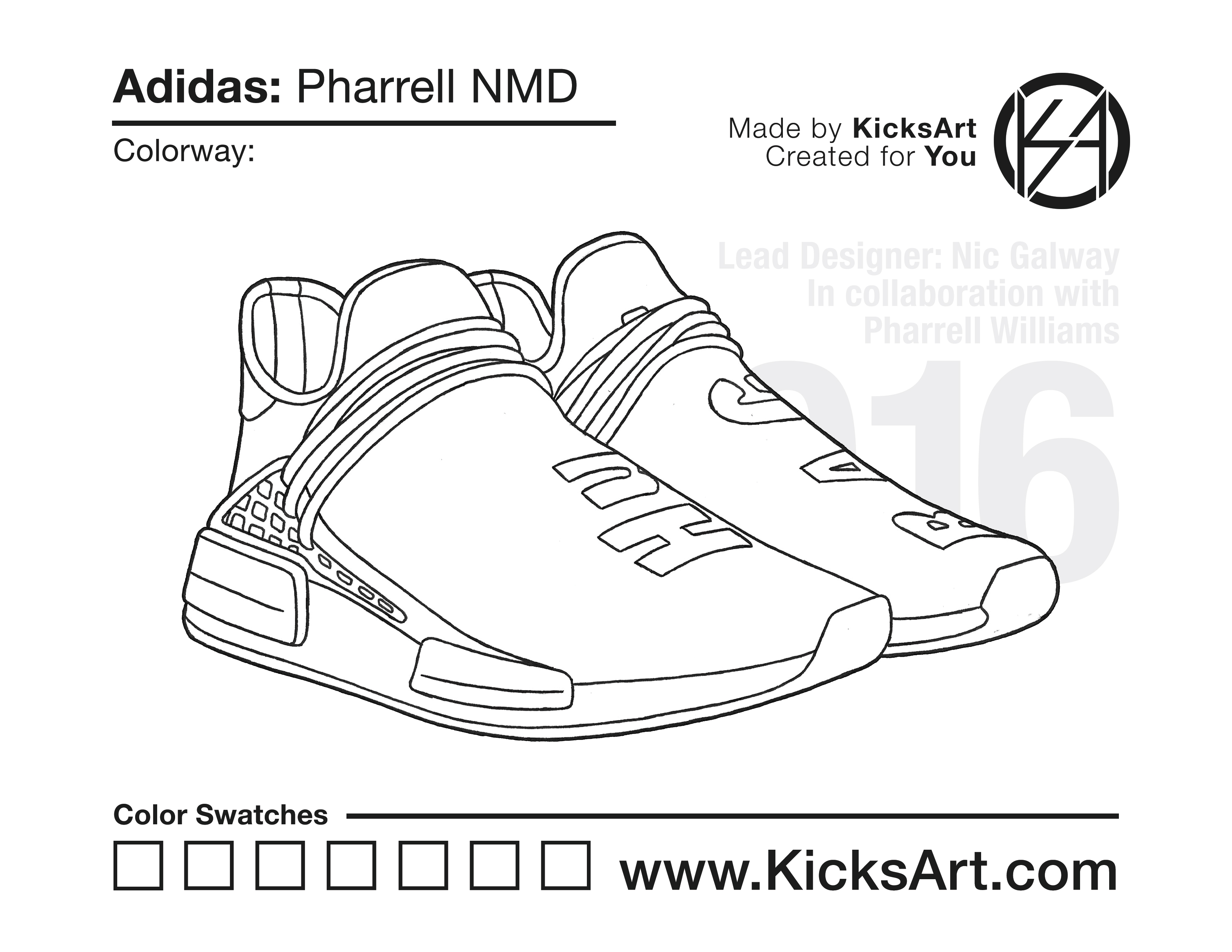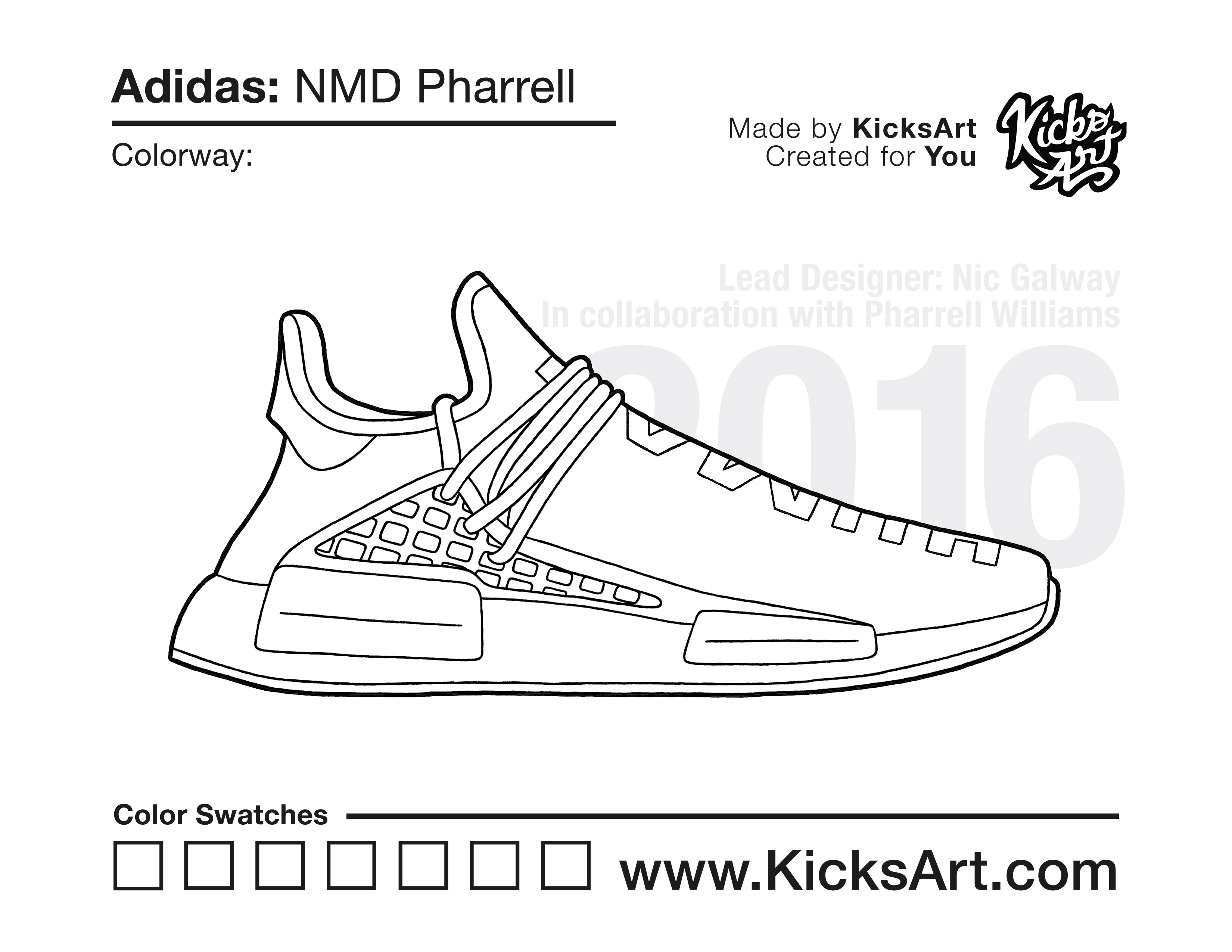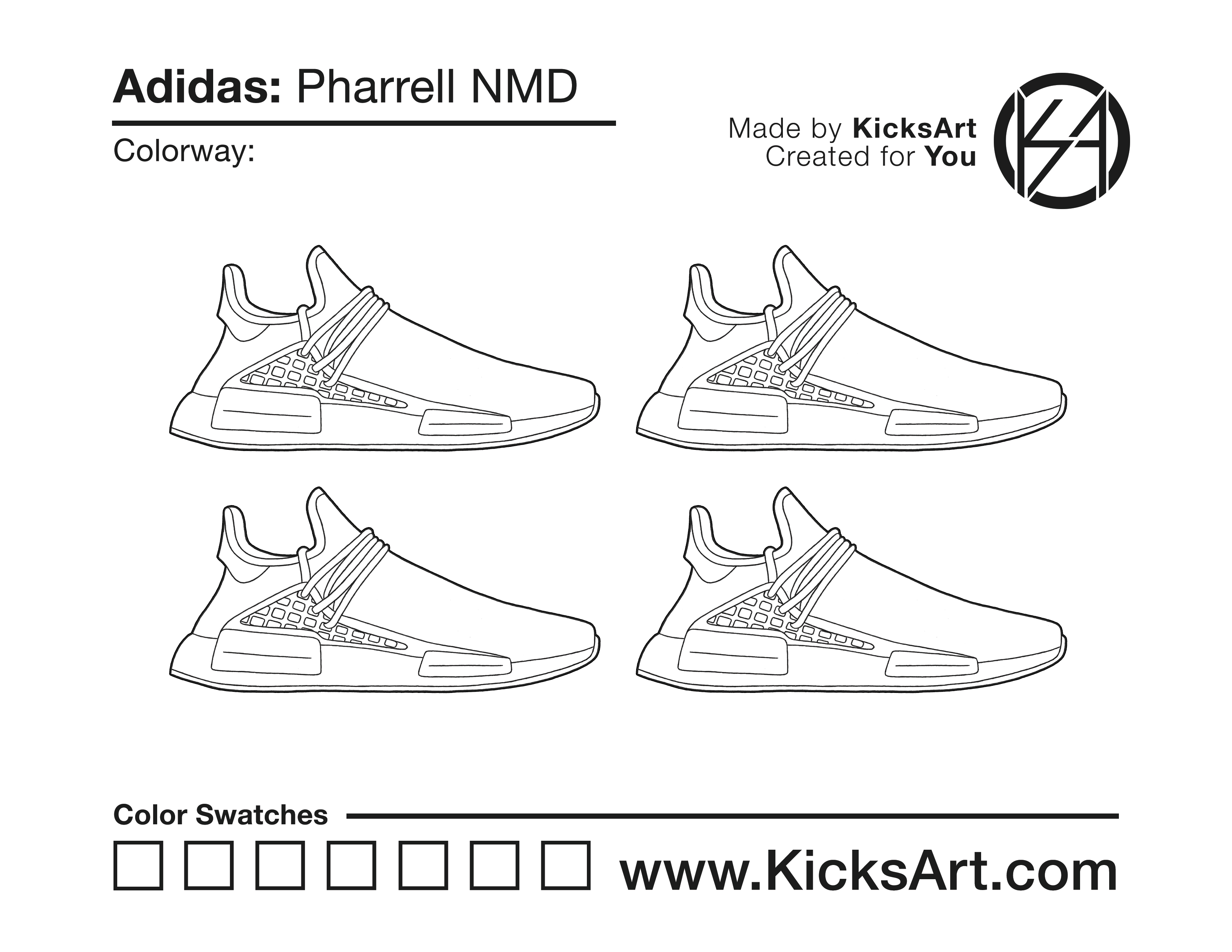 Adidas NMD Pharrell Sneaker Coloring Pages March 15, 2019 kicksart05 For any sneaker coloring page, click on the button above the image to start the instant download! FREE Download: Adidas NMD Pharrell Art materials can be expensive!Try out colorways on these smaller templates so your supplies can last longer! Adidas NMD Pharrell (4UP) Adidas NMD Pharrell (Drawing Guide) Drawing Guide (Page 2) Additional Variants Adidas NMD Pharrell Chanel Adidas NMD Pharrell (Side View)