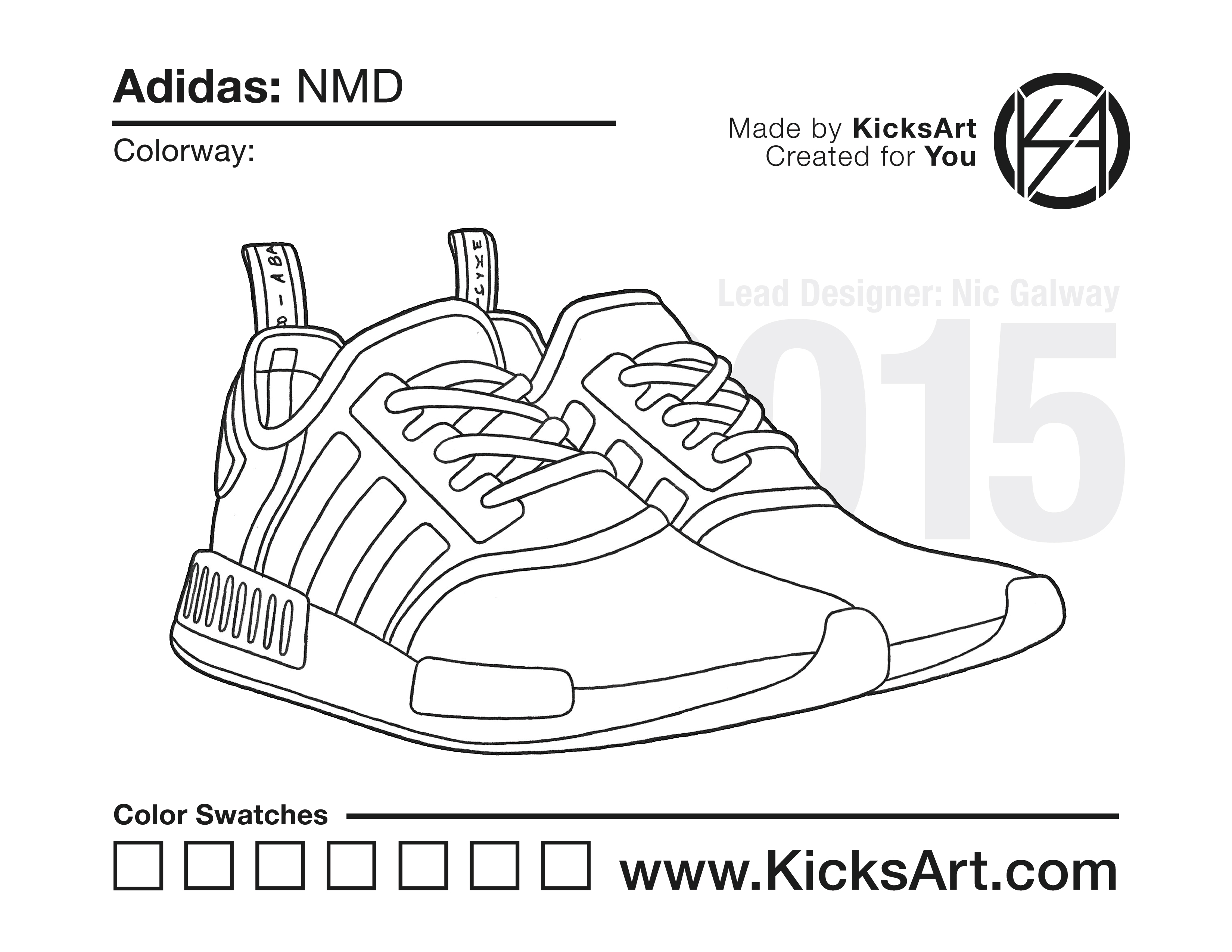 Adidas NMD Sneaker Coloring Pages March 15, 2019 kicksart05 For any sneaker coloring page, click on the button above the image to start the instant download! FREE Download: Adidas NMD Art materials can be expensive!Try out colorways on these smaller templates so your supplies can last longer! Adidas NMD (4UP) Additional Variants Adidas NMD (Side View) Adidas NMD (Facing Left)