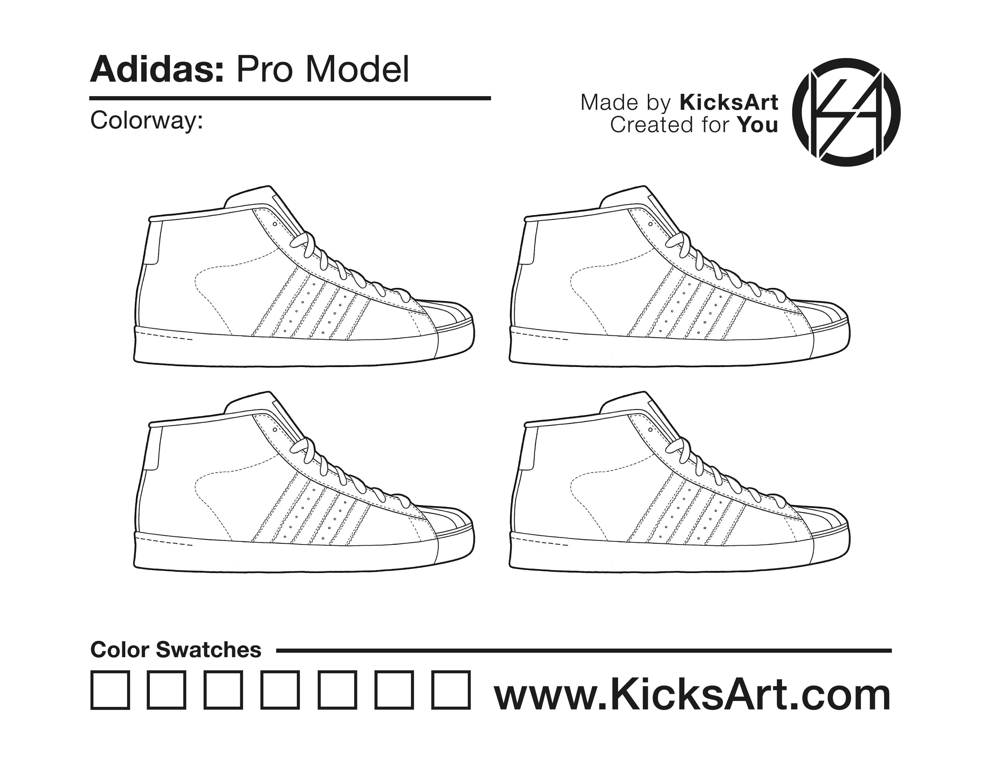 Adidas Pro Model Sneaker Coloring Pages March 15, 2019 kicksart05 For any sneaker coloring page, click on the button above the image to start the instant download! FREE Download: Adidas Pro Model Art materials can be expensive!Try out colorways on these smaller templates so your supplies can last longer! Adidas Pro Model (4UP)
