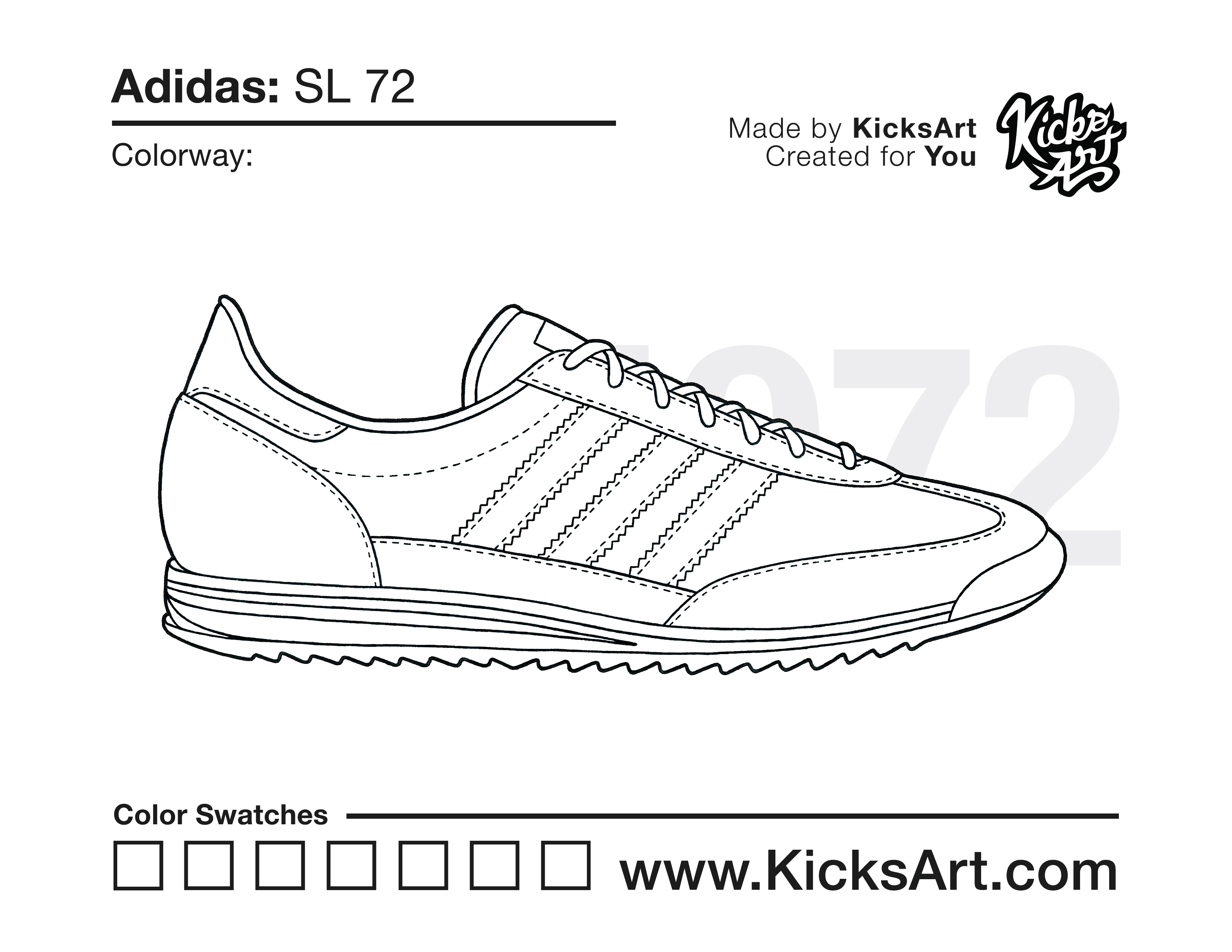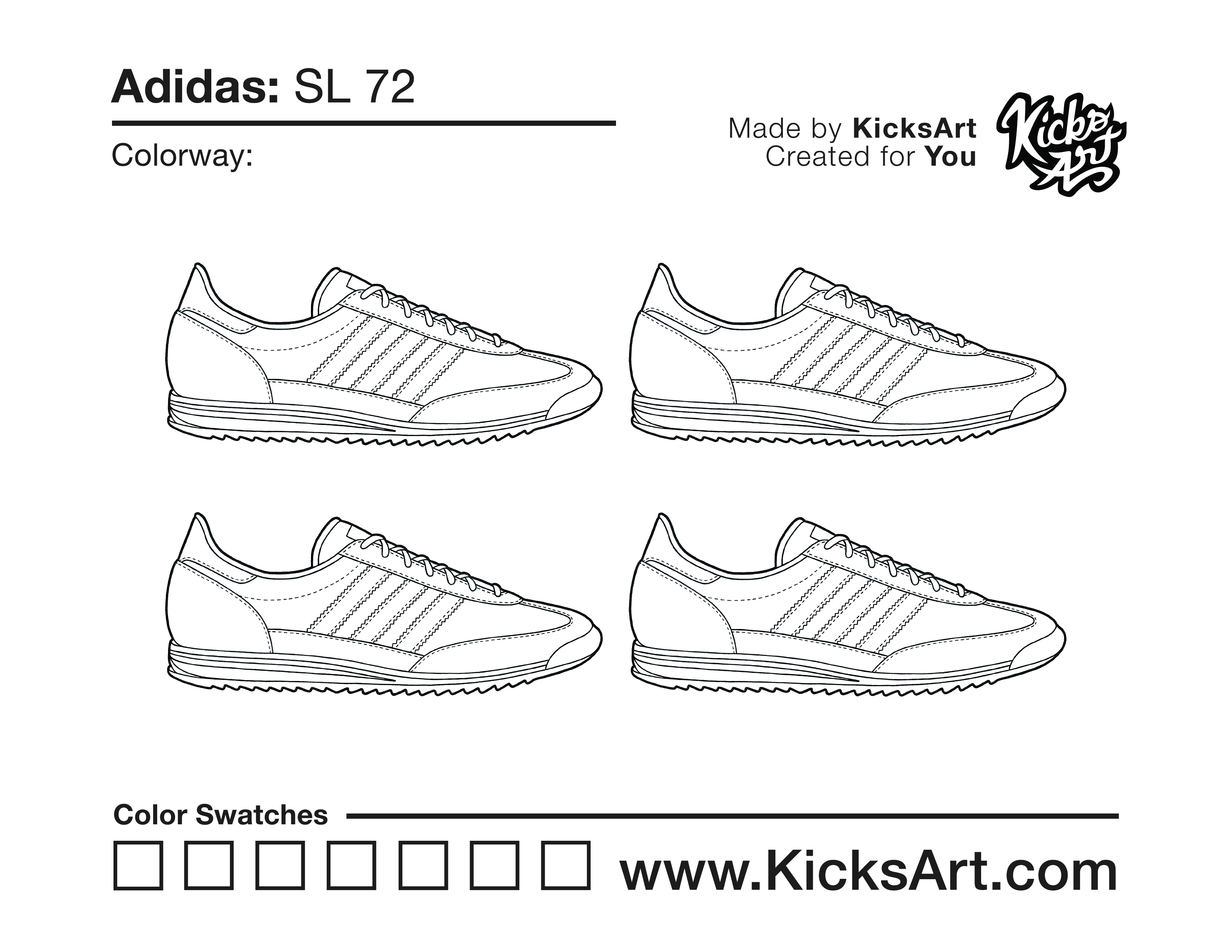 Adidas SL 72 Sneaker Coloring Pages October 16, 2020 kicksart05 For any sneaker coloring page, click on the button above the image to start the instant download! FREE Download: Adidas SL 72 Art materials can be expensive!Try out colorways on these smaller templates so your supplies can last longer! Adidas SL 72 (4UP)