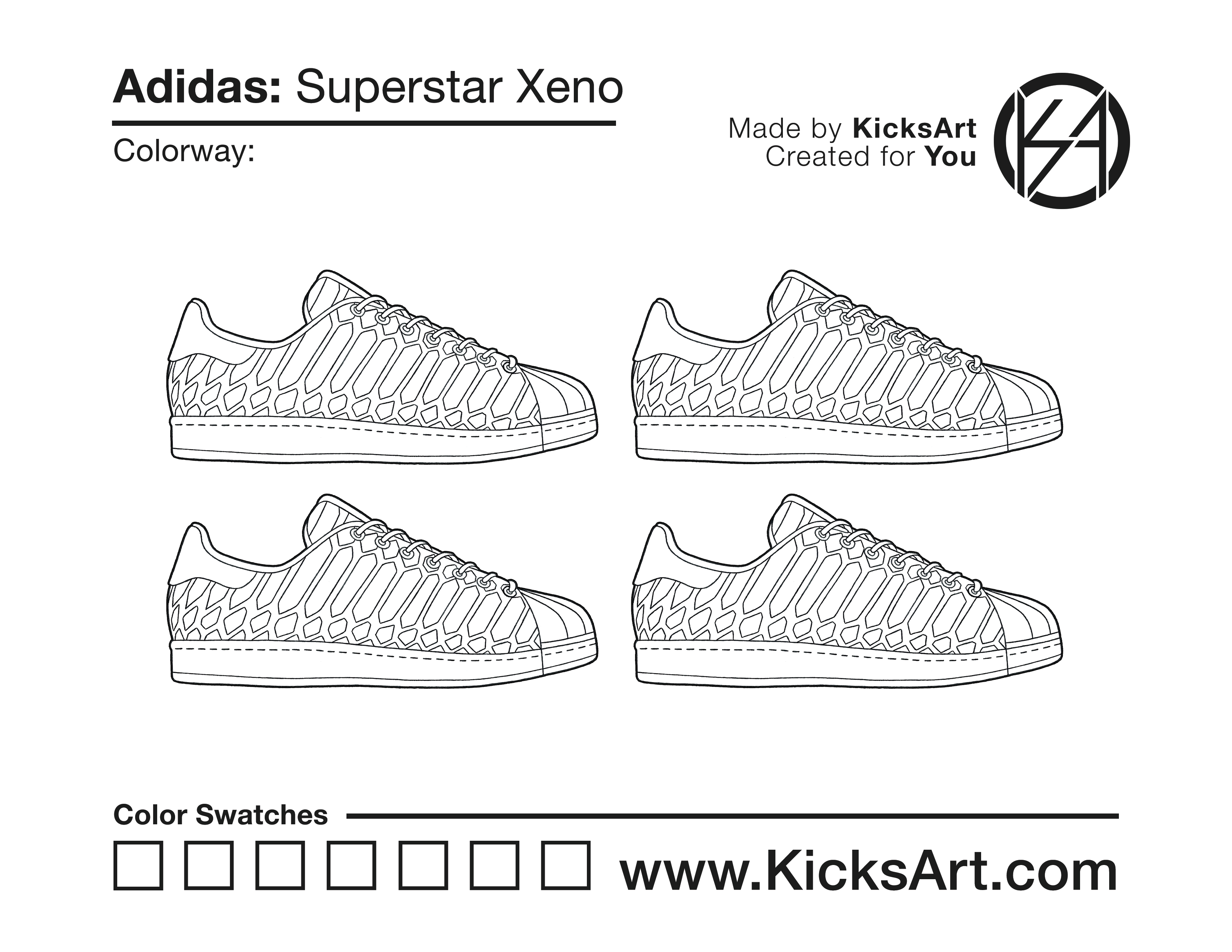 Adidas Superstar Xeno Sneaker Coloring Pages March 15, 2019 kicksart05 For any sneaker coloring page, click on the button above the image to start the instant download! FREE Download: Adidas Superstar Xeno Art materials can be expensive!Try out colorways on these smaller templates so your supplies can last longer! Adidas Superstar Xeno (4UP)