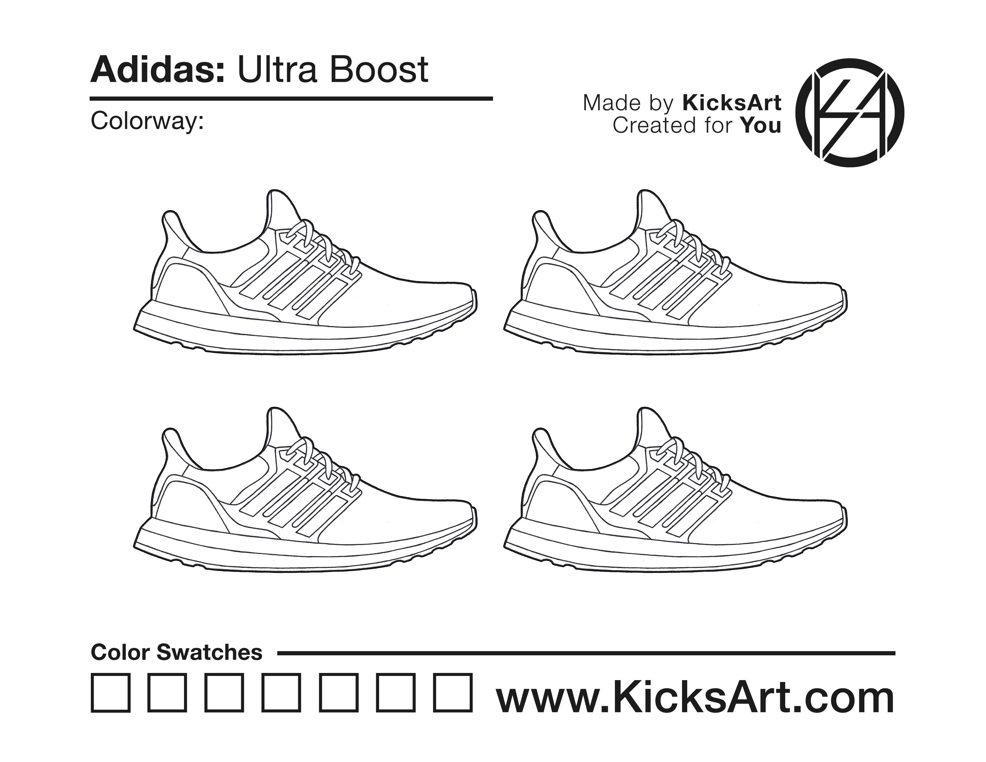 Adidas Ultra Boost Sneaker Coloring Pages February 27, 2019 kicksart05 For any sneaker coloring page, click on the button above the image to start the instant download! FREE Download: Adidas Ultra Boost Art materials can be expensive!Try out colorways on these smaller templates so your supplies can last longer! Adidas Ultra Boost (4UP)