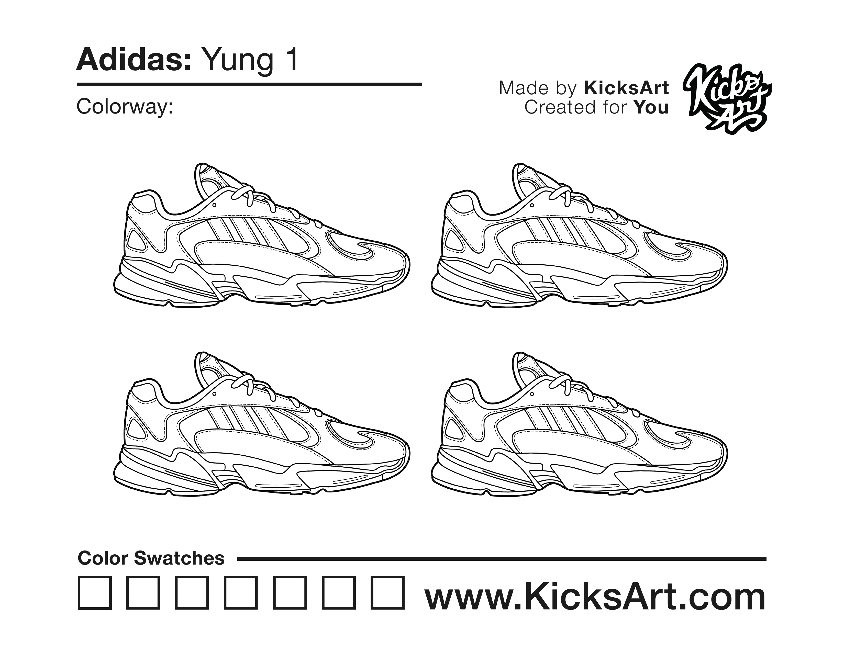 Adidas Yung 1 Sneaker Coloring Pages November 22, 2021 kicksart05 For any sneaker coloring page, click on the button above the image to start the instant download! FREE Download: Adidas Yung 1 Art materials can be expensive!Try out colorways on these smaller templates so your supplies can last longer! Adidas Yung 1 (4UP)