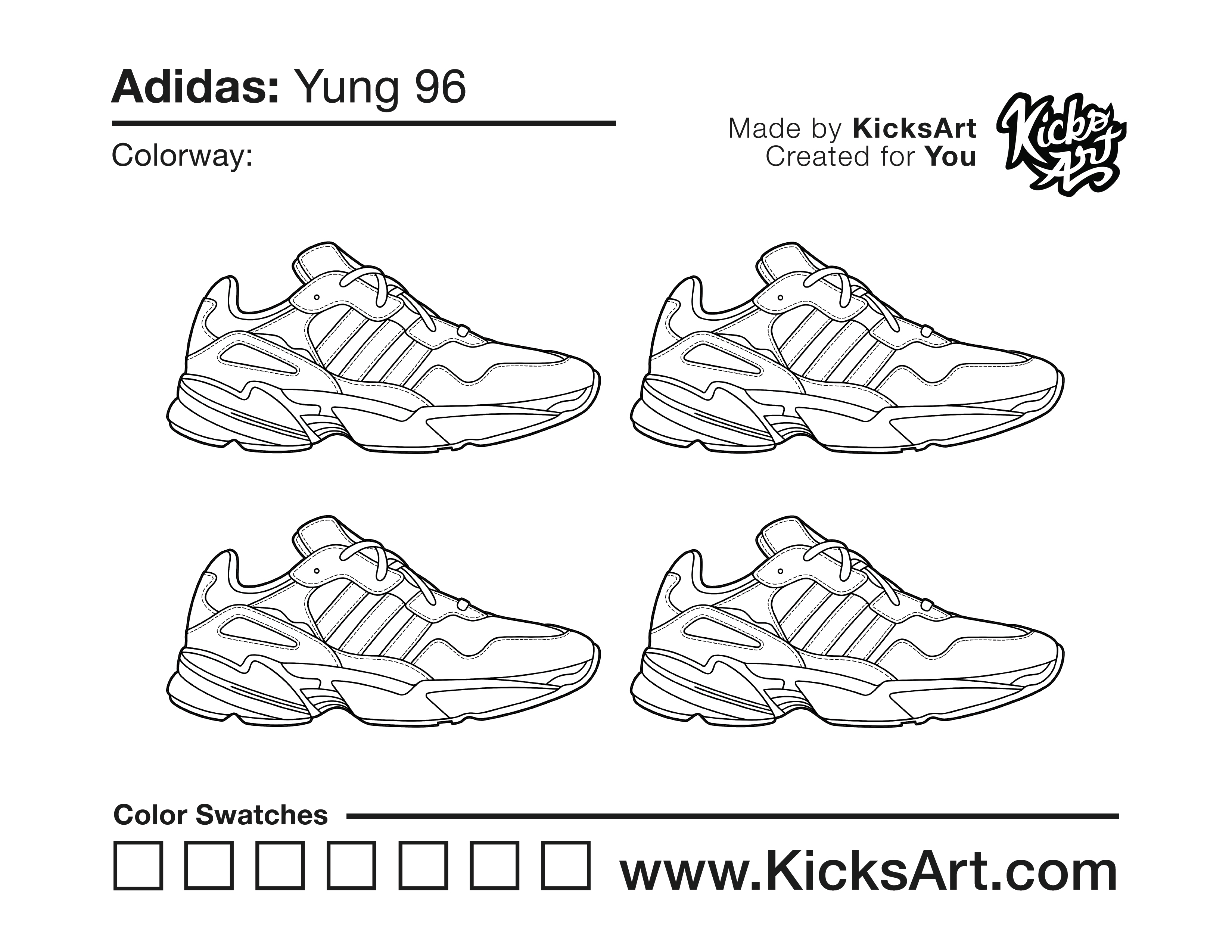 Adidas Yung 96 Sneaker Coloring Pages October 24, 2021 kicksart05 For any sneaker coloring page, click on the button above the image to start the instant download! FREE Download: Adidas Yung 96 Art materials can be expensive!Try out colorways on these smaller templates so your supplies can last longer! Adidas Yung 96 (4UP)