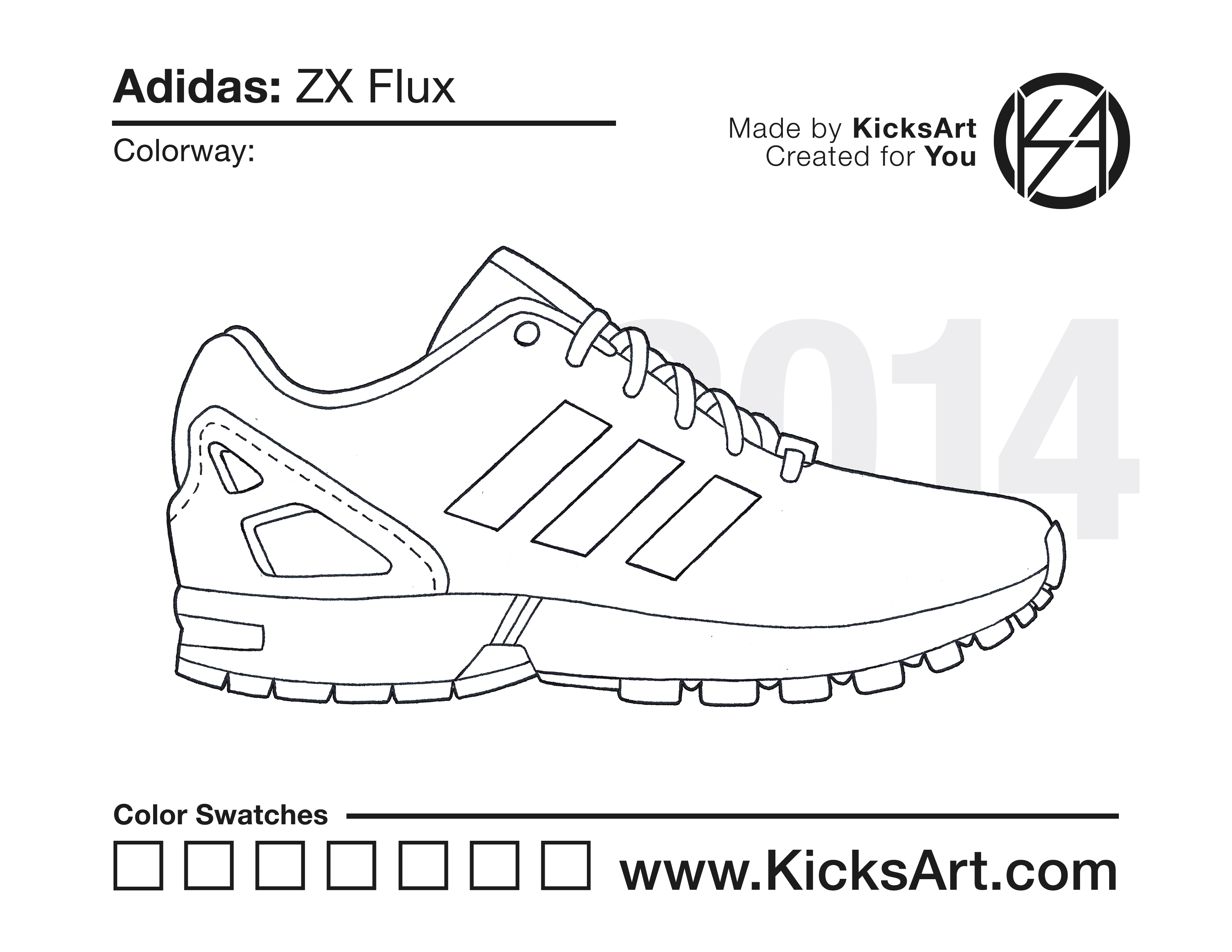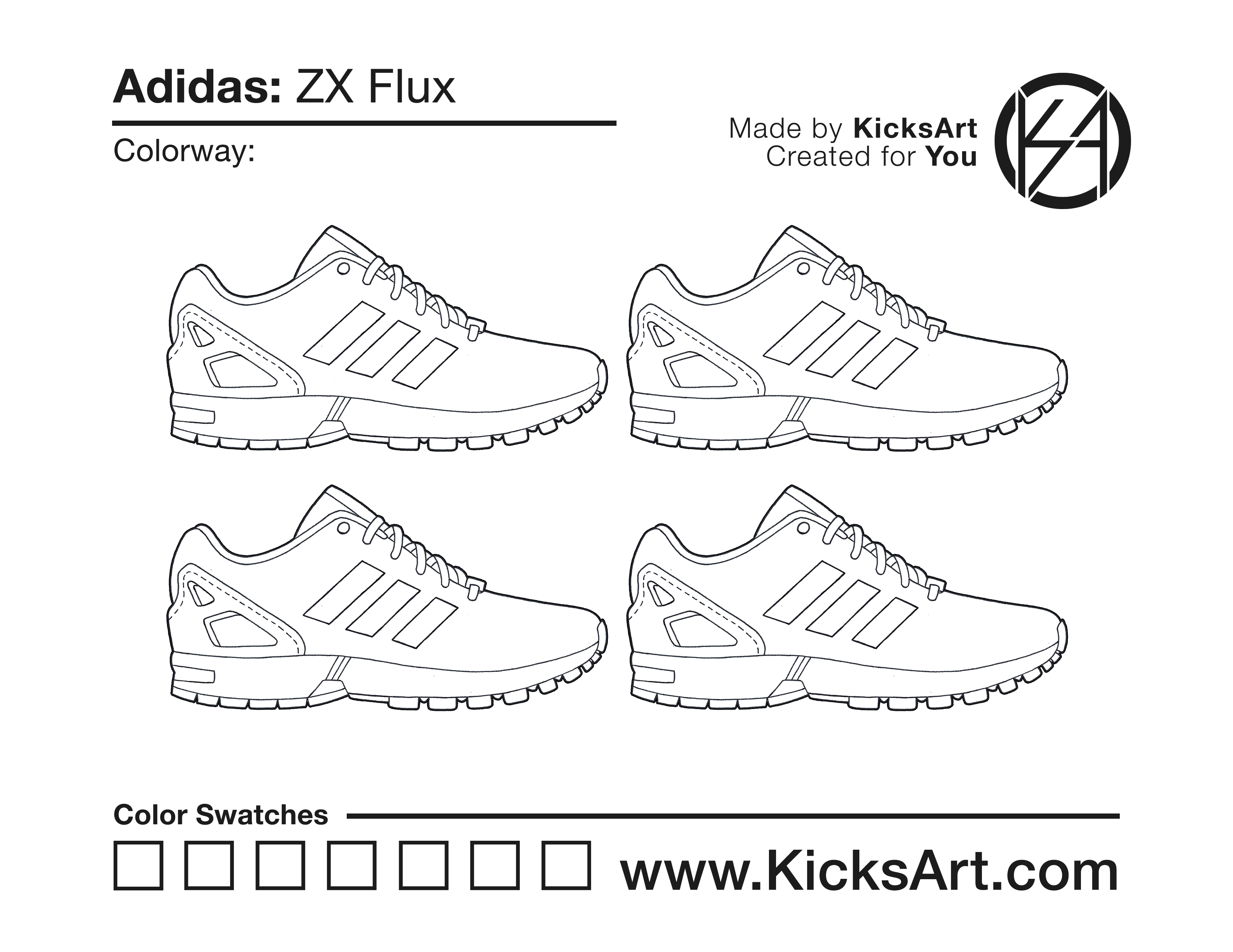 Adidas ZX Flux Sneaker Coloring Pages March 15, 2019 kicksart05 For any sneaker coloring page, click on the button above the image to start the instant download! FREE Download: Adidas ZX Flux Art materials can be expensive!Try out colorways on these smaller templates so your supplies can last longer! Adidas ZX Flux (4UP)