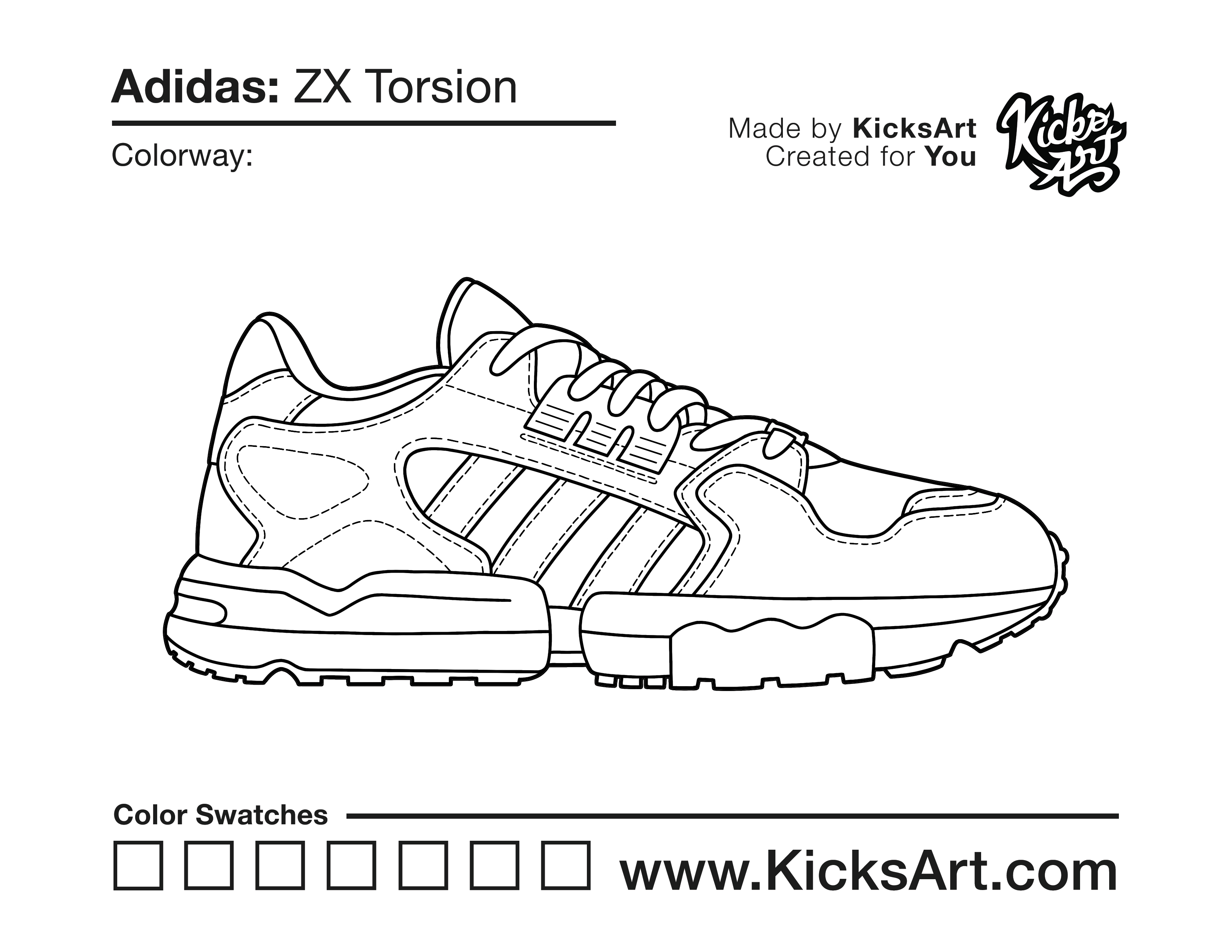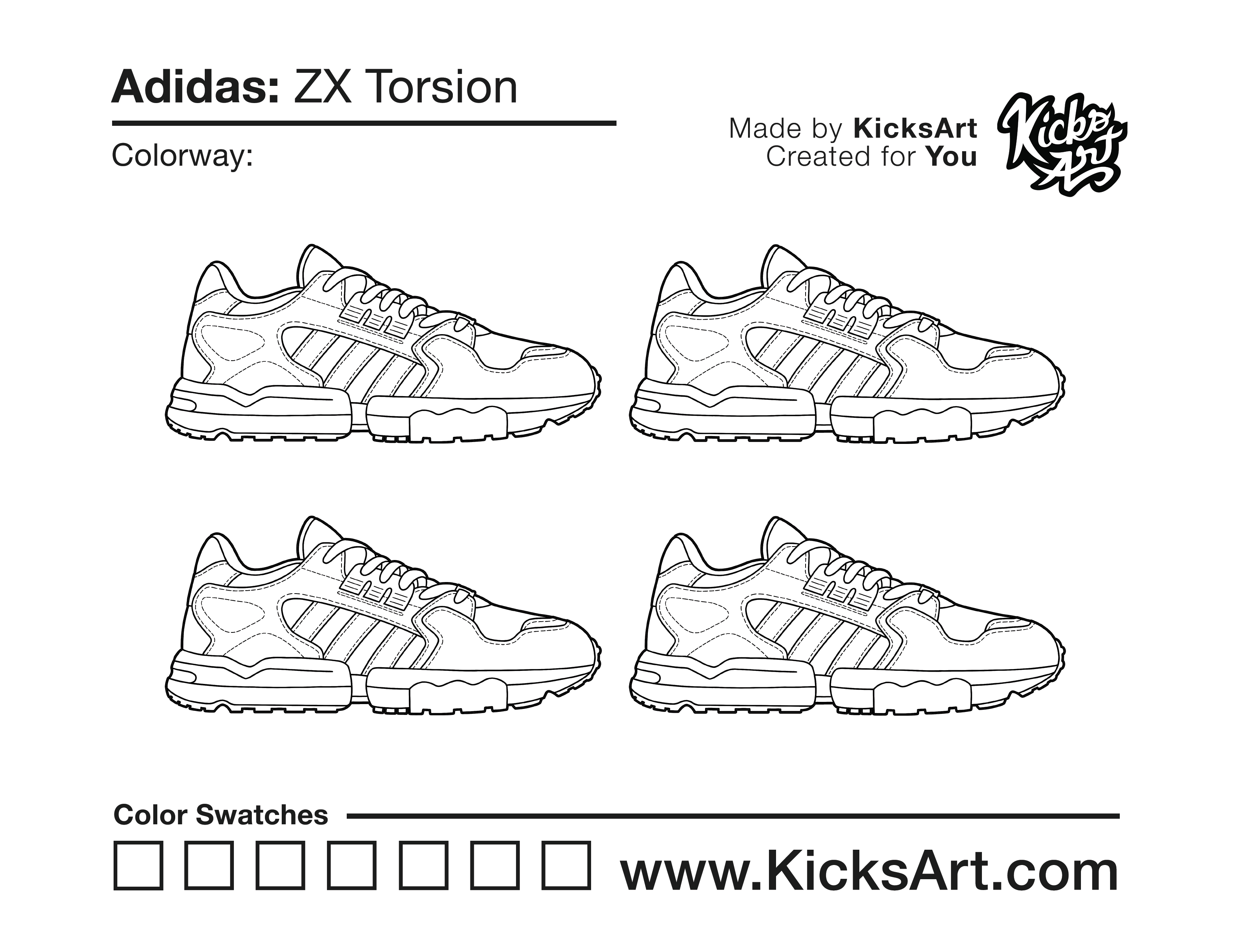 Adidas ZX Torsion Coloring Pages October 23, 2021 kicksart05 For any sneaker coloring page, click on the button above the image to start the instant download! FREE Download: Adidas ZX Torsion Art materials can be expensive!Try out colorways on these smaller templates so your supplies can last longer! Adidas ZX Torsion (4UP)