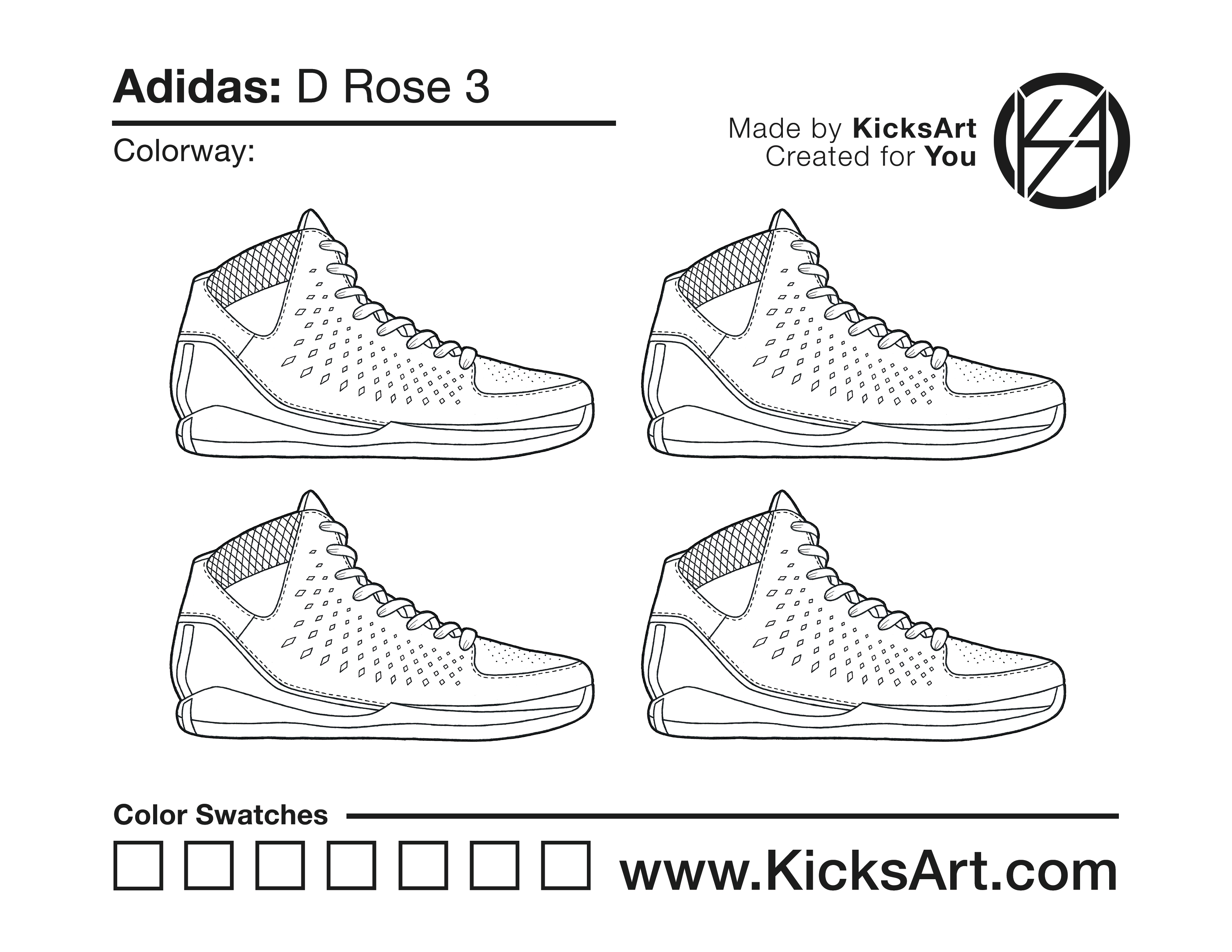 Adidas D Rose 3 Sneaker Coloring Pages March 15, 2019 kicksart05 For any sneaker coloring page, click on the button above the image to start the instant download! FREE Download: Adidas D Rose 3 Art materials can be expensive!Try out colorways on these smaller templates so your supplies can last longer! Adidas D Rose 3 (4UP) Additional Variants Adidas D Rose 3.5