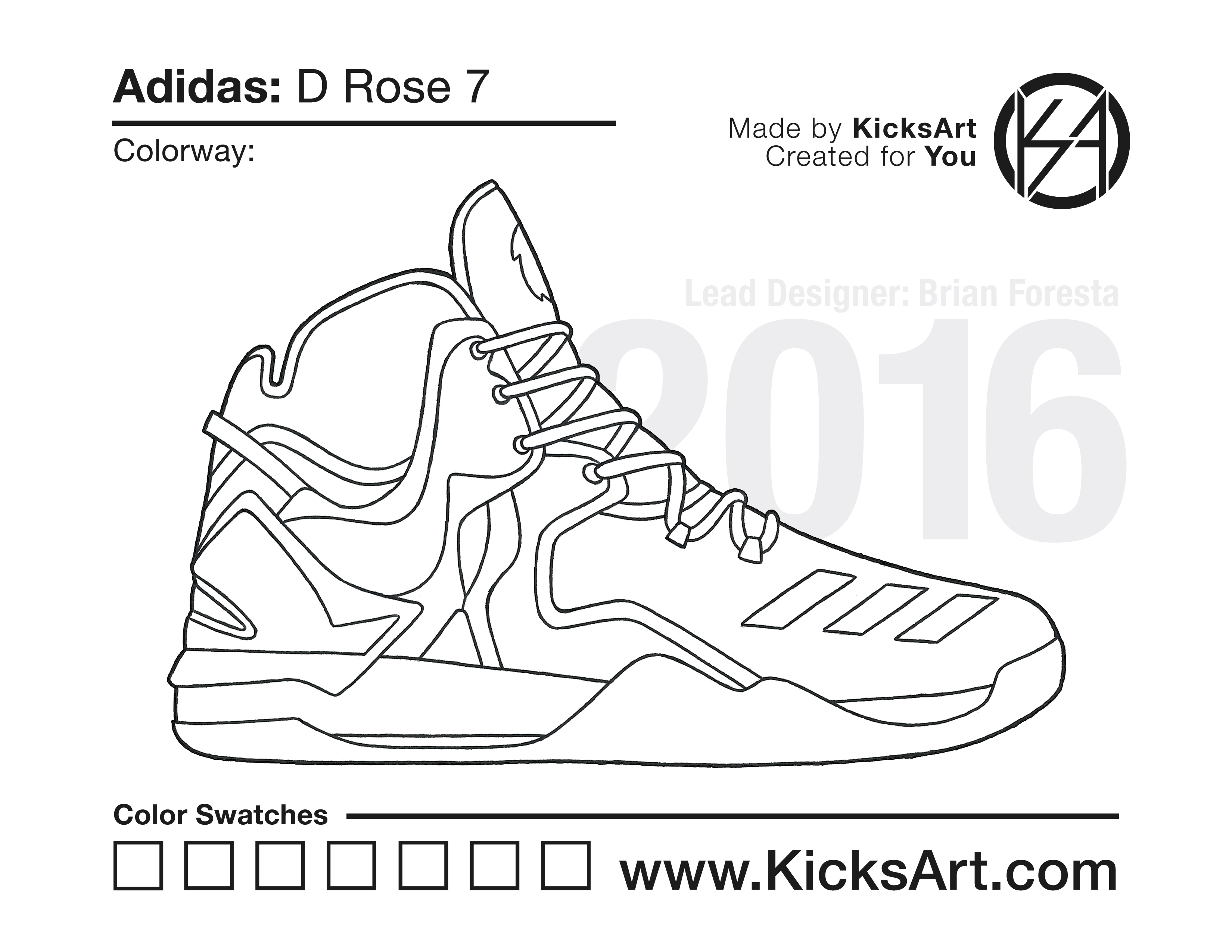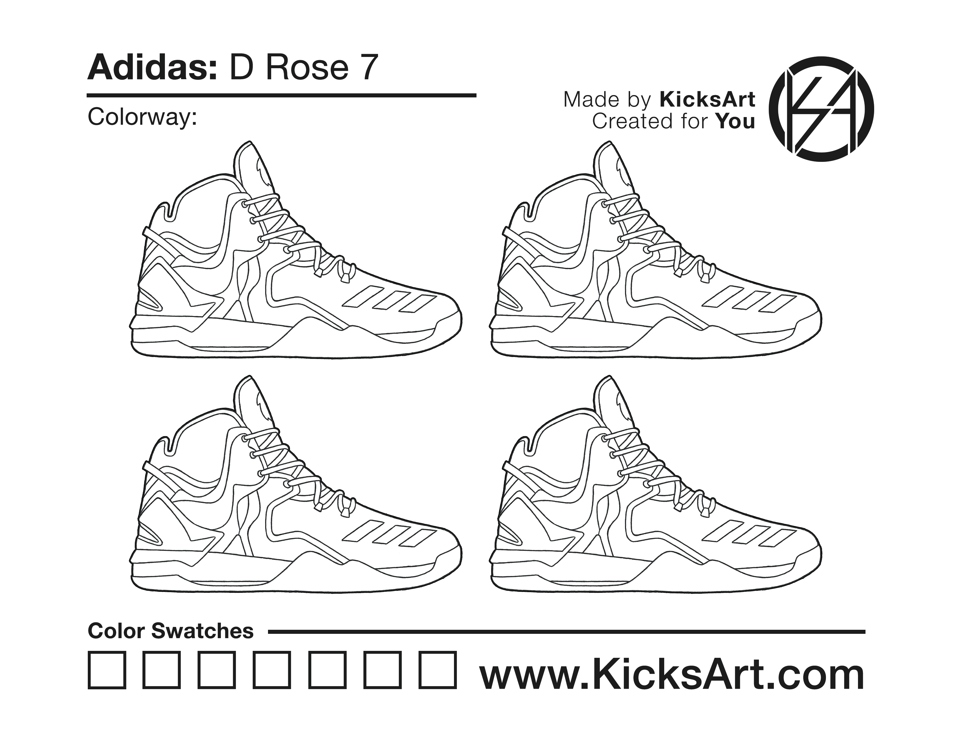Adidas D Rose 7 Sneaker Coloring Pages March 15, 2019 kicksart05 For any sneaker coloring page, click on the button above the image to start the instant download! FREE Download: Adidas D Rose 7 Art materials can be expensive!Try out colorways on these smaller templates so your supplies can last longer! Adidas D Rose 7 (4UP)