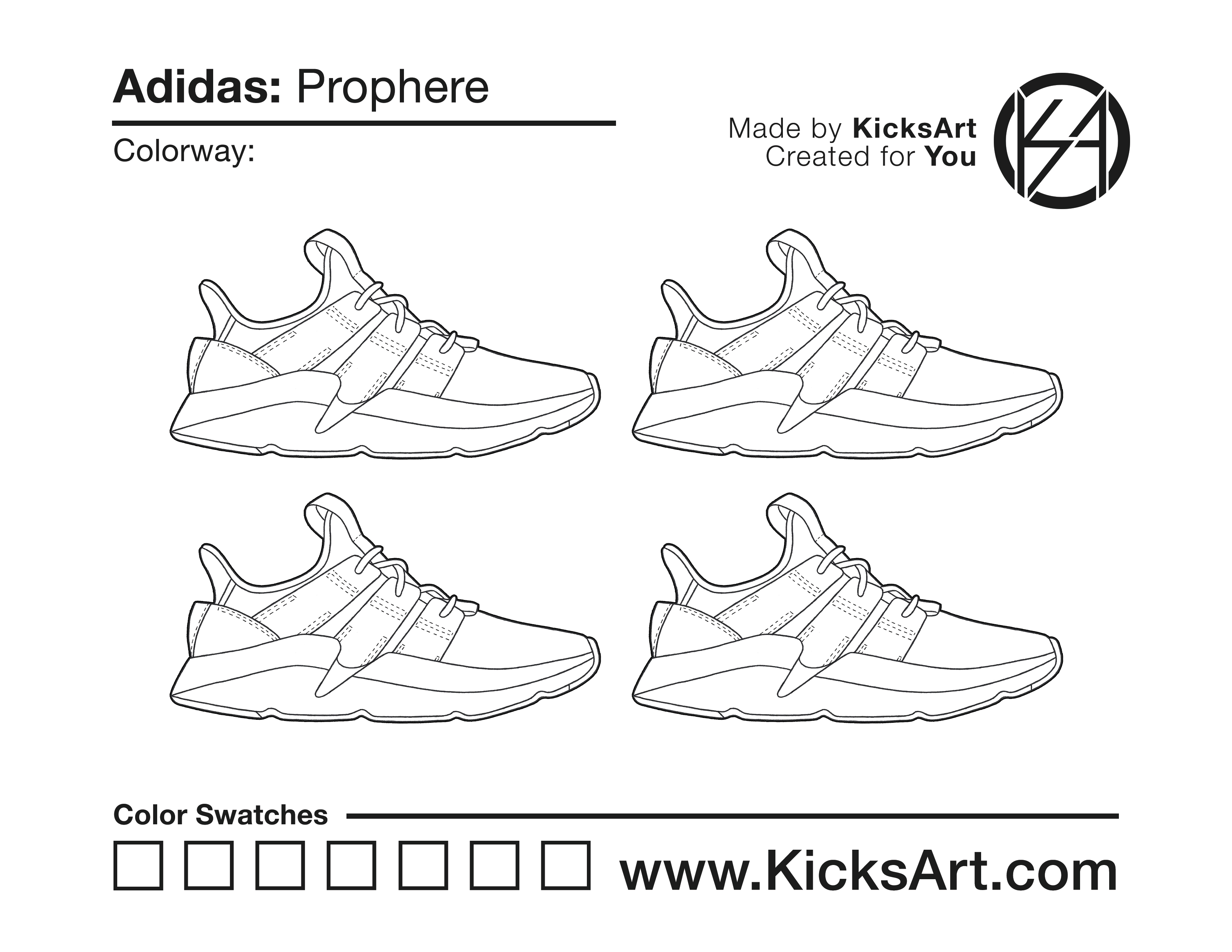 Adidas Prophere Sneaker Coloring Pages March 15, 2019 kicksart05 For any sneaker coloring page, click on the button above the image to start the instant download! FREE Download: Adidas Prophere Art materials can be expensive!Try out colorways on these smaller templates so your supplies can last longer! Adidas Prophere (4UP)