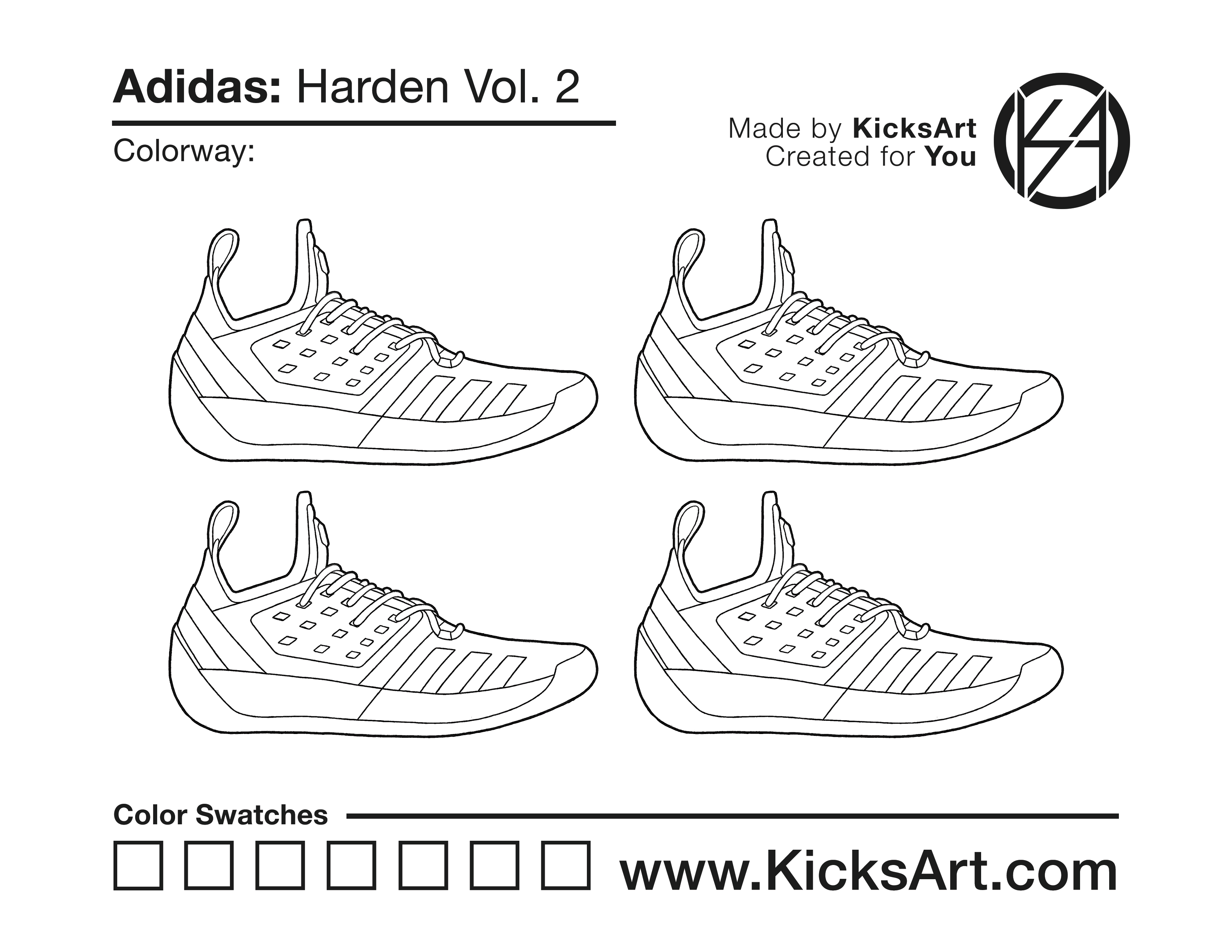 Adidas Harden Vol. 2 Sneaker Coloring Pages February 26, 2019 kicksart05 For any sneaker coloring page, click on the button above the image to start the instant download! FREE Download: Adidas Harden Vol. 2 Art materials can be expensive!Try out colorways on these smaller templates so your supplies can last longer! Adidas Harden Vol. 2 (4UP)