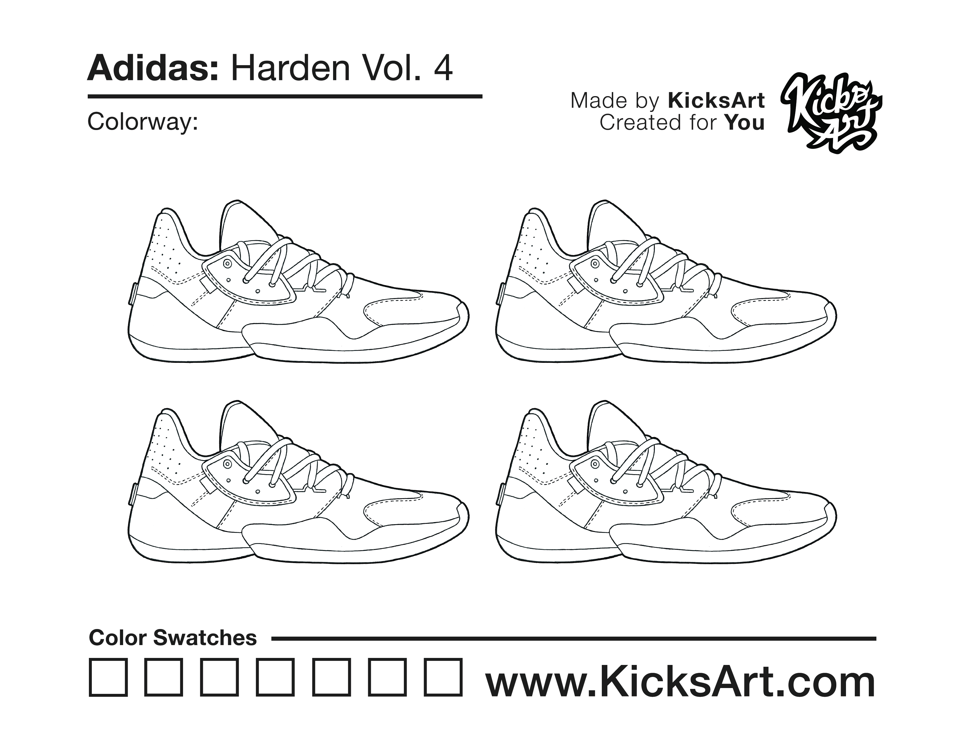 Adidas Harden Vol. 4 Sneaker Coloring Pages April 1, 2020 kicksart05 For any sneaker coloring page, click on the button above the image to start the instant download! FREE Download: Adidas Harden Vol. 4 Art materials can be expensive!Try out colorways on these smaller templates so your supplies can last longer! Adidas Harden Vol. 4 (4UP)