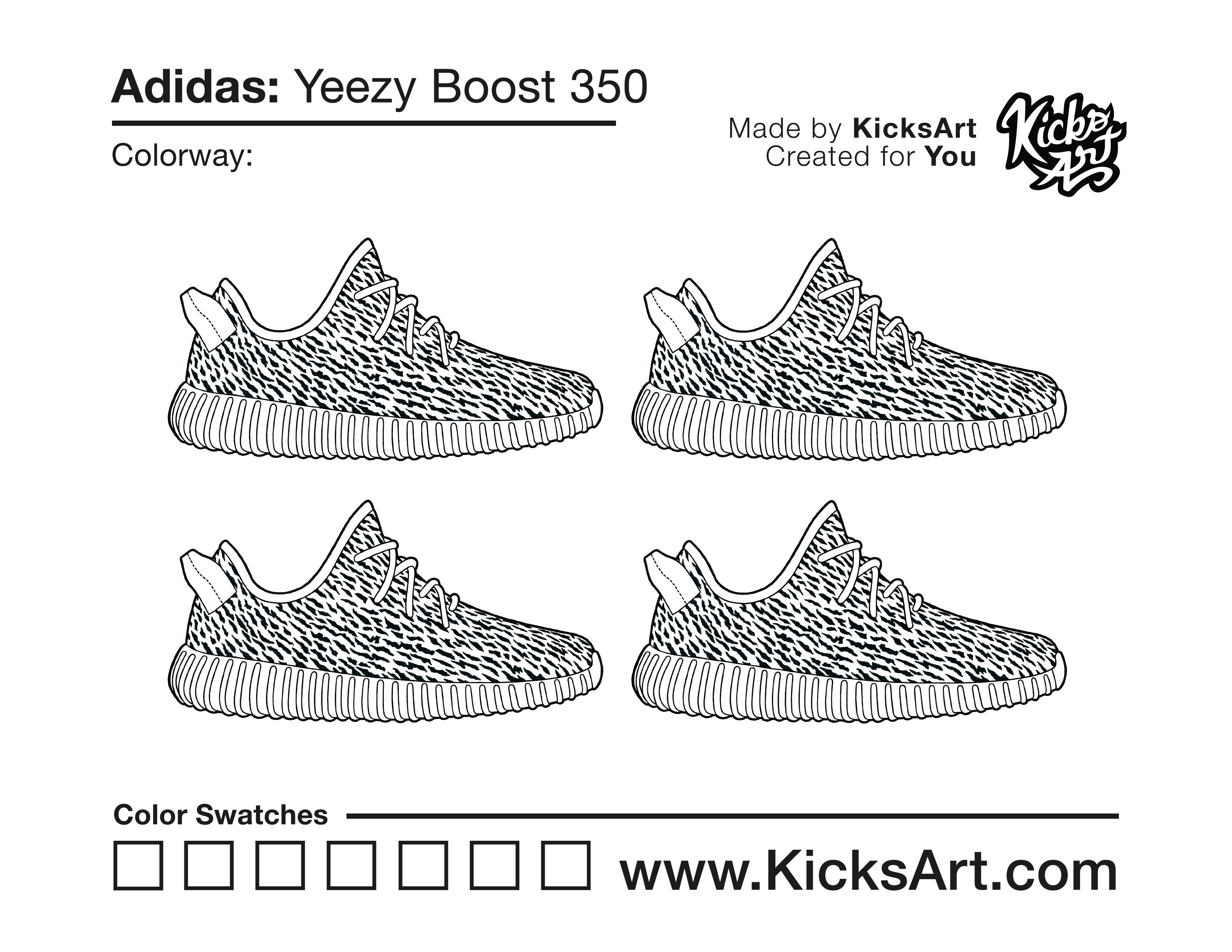 Adidas Yeezy Boost 350 Sneaker Coloring Pages March 15, 2019 kicksart05 For any sneaker coloring page, click on the button above the image to start the instant download! FREE Download: Adidas Yeezy Boost 350 Art materials can be expensive!Try out colorways on these smaller templates so your supplies can last longer! Adidas Yeezy Boost 350 (4UP) Adidas Yeezy Boost 350 (Drawing Guide) Drawing Guide (Page 2) Additional Variants Adidas Yeezy Boost 350 (Plain Upper)