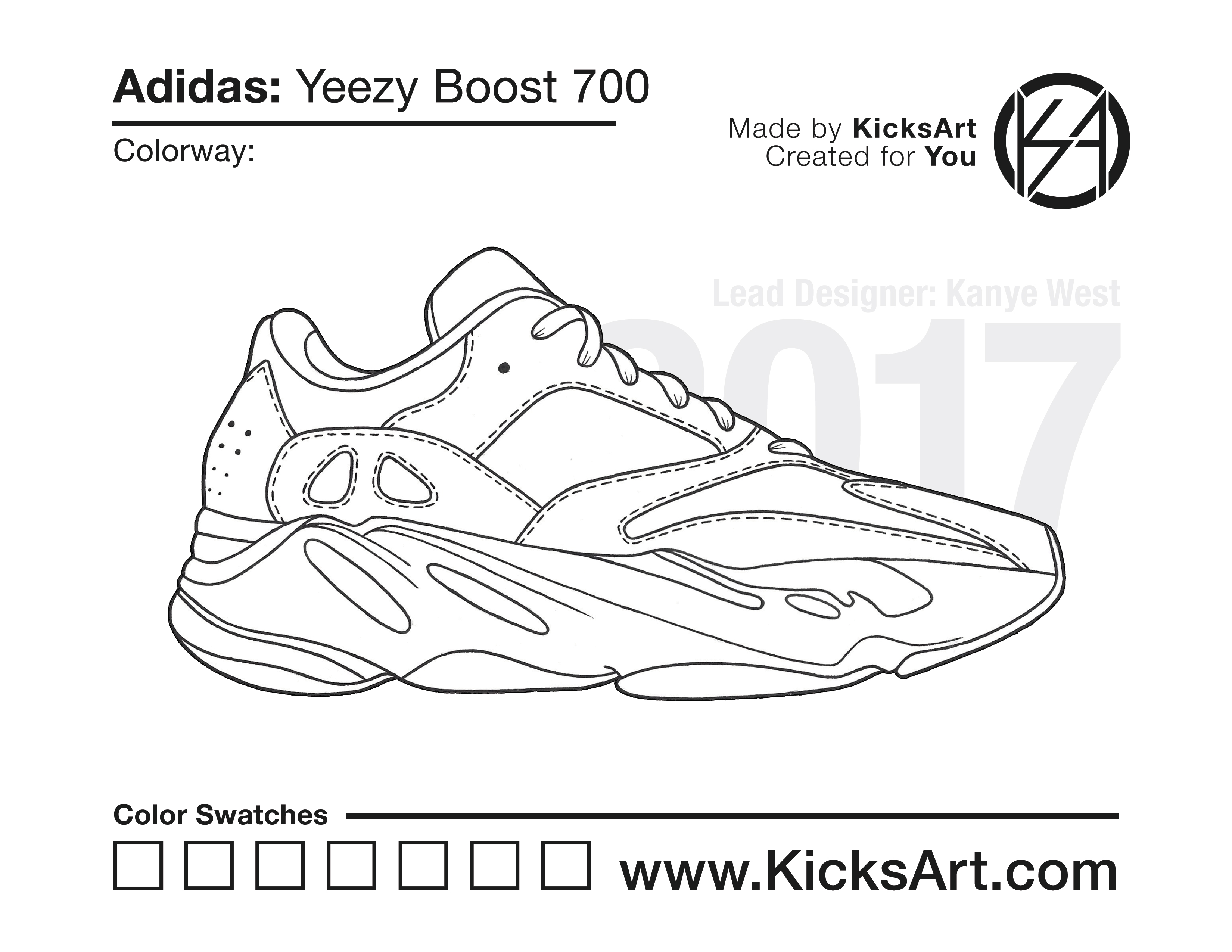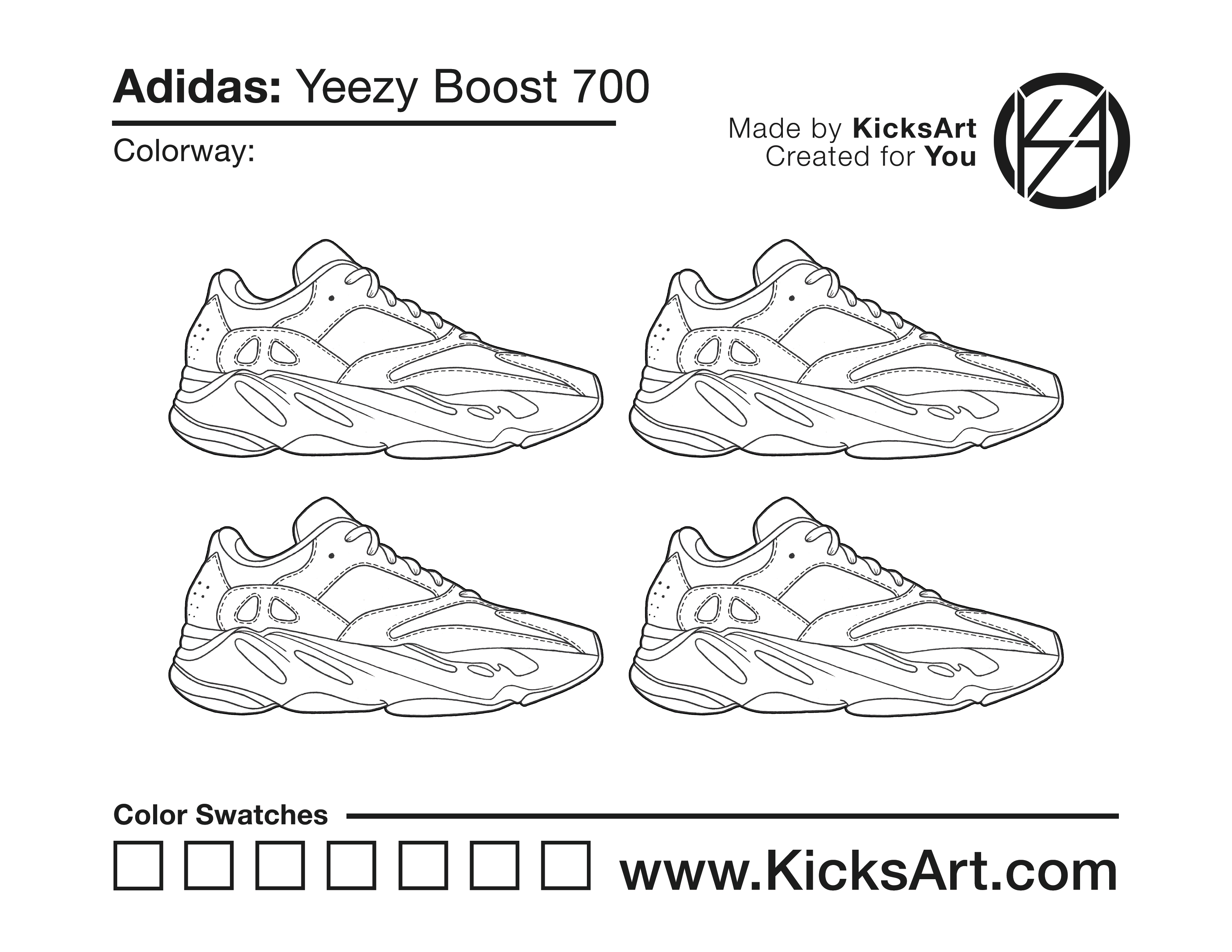 Adidas Yeezy Boost 700 Sneaker Coloring Pages March 15, 2019 kicksart05 For any sneaker coloring page, click on the button above the image to start the instant download! FREE Download: Adidas Yeezy Boost 700 Art materials can be expensive!Try out colorways on these smaller templates so your supplies can last longer! Adidas Yeezy Boost 700 (4UP) Adidas Yeezy Boost 700 (Drawing Guide) Drawing Guide (Page 2)