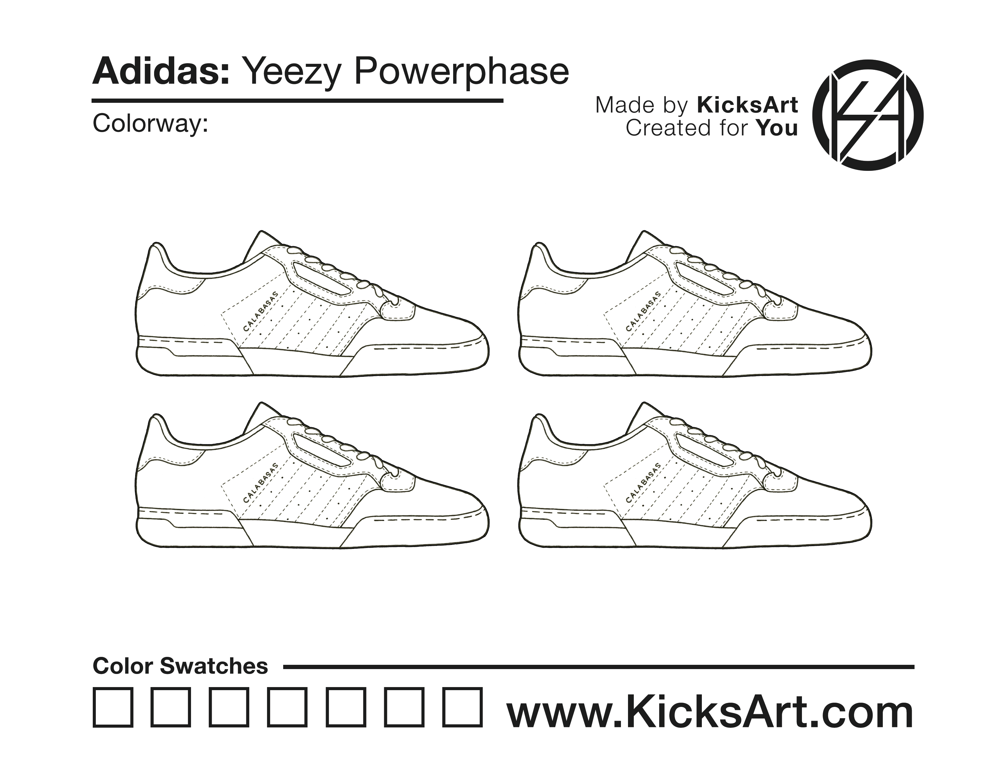 Adidas Yeezy Powerphase Sneaker Coloring Pages March 15, 2019 kicksart05 For any sneaker coloring page, click on the button above the image to start the instant download! FREE Download: Adidas Yeezy Powerphase Art materials can be expensive!Try out colorways on these smaller templates so your supplies can last longer! Adidas Yeezy Powerphase (4UP)