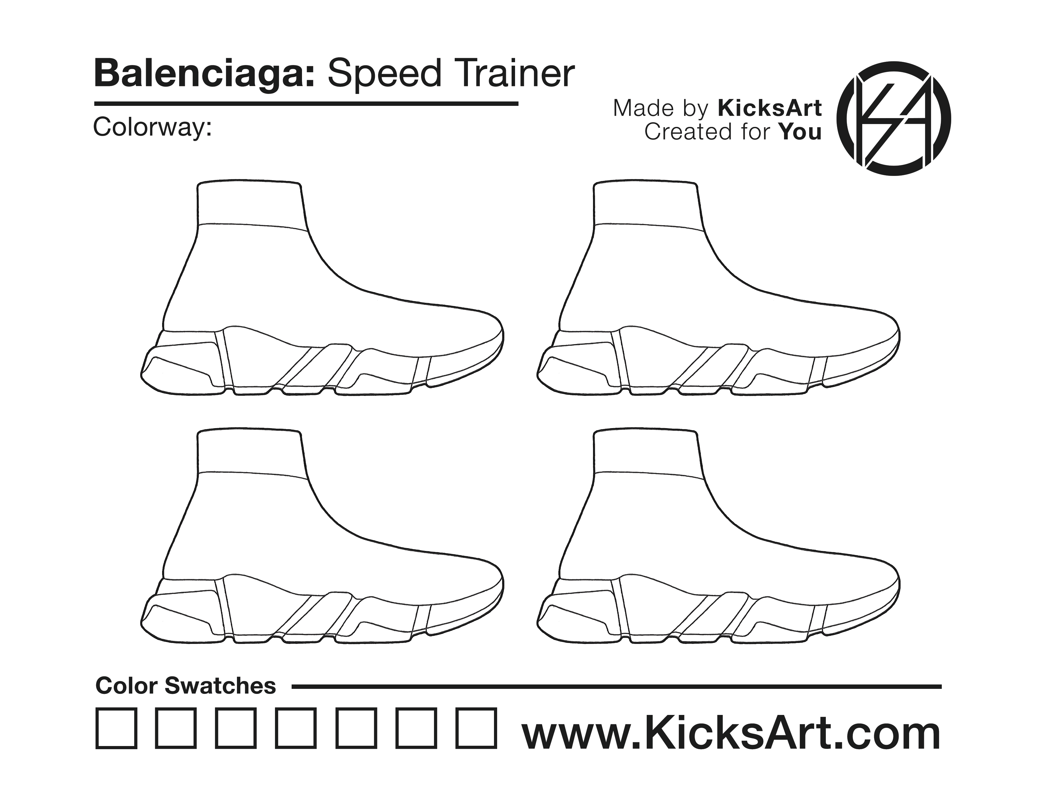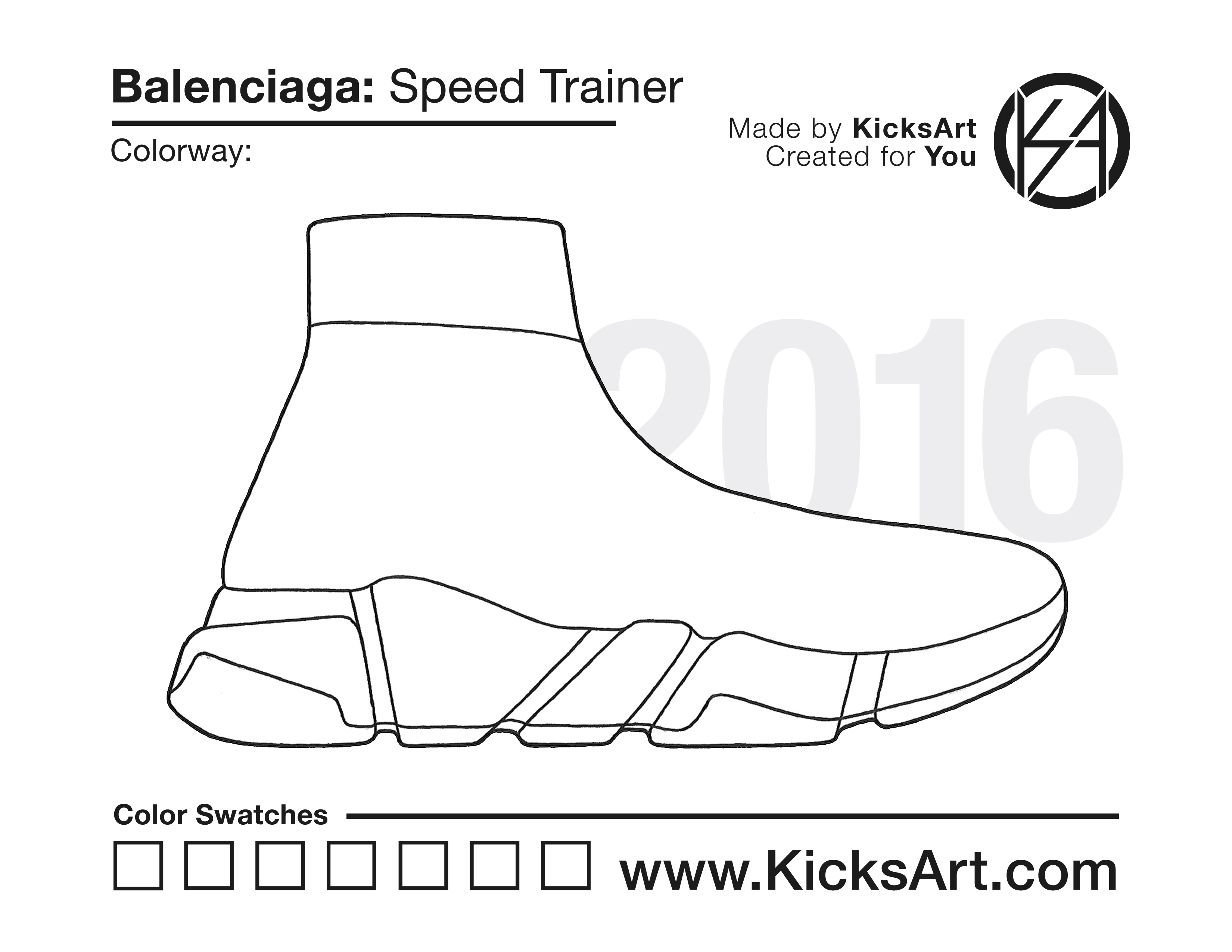 Balenciaga Speed Trainer Sneaker Coloring Pages March 17, 2019 kicksart05 For any sneaker coloring page, click on the button above the image to start the instant download! FREE Download: Balenciaga Speed Trainer Art materials can be expensive!Try out colorways on these smaller templates so your supplies can last longer! Balenciaga Speed Trainer (4UP)