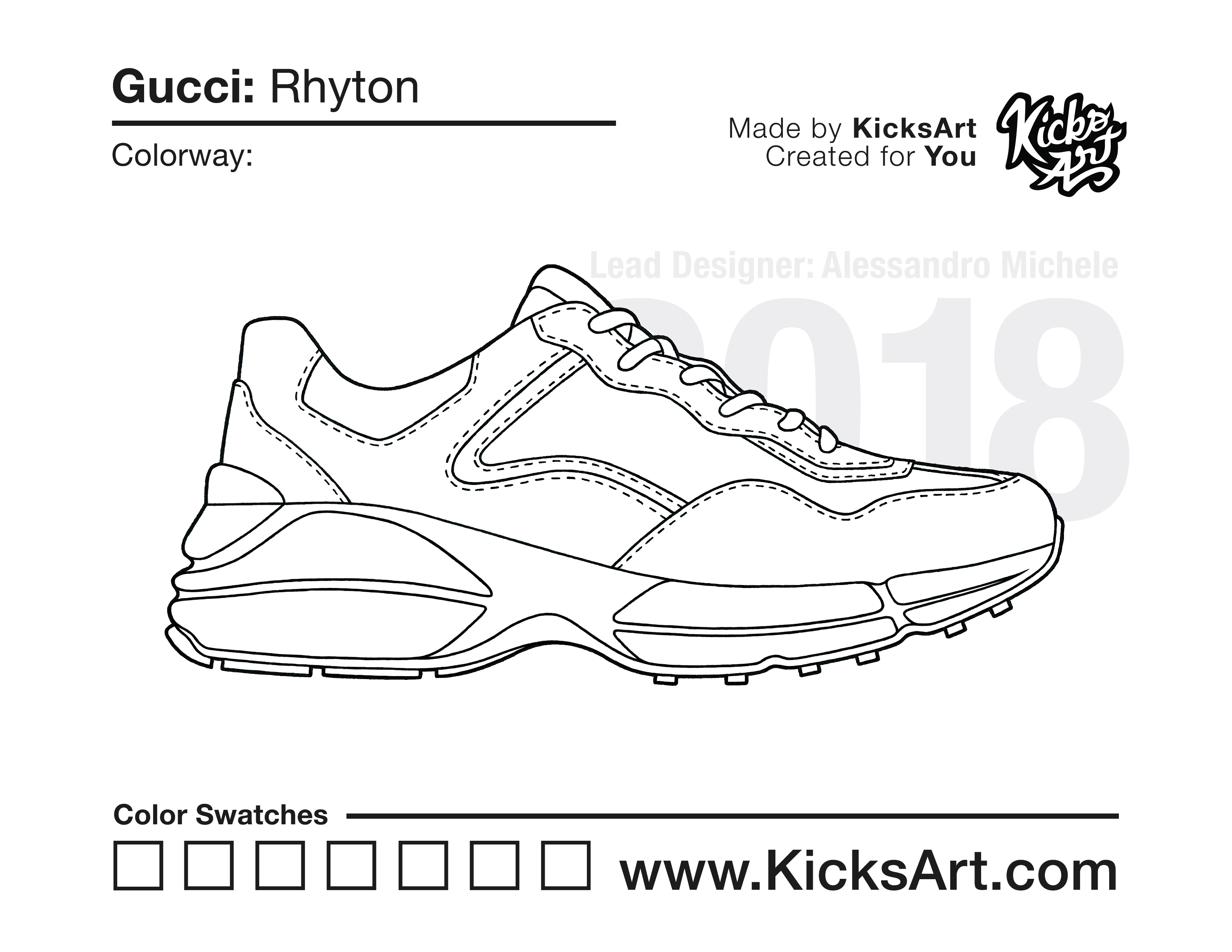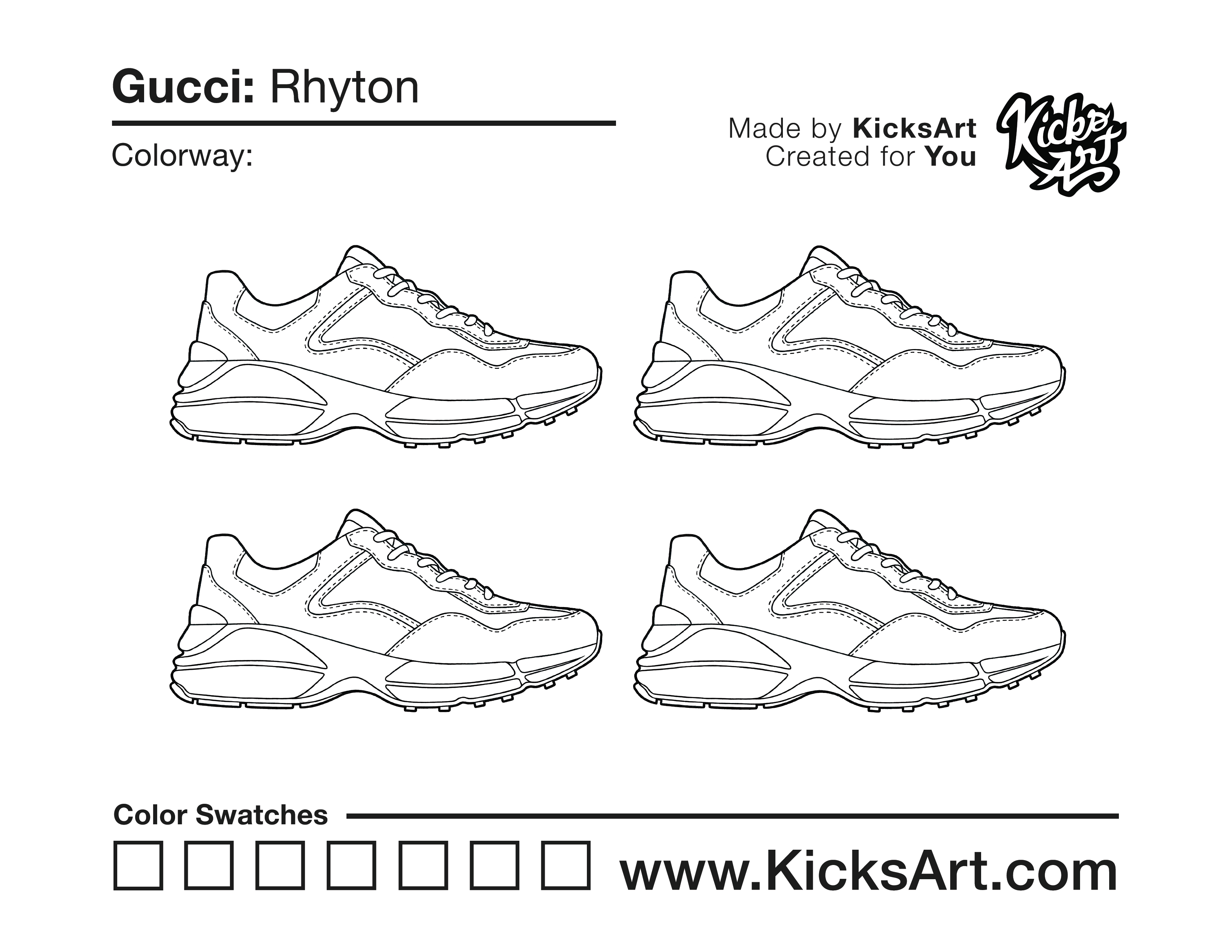 Gucci Rhyton Sneaker Coloring Pages November 26, 2020 kicksart05 For any sneaker coloring page, click on the button above the image to start the instant download! FREE Download: Gucci Rhyton Art materials can be expensive!Try out colorways on these smaller templates so your supplies can last longer! Gucci Rhyton (4UP) Gucci Rhyton (Drawing Guide) Drawing Guide (Page 2)