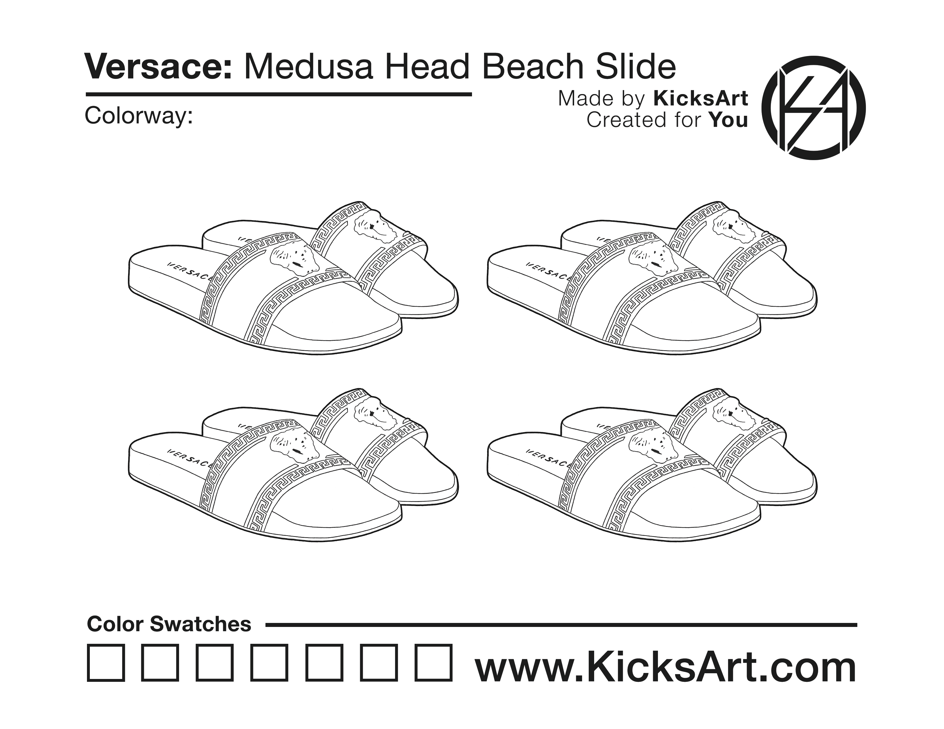 Versace Medusa Head Beach Slide Sneaker Coloring Pages March 17, 2019 kicksart05 For any sneaker coloring page, click on the button above the image to start the instant download! FREE Download: Versace Medusa Head Beach Slide Art materials can be expensive!Try out colorways on these smaller templates so your supplies can last longer! Versace Medusa Head Beach Slide (4UP)
