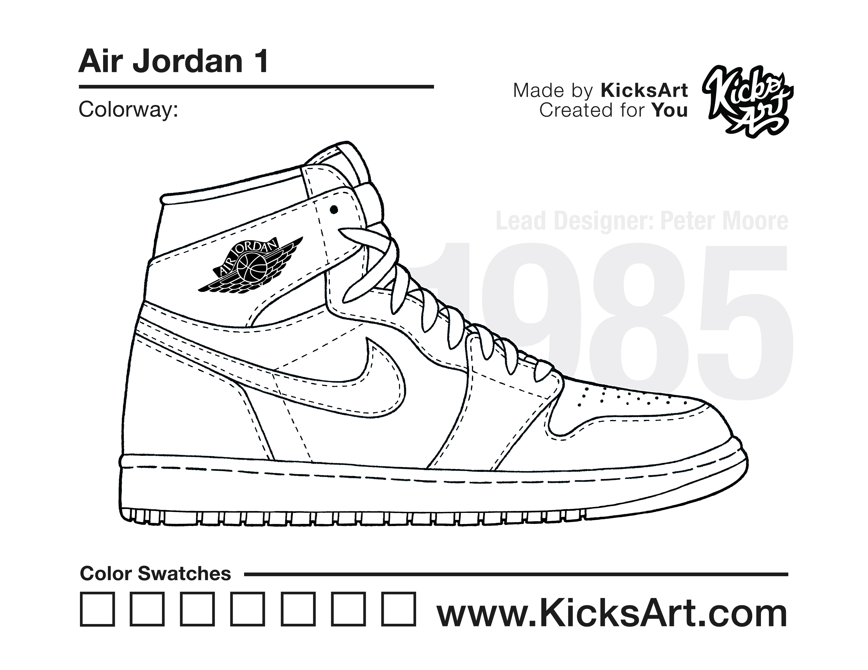 Air Jordan 1 Coloring Pages March 1, 2019 kicksart05 For any sneaker coloring page, click on the button above the image to start the instant download! FREE Download: Air Jordan 1 Art materials can be expensive!Try out colorways on these smaller templates so your supplies can last longer! Air Jordan 1 (4UP) Air Jordan 1 (Drawing Guide) Drawing Guide (Page 2) Additional Variants Air Jordan 1 Off-White Air Jordan 1 Off-White (Tagless) Air Jordan 1 Travis Scott Air Jordan 1 Rebel XX Air Jordan 1 Low Air Jordan 1 Low SB Air Jordan 1 Dior High Air Jordan 1 Dior Low