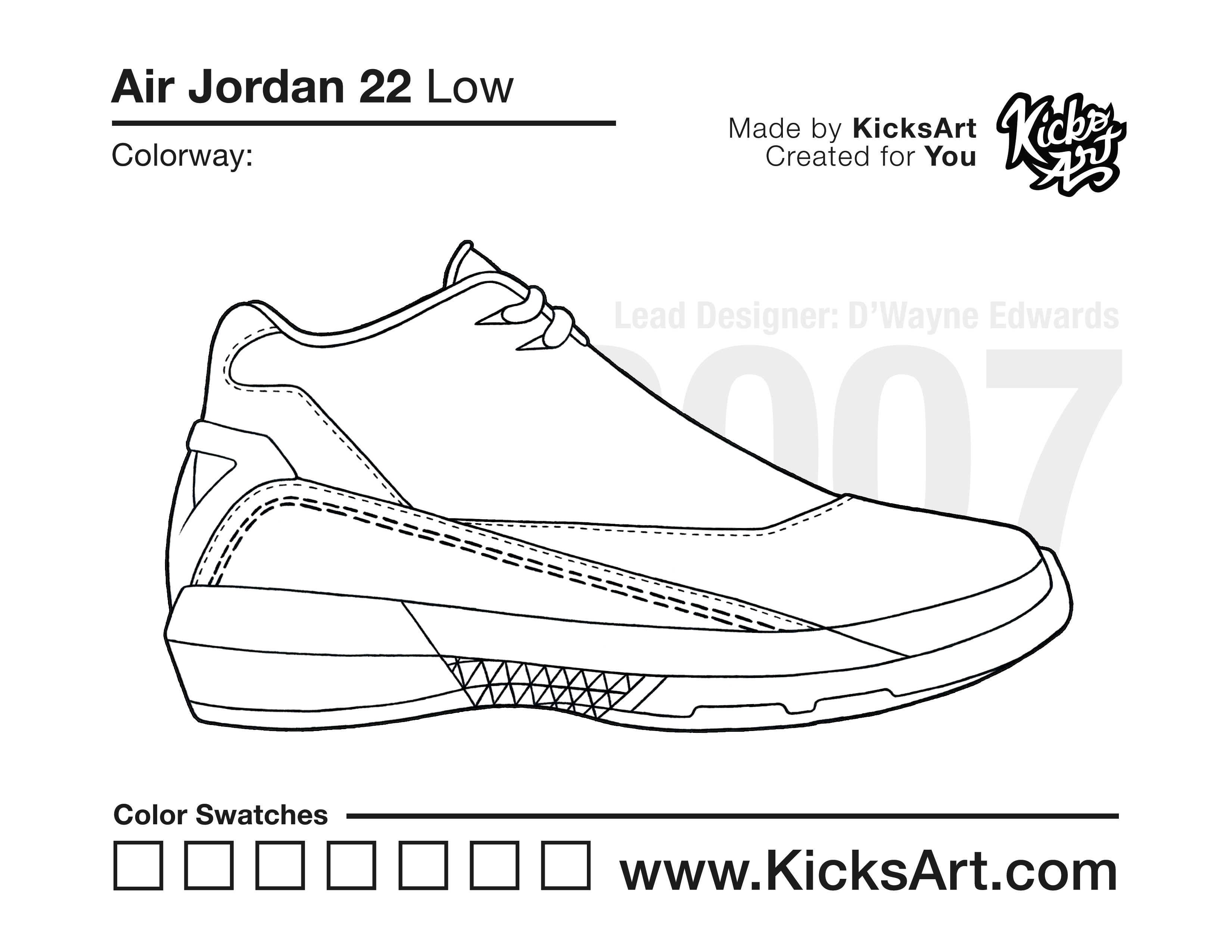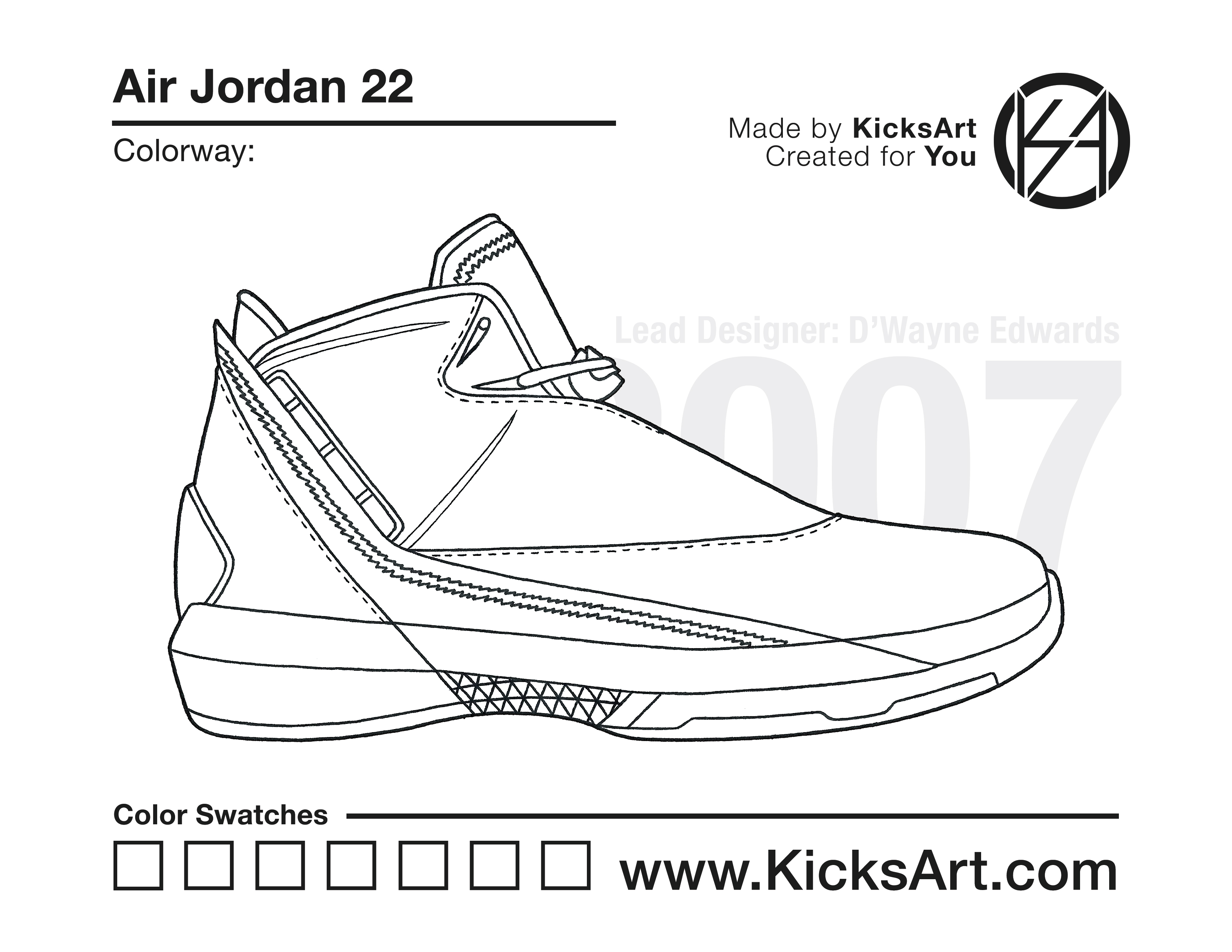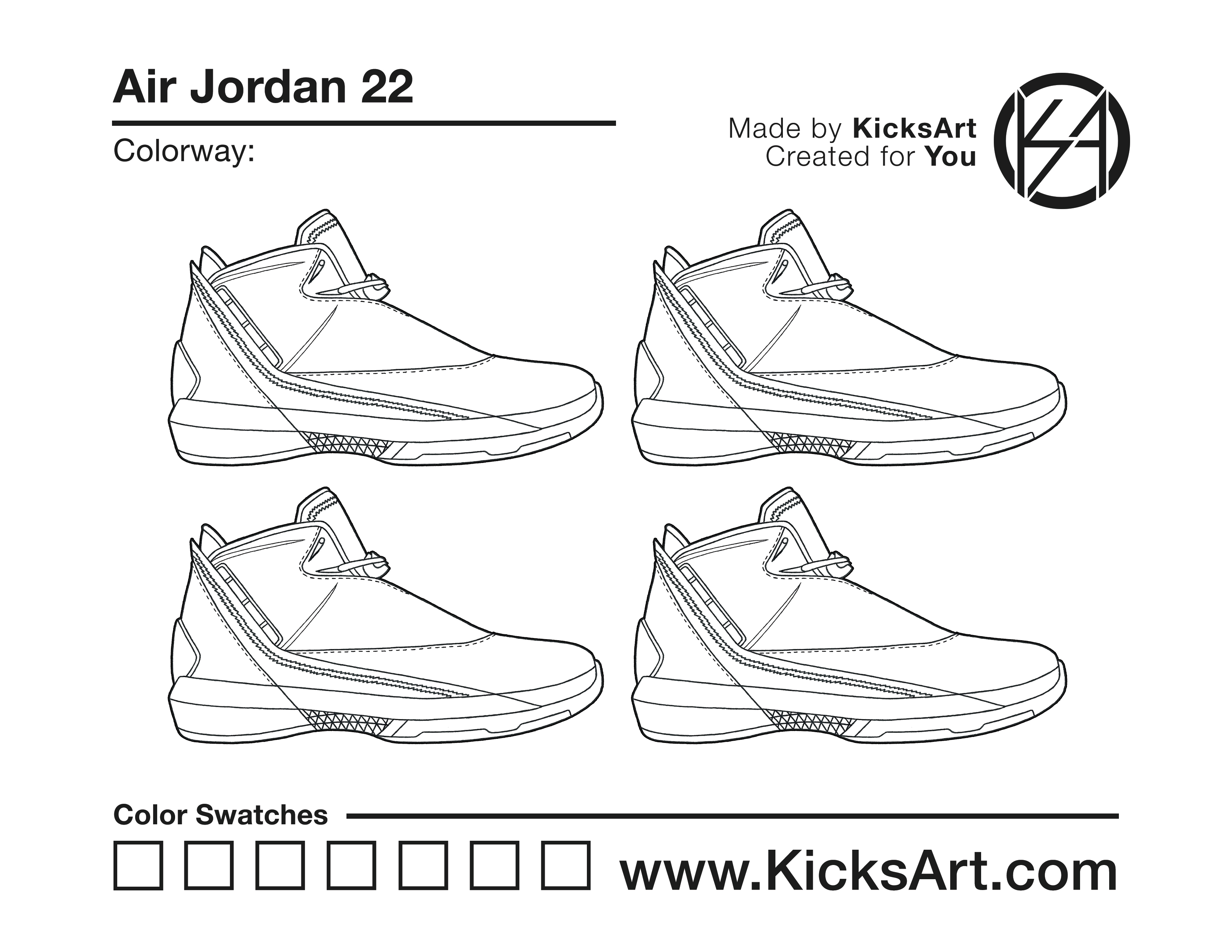 Air Jordan 22 Sneaker Coloring Pages March 10, 2019 kicksart05 For any sneaker coloring page, click on the button above the image to start the instant download! FREE Download: Air Jordan 22 Art materials can be expensive!Try out colorways on these smaller templates so your supplies can last longer! Air Jordan 22 (4UP) Air Jordan 22 (Drawing Guide) Drawing Guide (Page 2) Additional Variants Air Jordan 22 Low