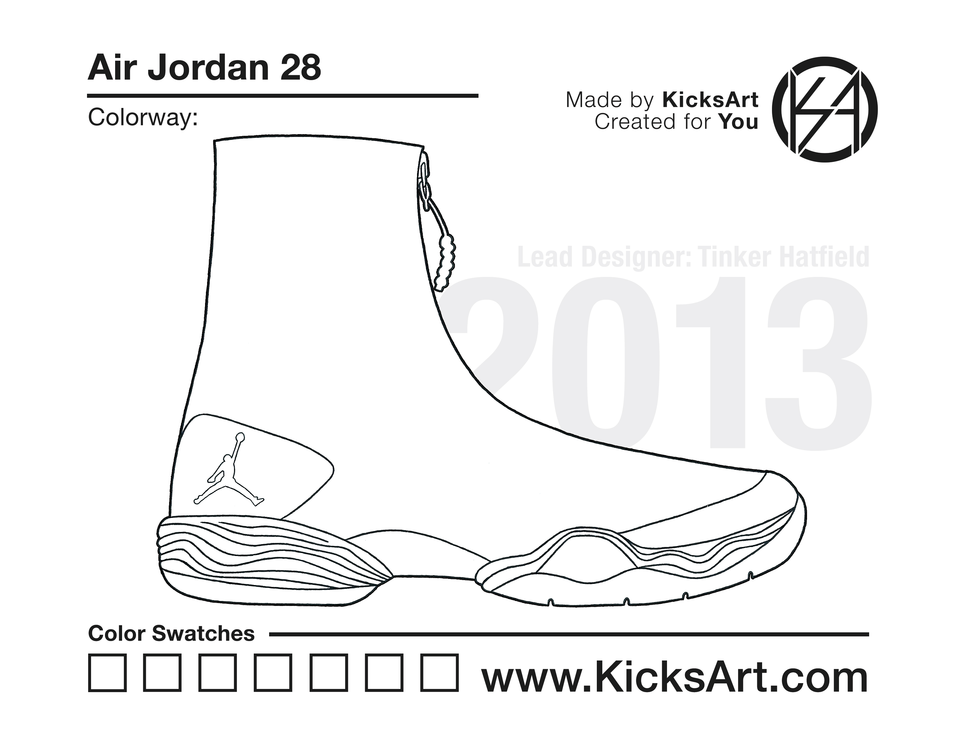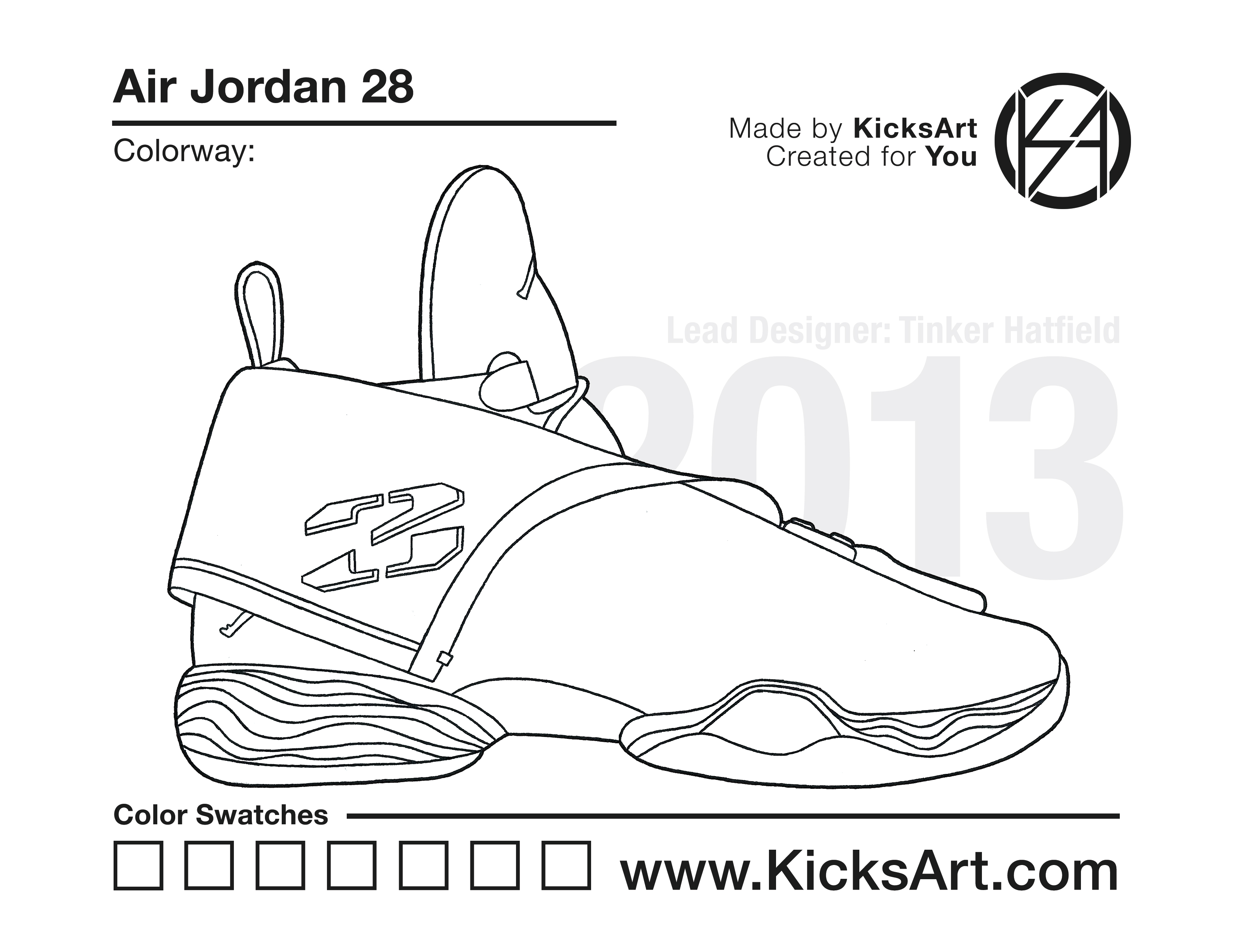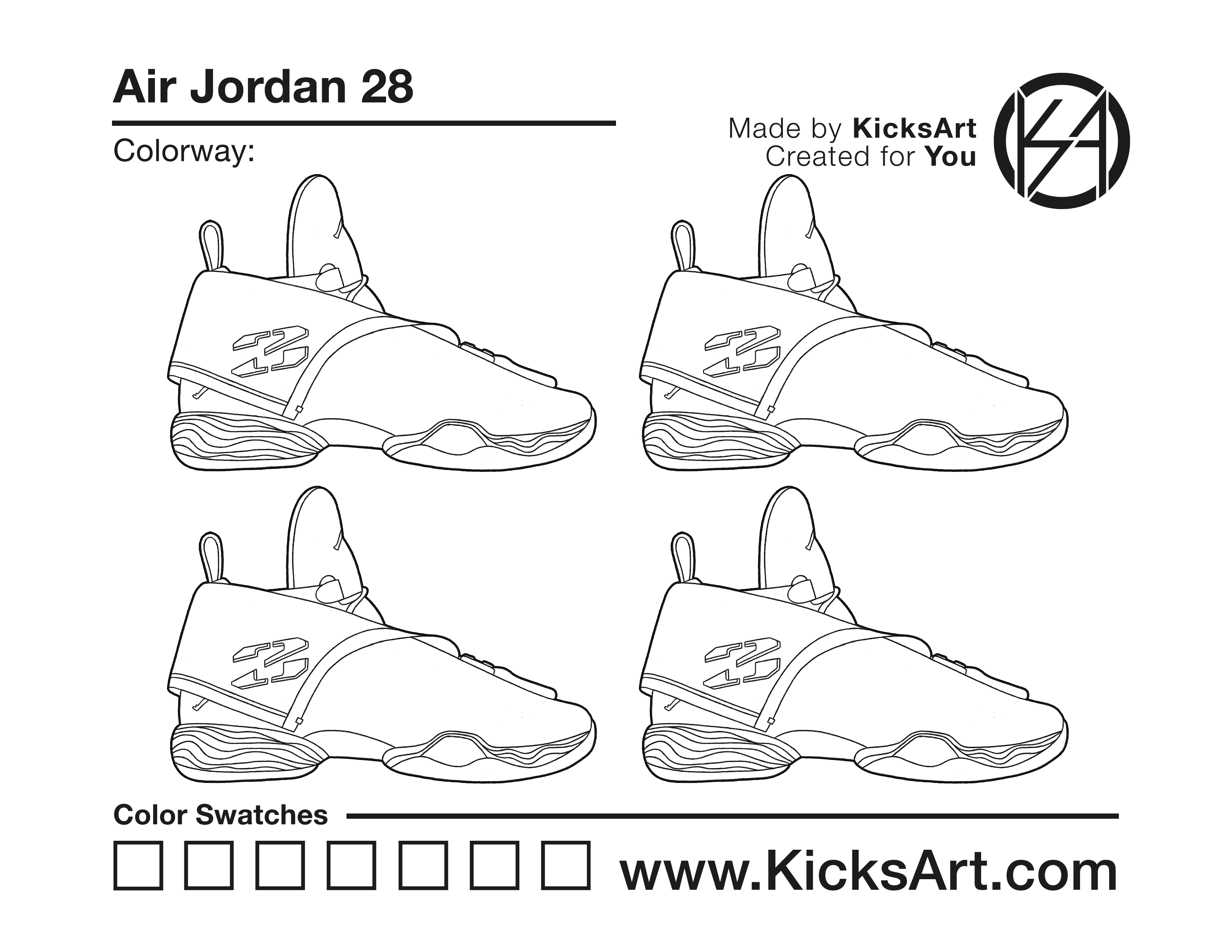 Air Jordan 28 Sneaker Coloring Pages March 10, 2019 kicksart05 For any sneaker coloring page, click on the button above the image to start the instant download! FREE Download: Air Jordan 28 Art materials can be expensive!Try out colorways on these smaller templates so your supplies can last longer! Air Jordan 28 (4UP) Additional Variants Air Jordan 28 (Zipped Up)
