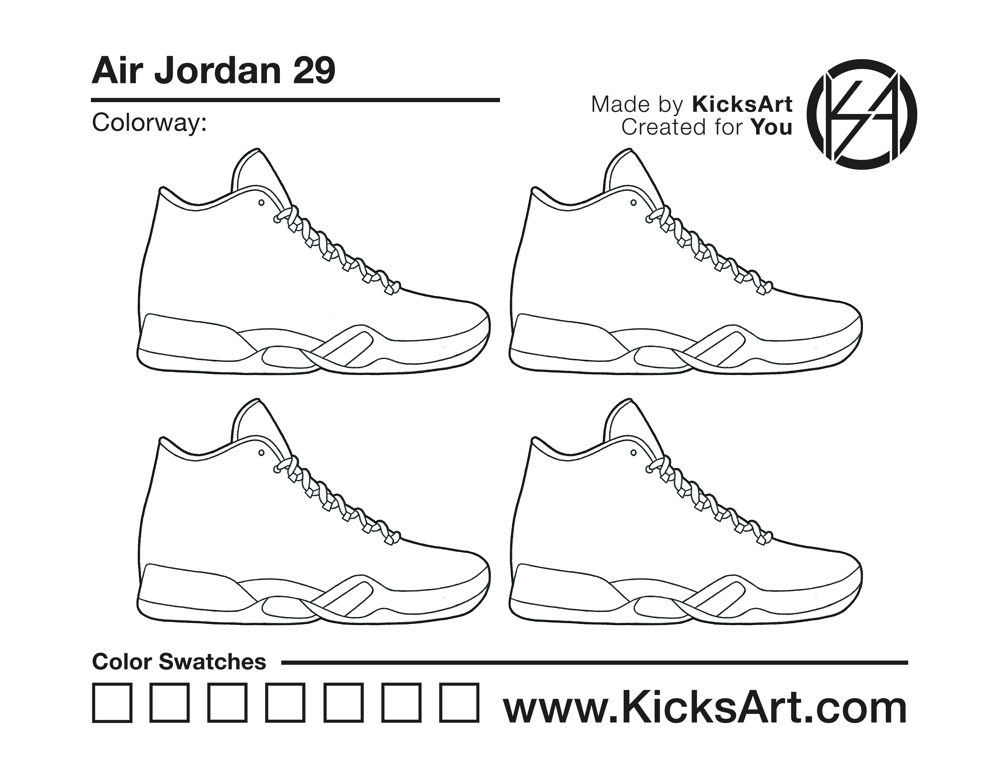 Air Jordan 29 Sneaker Coloring Pages March 10, 2019 kicksart05 For any sneaker coloring page, click on the button above the image to start the instant download! FREE Download: Air Jordan 29 Art materials can be expensive!Try out colorways on these smaller templates so your supplies can last longer! Air Jordan 29 (4UP)