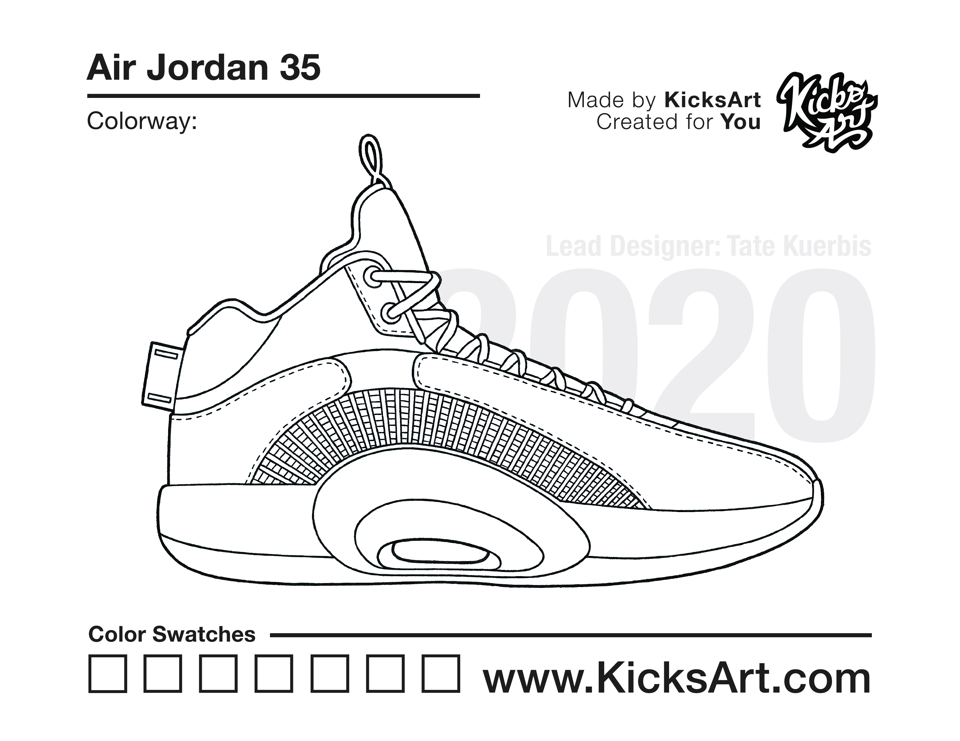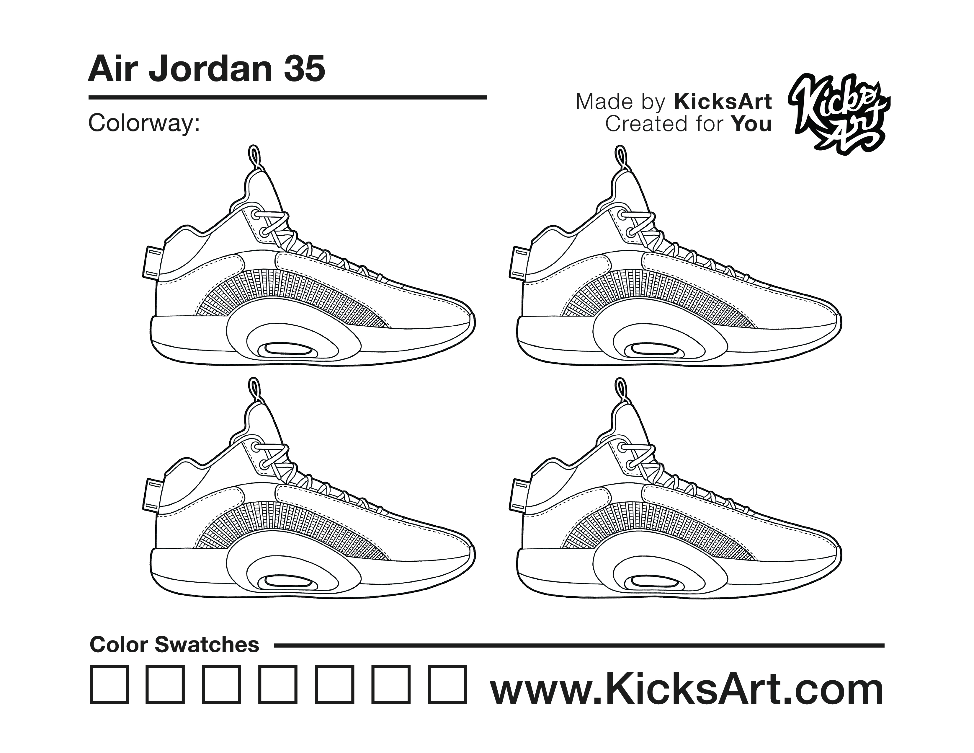 Air Jordan 35 Sneaker Coloring Pages October 23, 2020 kicksart05 For any sneaker coloring page, click on the button above the image to start the instant download! FREE Download: Air Jordan 35 Art materials can be expensive!Try out colorways on these smaller templates so your supplies can last longer! Air Jordan 35 (4UP)