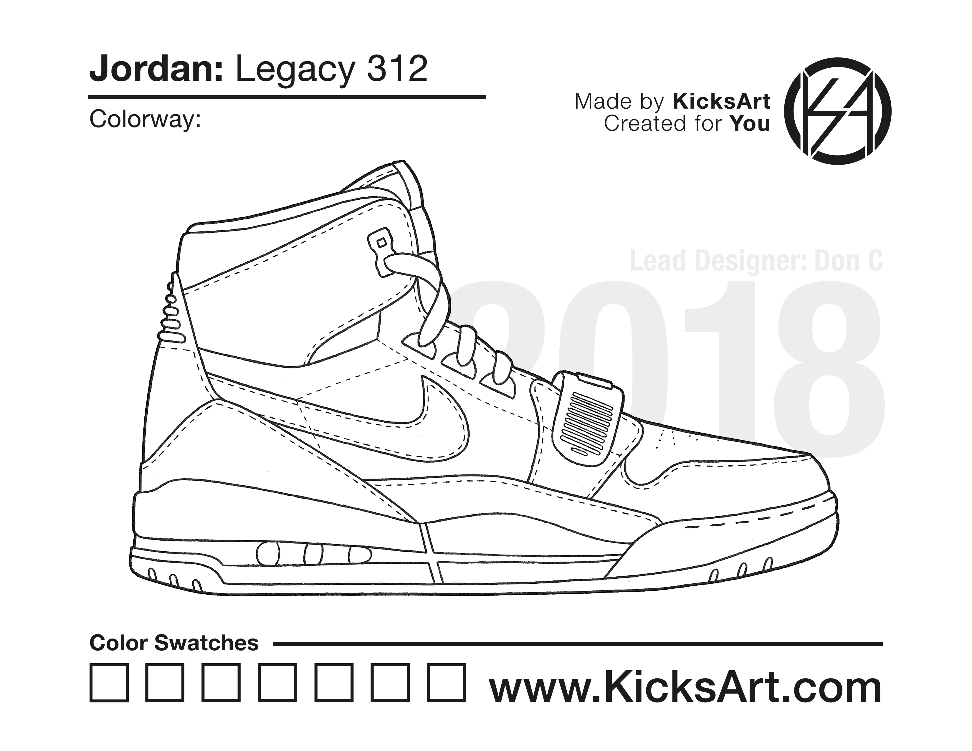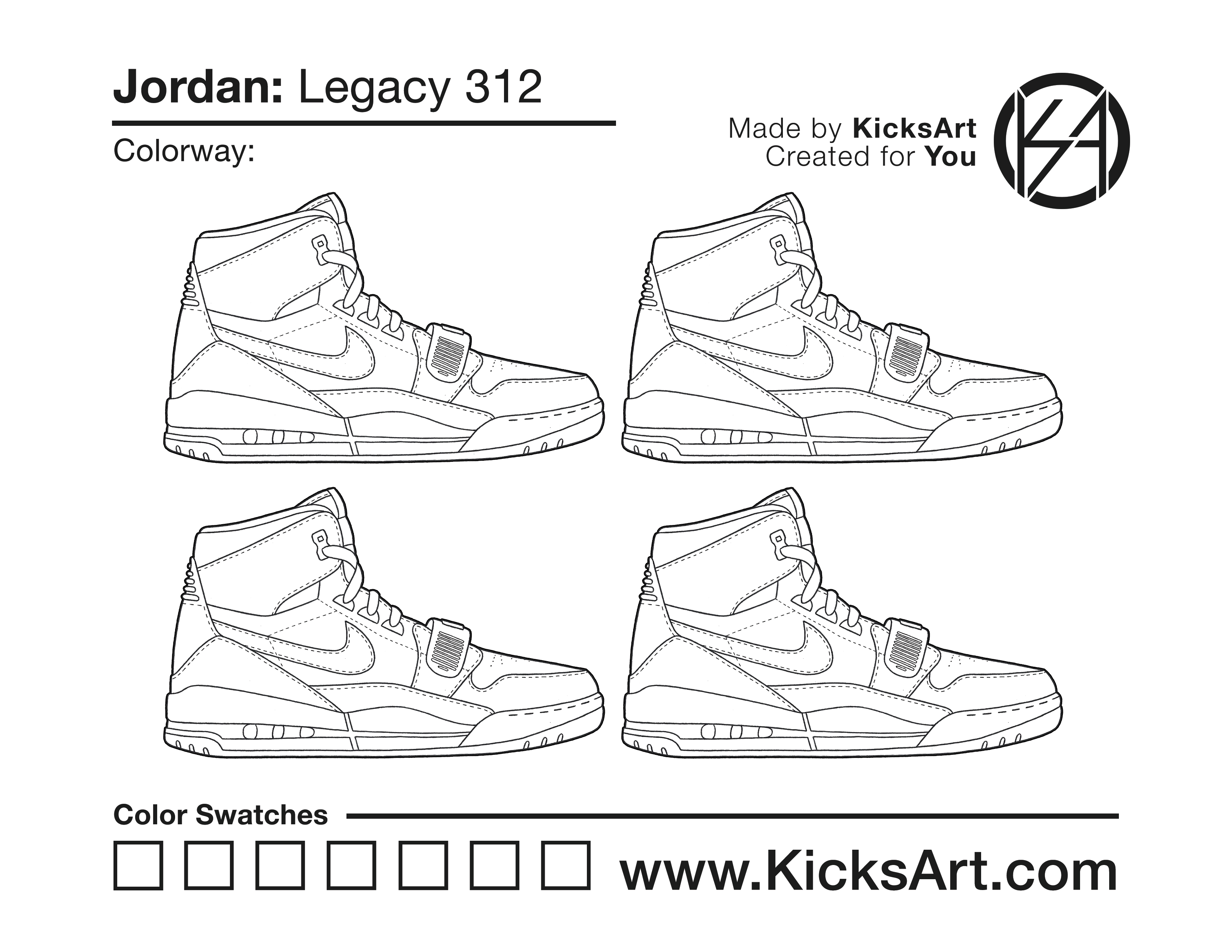 Jordan Legacy 312 Sneaker Coloring Pages March 10, 2019 kicksart05 For any sneaker coloring page, click on the button above the image to start the instant download! FREE Download: Jordan Legacy 312 Art materials can be expensive!Try out colorways on these smaller templates so your supplies can last longer! Jordan Legacy 312 (4UP)