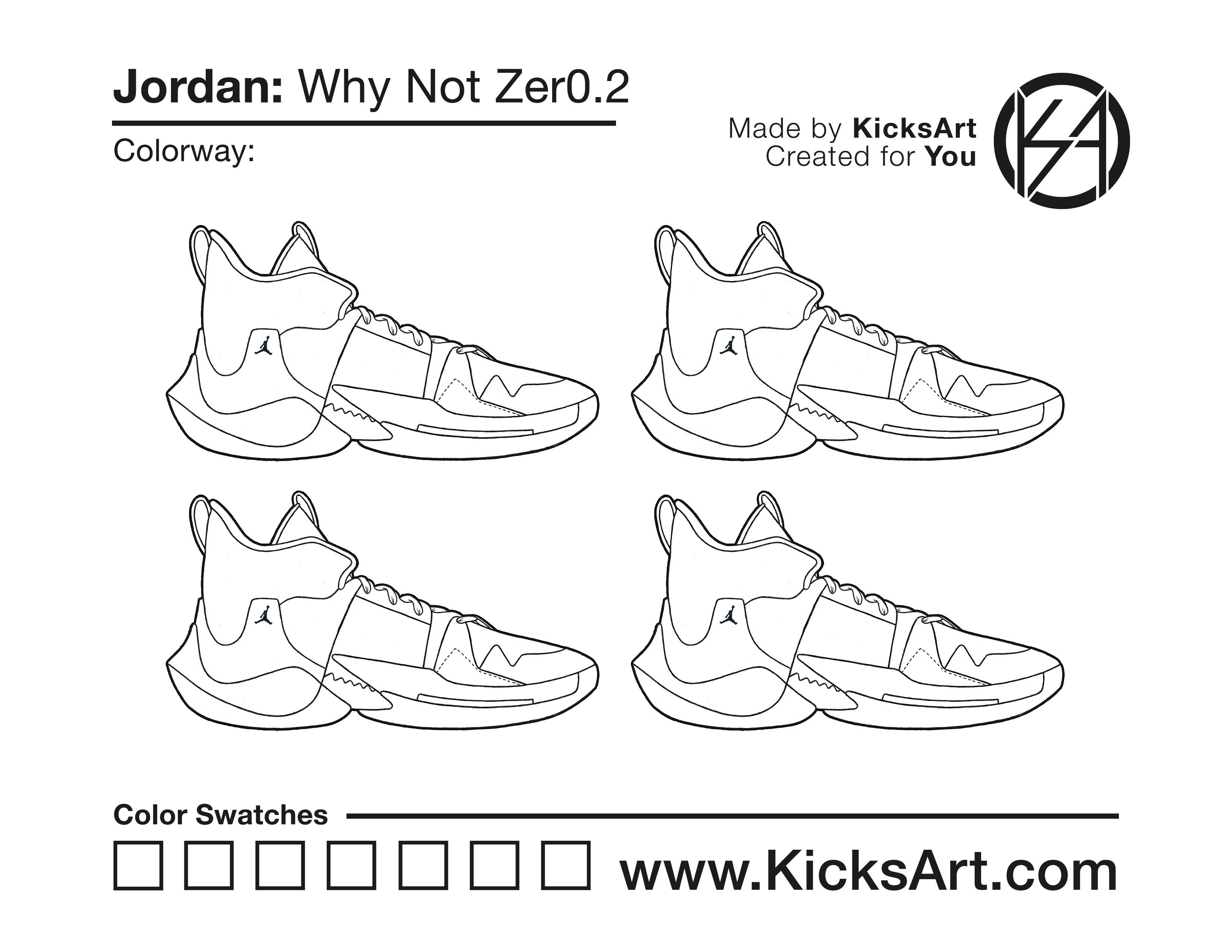 Jordan Why Not Zer0.2 Sneaker Coloring Pages March 10, 2019 kicksart05 For any sneaker coloring page, click on the button above the image to start the instant download! FREE Download: Jordan Why Not Zer0.2 Art materials can be expensive!Try out colorways on these smaller templates so your supplies can last longer! Jordan Why Not Zer0.2 (4UP)
