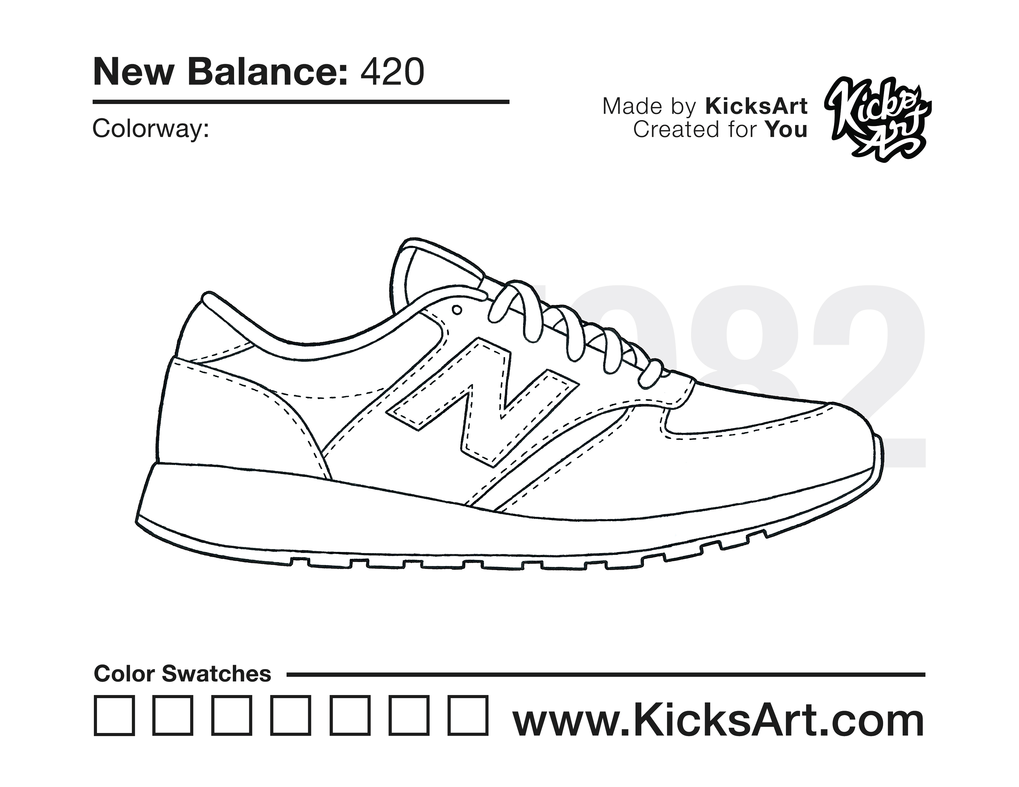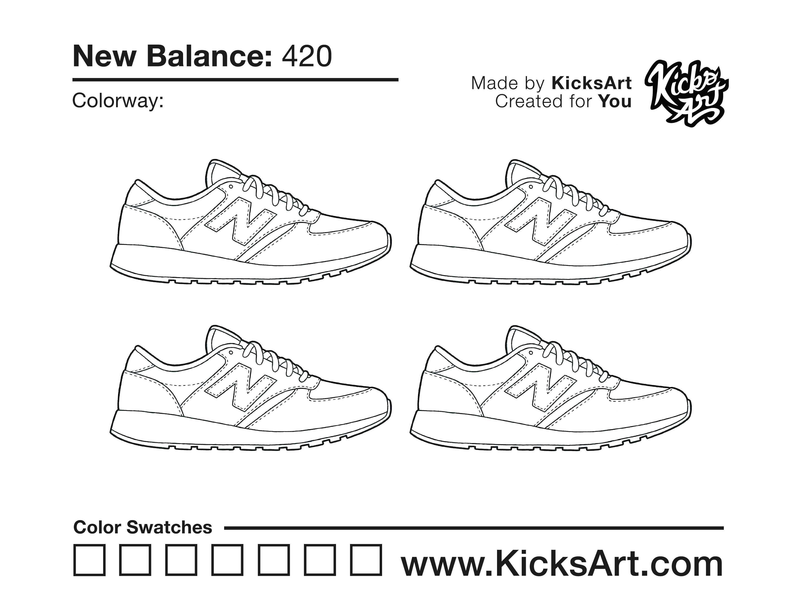 New Balance 420 Sneaker Coloring Pages April 13, 2020 kicksart05 For any sneaker coloring page, click on the button above the image to start the instant download! FREE Download: New Balance 420 Art materials can be expensive!Try out colorways on these smaller templates so your supplies can last longer! New Balance 420 (4UP)