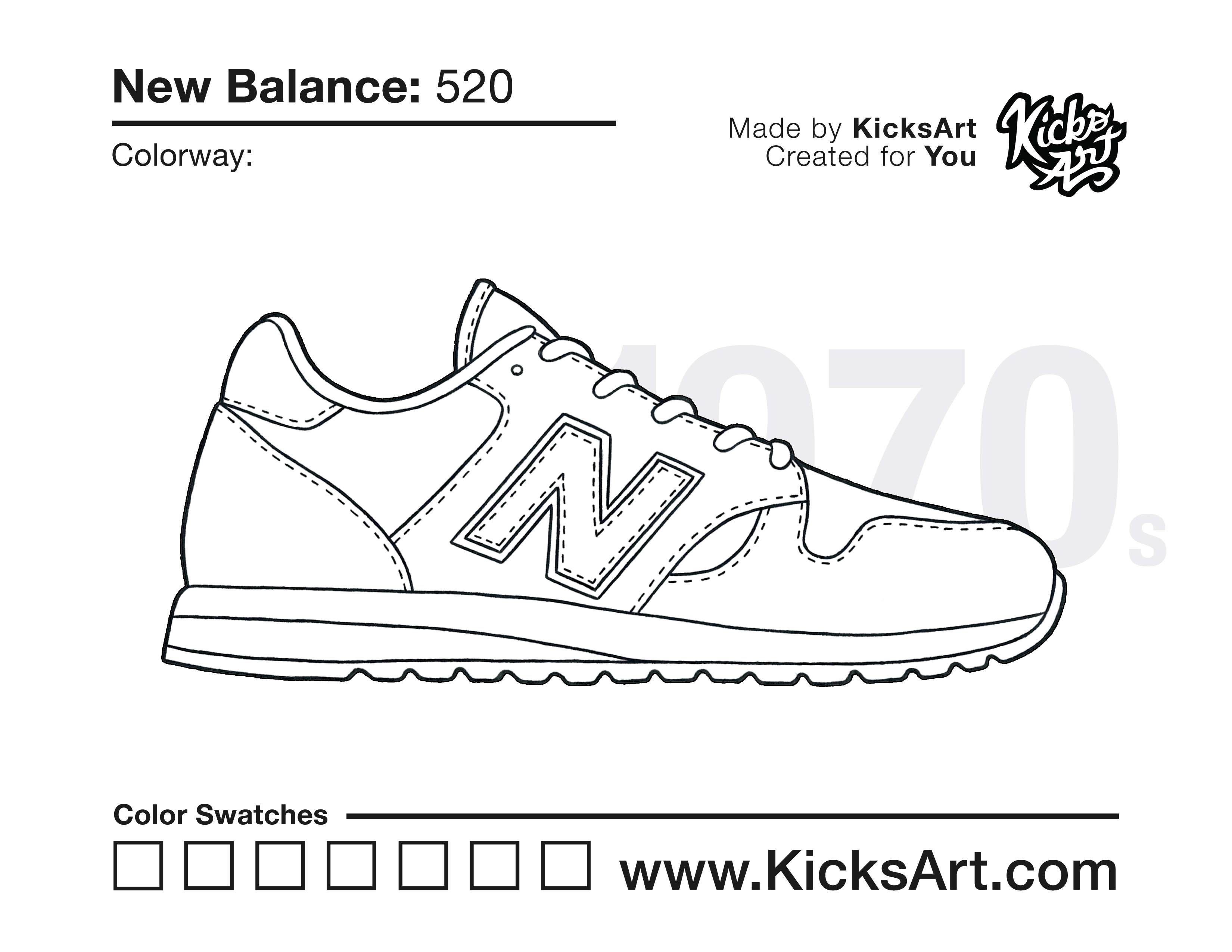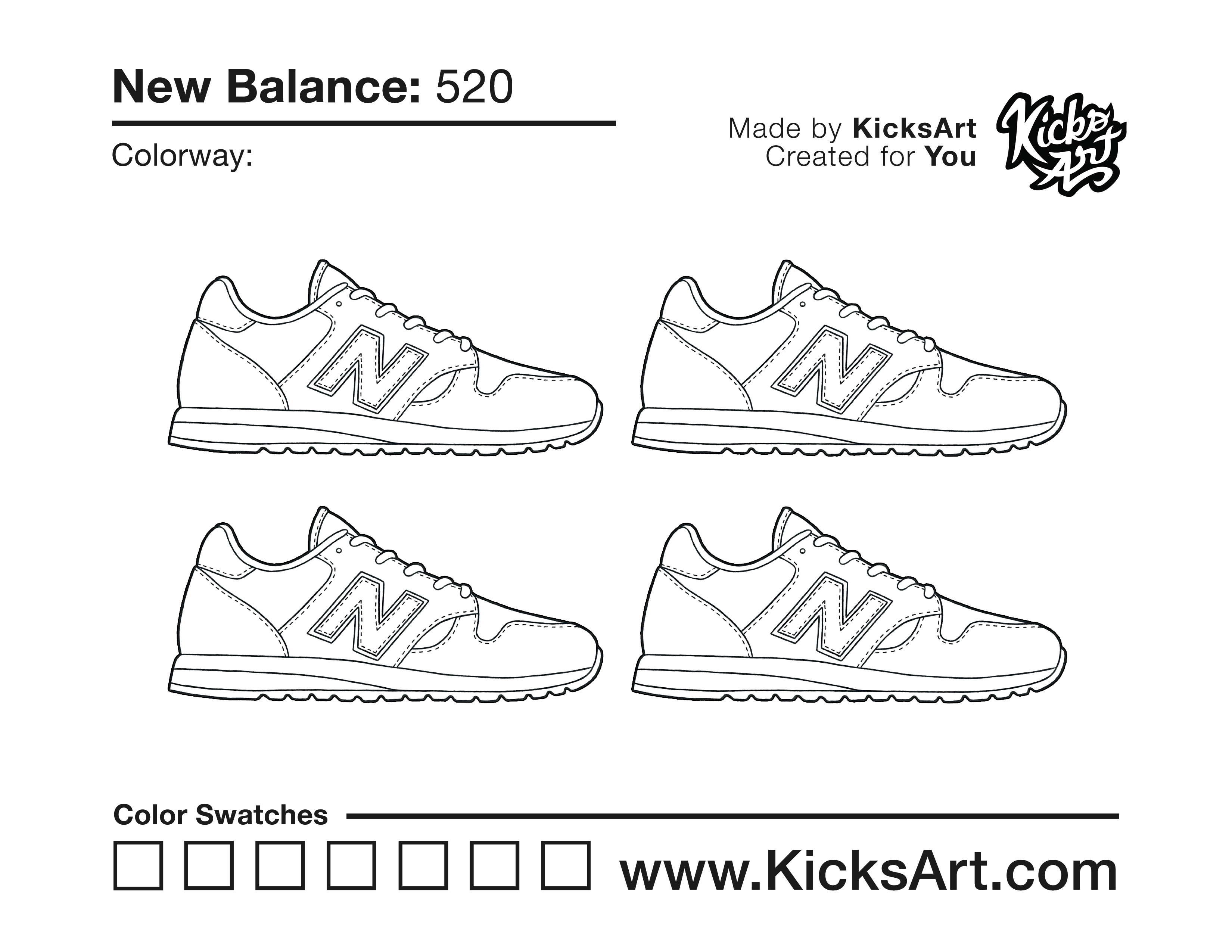 New Balance 520 Sneaker Coloring Pages April 14, 2020 kicksart05 For any sneaker coloring page, click on the button above the image to start the instant download! FREE Download: New Balance 520 Art materials can be expensive!Try out colorways on these smaller templates so your supplies can last longer! New Balance 520 (4UP)