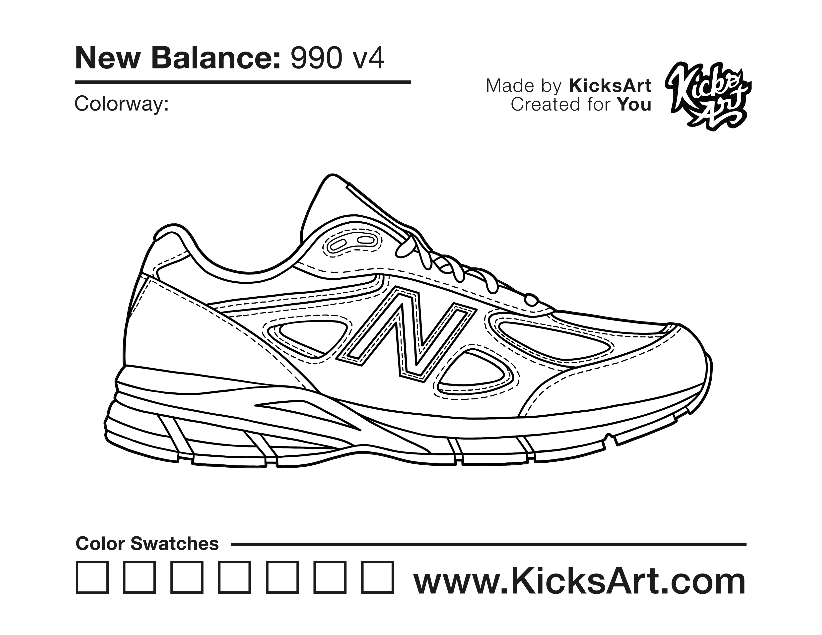 New Balance 990 Sneaker Coloring Pages April 11, 2020 kicksart05 For any sneaker coloring page, click on the button above the image to start the instant download! FREE Download: New Balance 990 Art materials can be expensive!Try out colorways on these smaller templates so your supplies can last longer! New Balance 990 (4UP) Additional Variants New Balance 990 v4 New Balance 990 v5