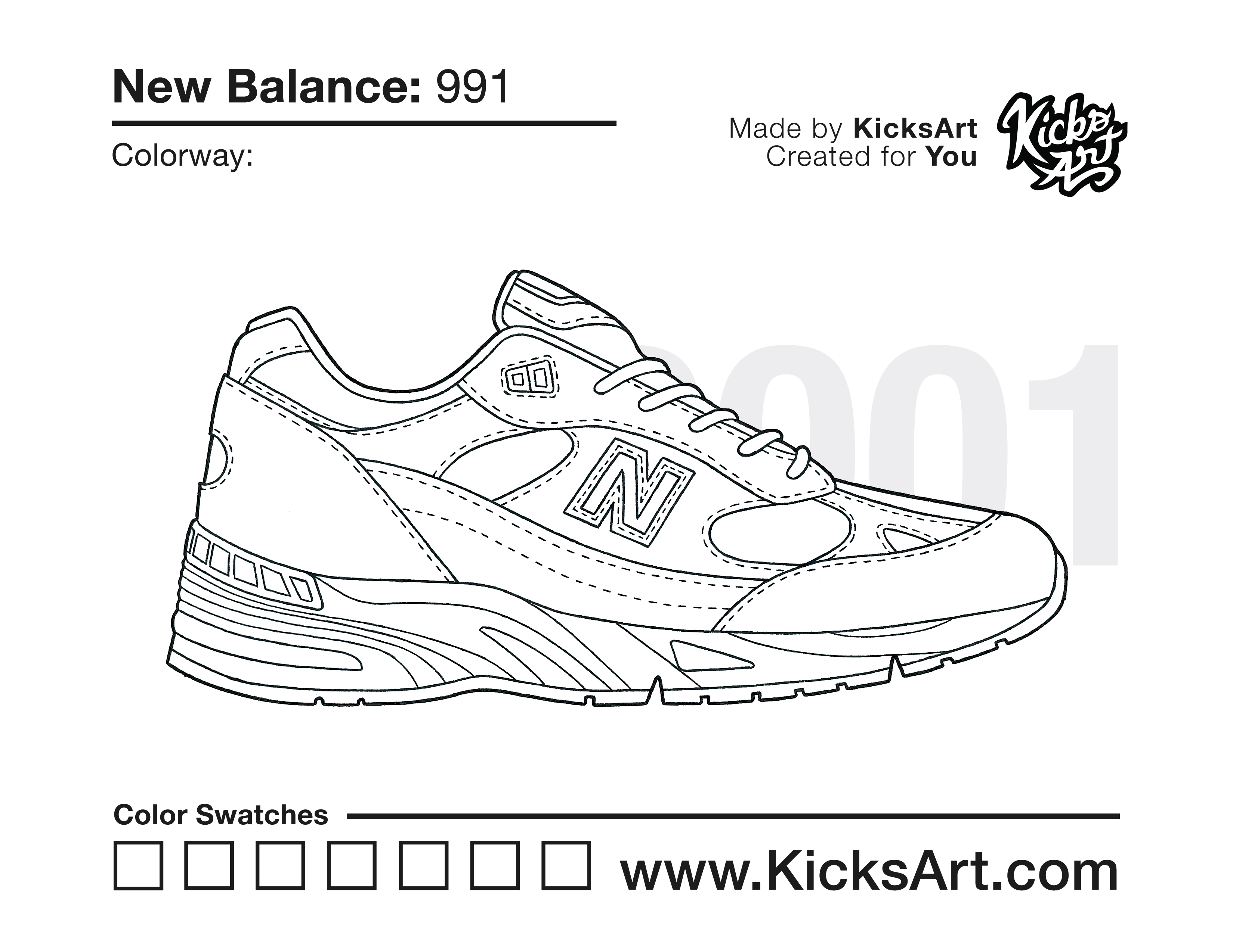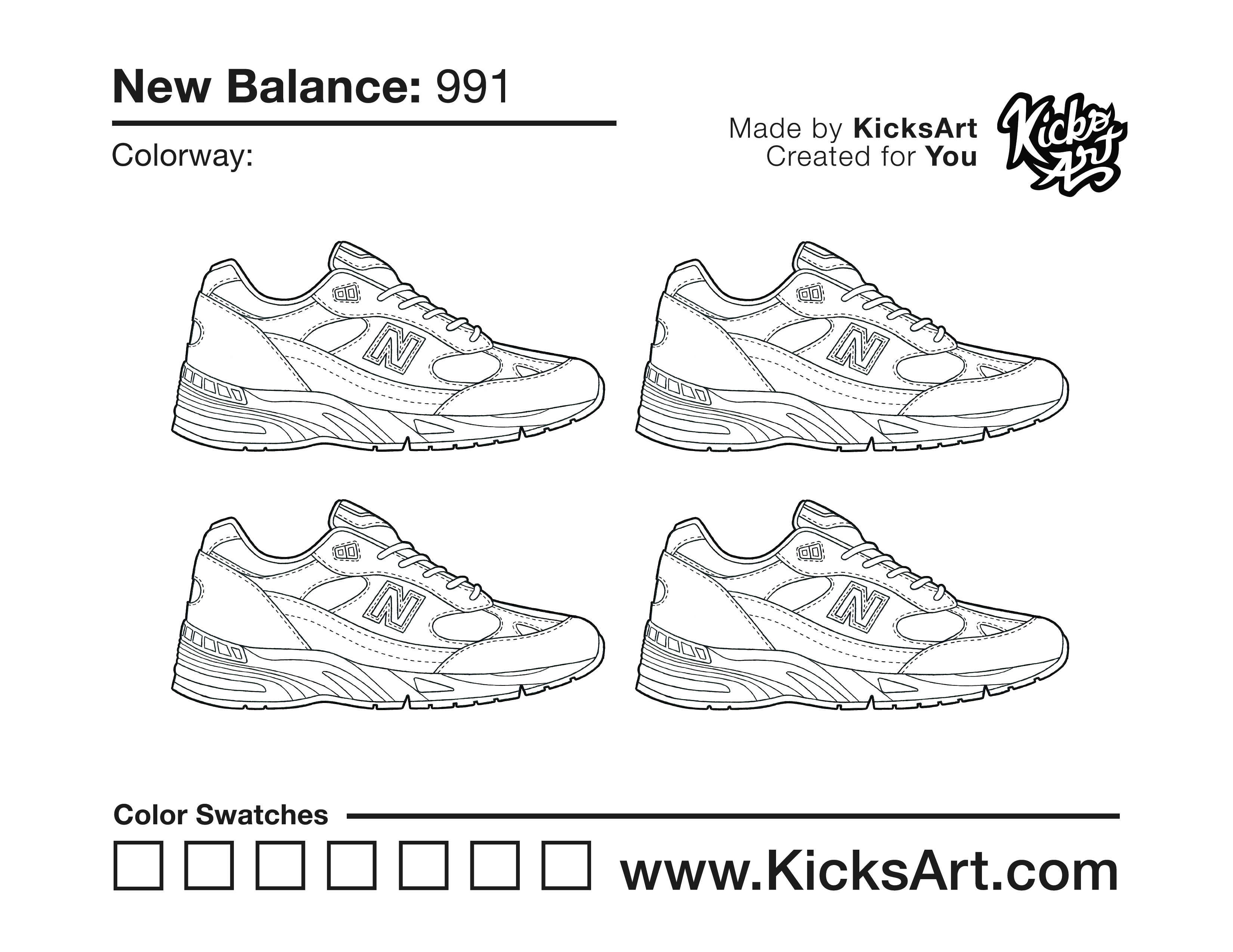 New Balance 991 Sneaker Coloring Pages April 6, 2020 kicksart05 For any sneaker coloring page, click on the button above the image to start the instant download! FREE Download: New Balance 991 Art materials can be expensive!Try out colorways on these smaller templates so your supplies can last longer! New Balance 991 (4UP)