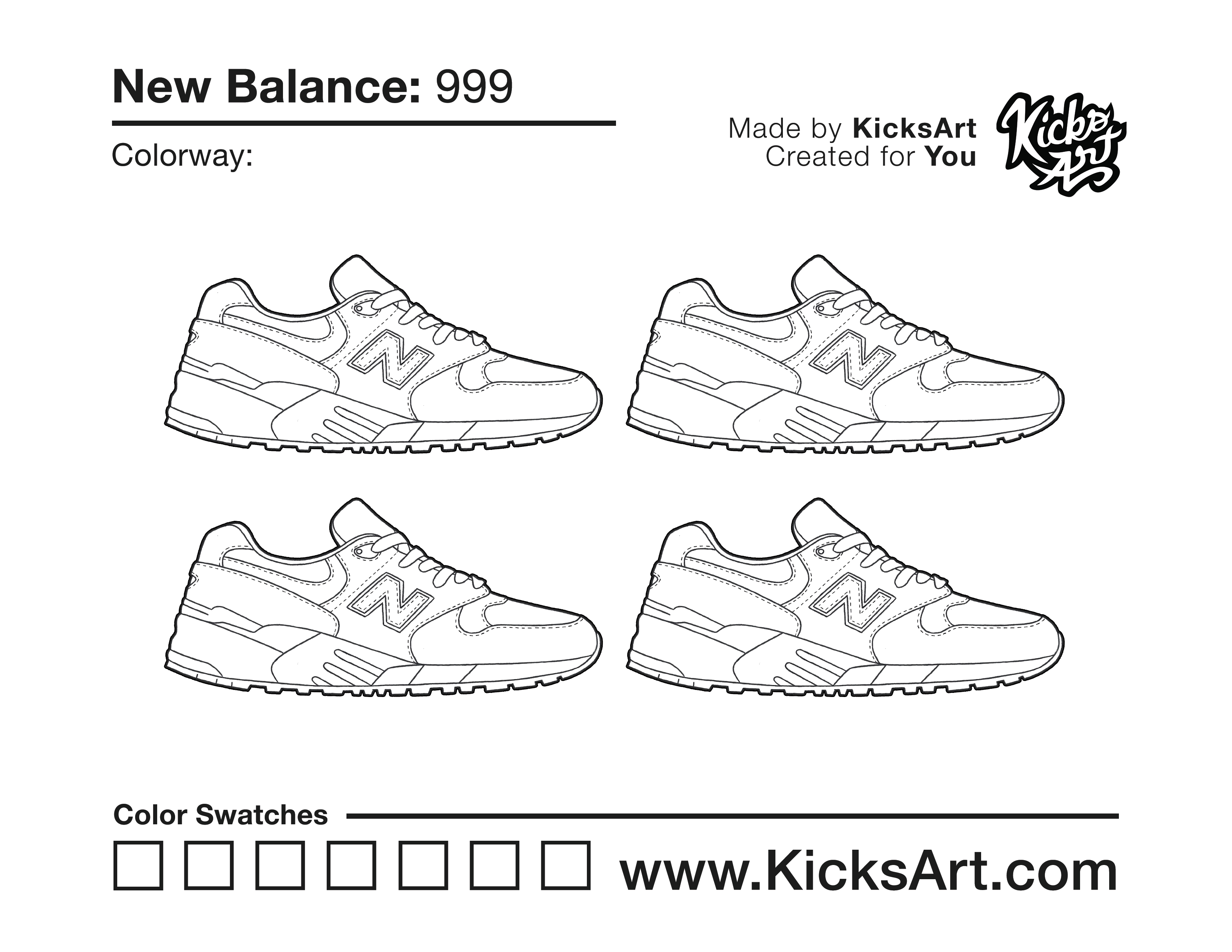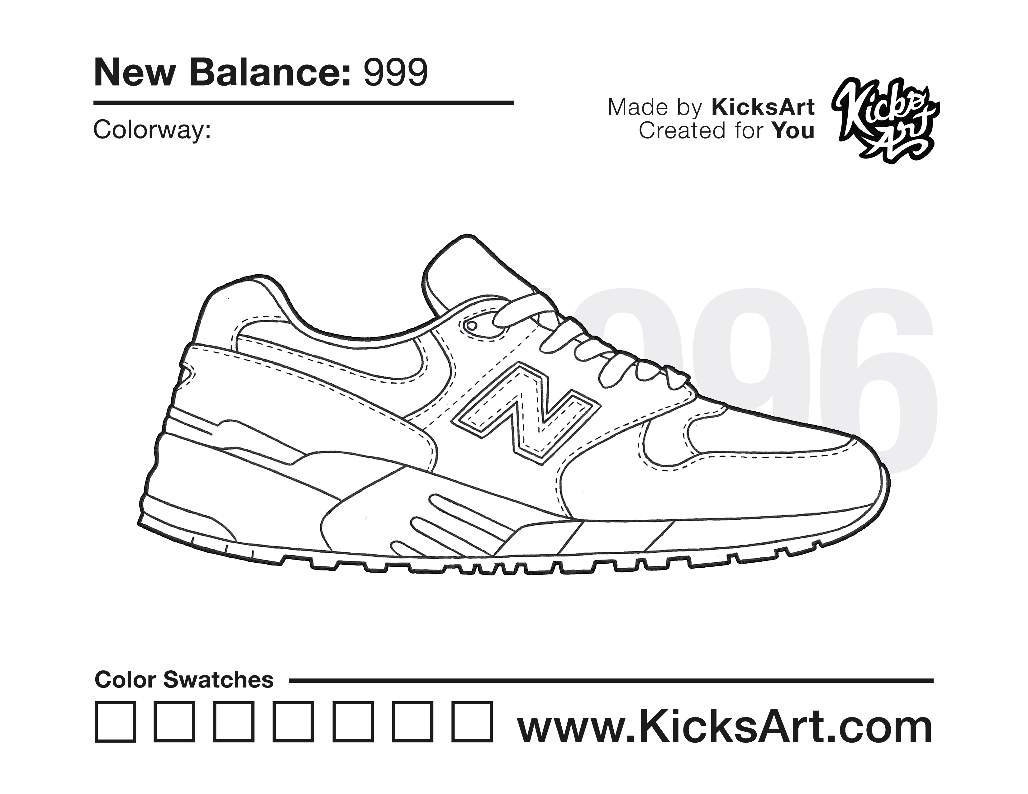 New Balance 999 Sneaker Coloring Pages March 30, 2020 kicksart05 For any sneaker coloring page, click on the button above the image to start the instant download! FREE Download: New Balance 999 Art materials can be expensive!Try out colorways on these smaller templates so your supplies can last longer! New Balance 999 (4UP)