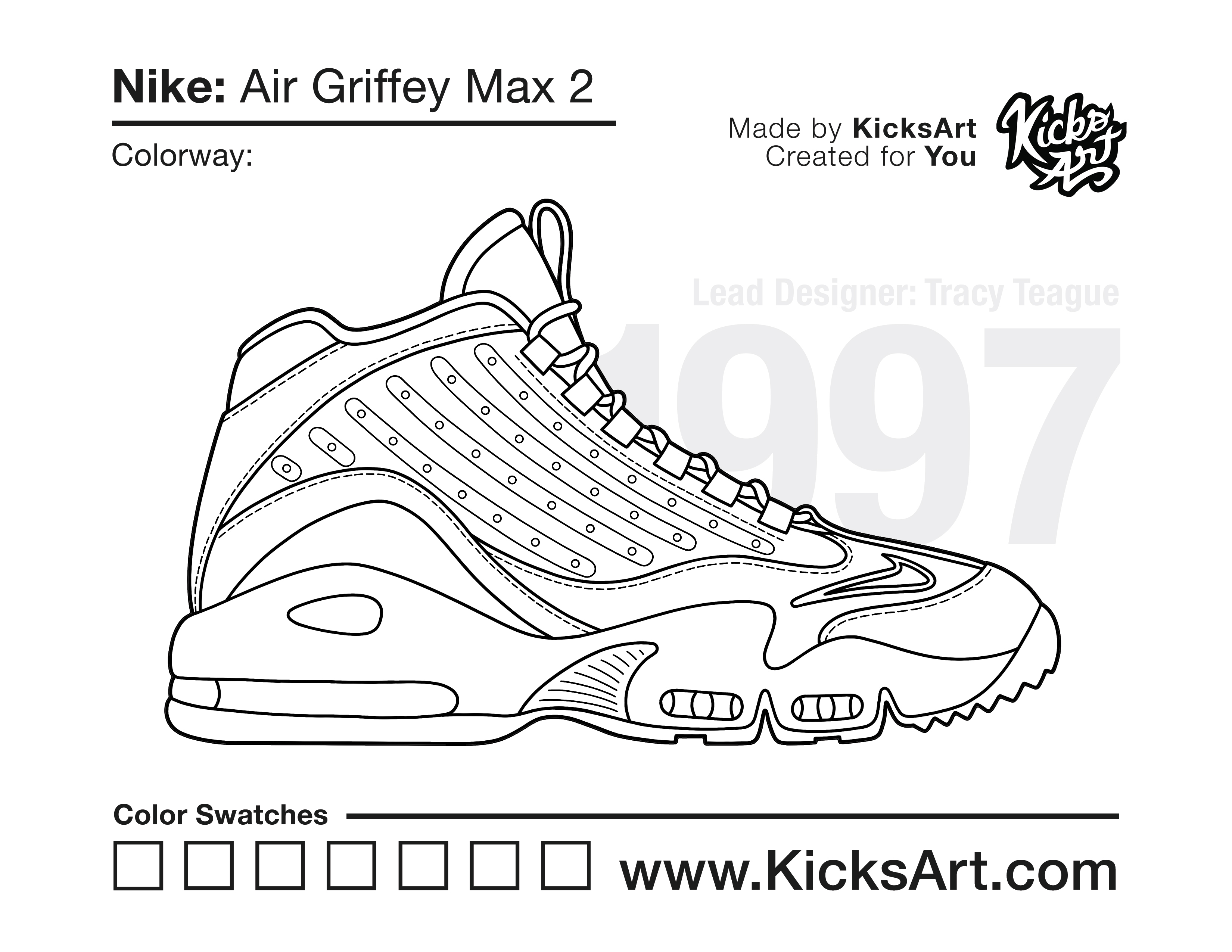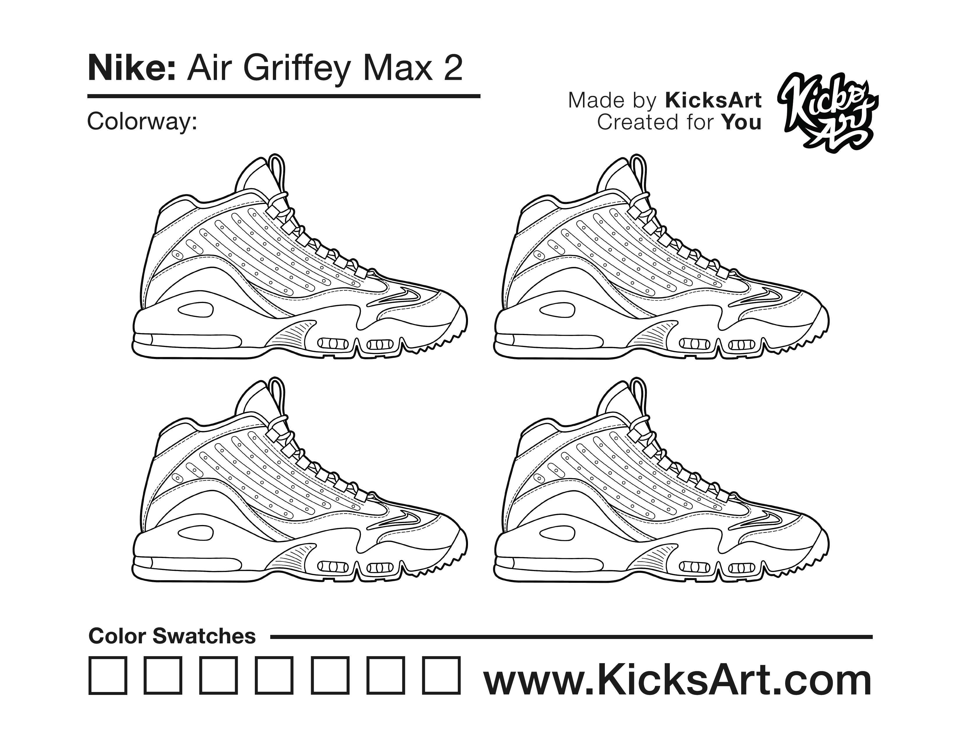 Nike Air Griffey Max 2 Sneaker Coloring Pages July 29, 2021 kicksart05 For any sneaker coloring page, click on the button above the image to start the instant download! FREE Download: Nike Air Griffey Max 2 Art materials can be expensive!Try out colorways on these smaller templates so your supplies can last longer! Nike Air Griffey Max 2 (4UP)