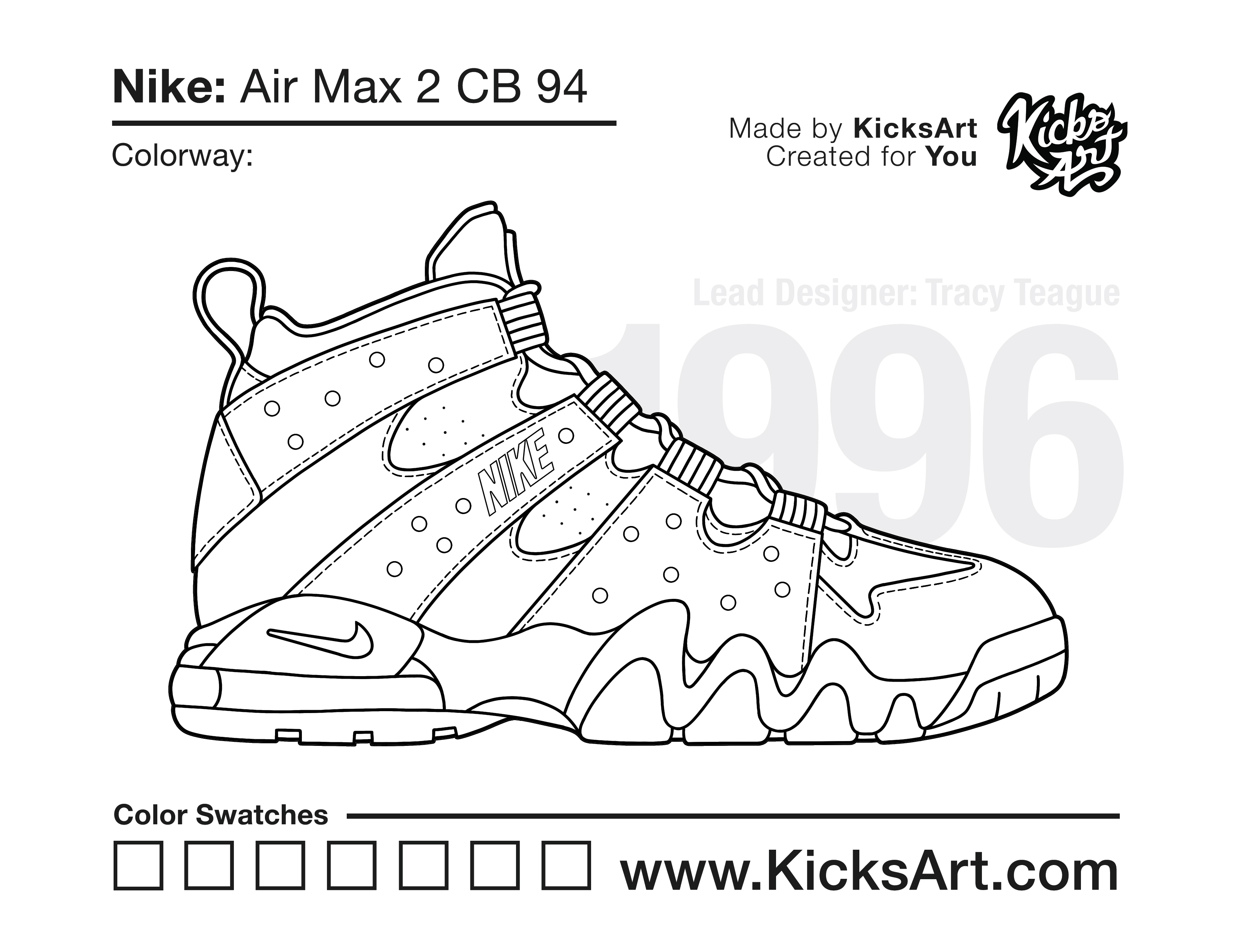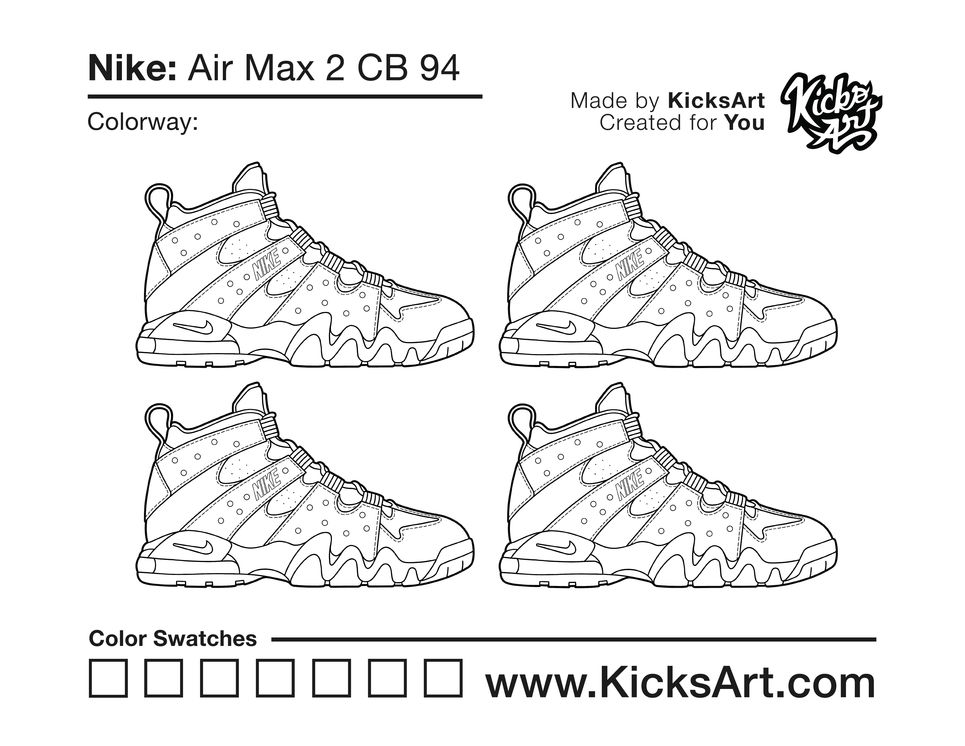 Nike Air Max 2 CB 94 Sneaker Coloring Pages July 23, 2021 kicksart05 For any sneaker coloring page, click on the button above the image to start the instant download! FREE Download: Nike Air Max 2 CB 94 Art materials can be expensive!Try out colorways on these smaller templates so your supplies can last longer! Nike Air Max 2 CB 94 (4UP)