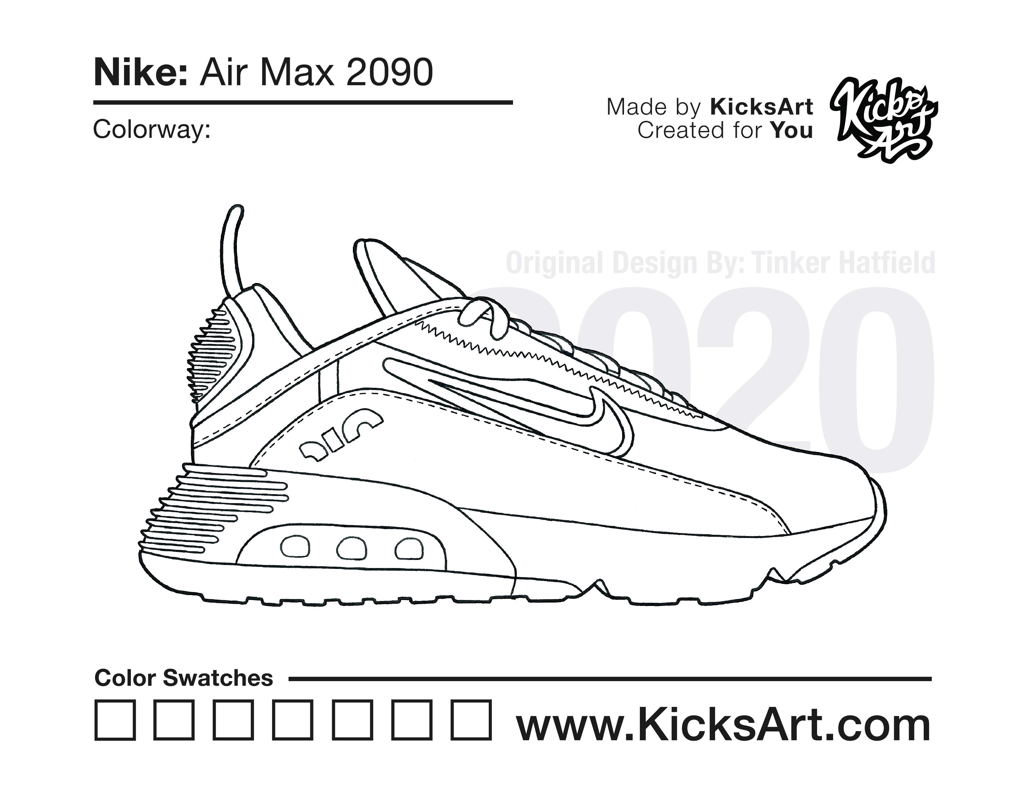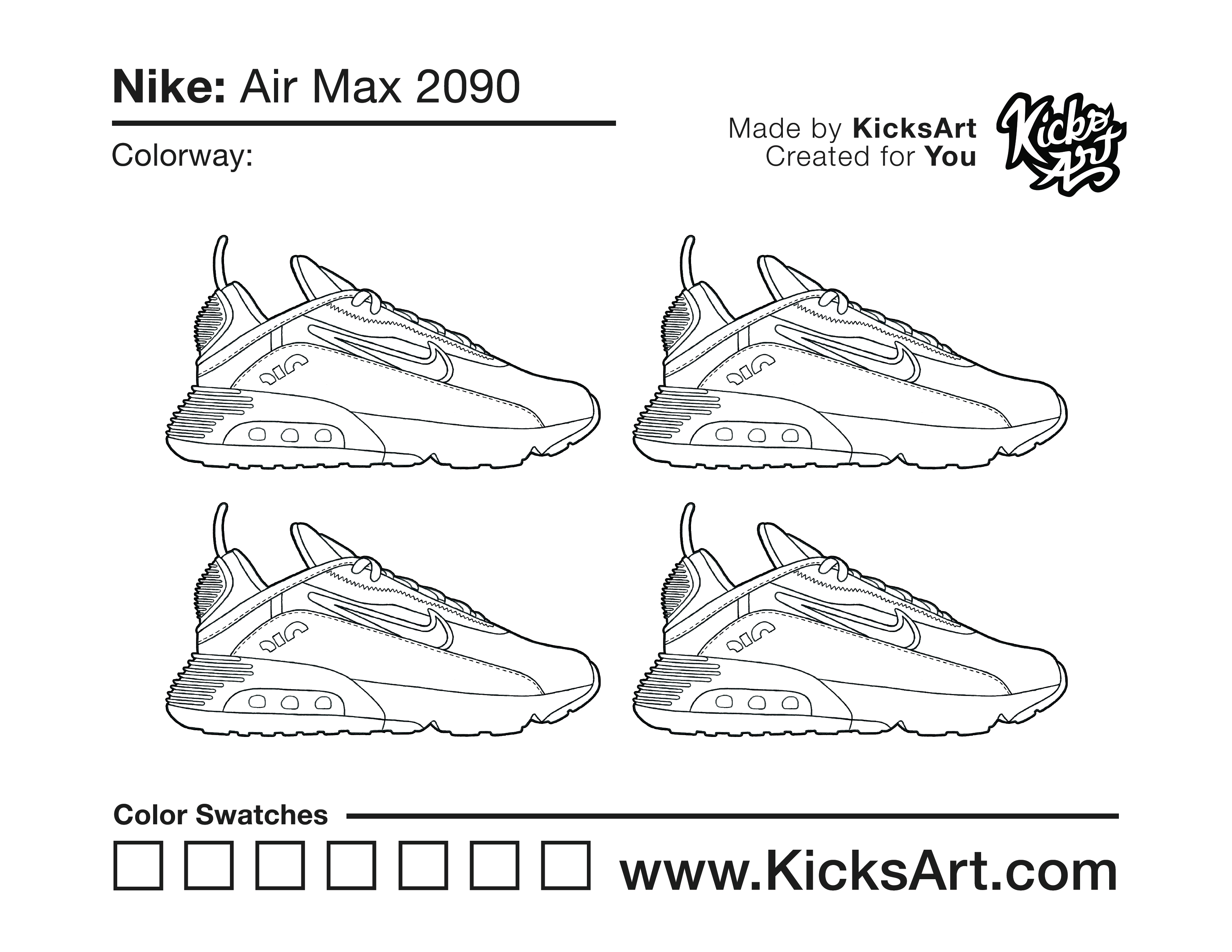 Nike Air Max 2090 Sneaker Coloring Pages March 14, 2019 kicksart05 For any sneaker coloring page, click on the button above the image to start the instant download! FREE Download: Nike Air Max 2090 Art materials can be expensive!Try out colorways on these smaller templates so your supplies can last longer! Nike Air Max 2090 (4UP)
