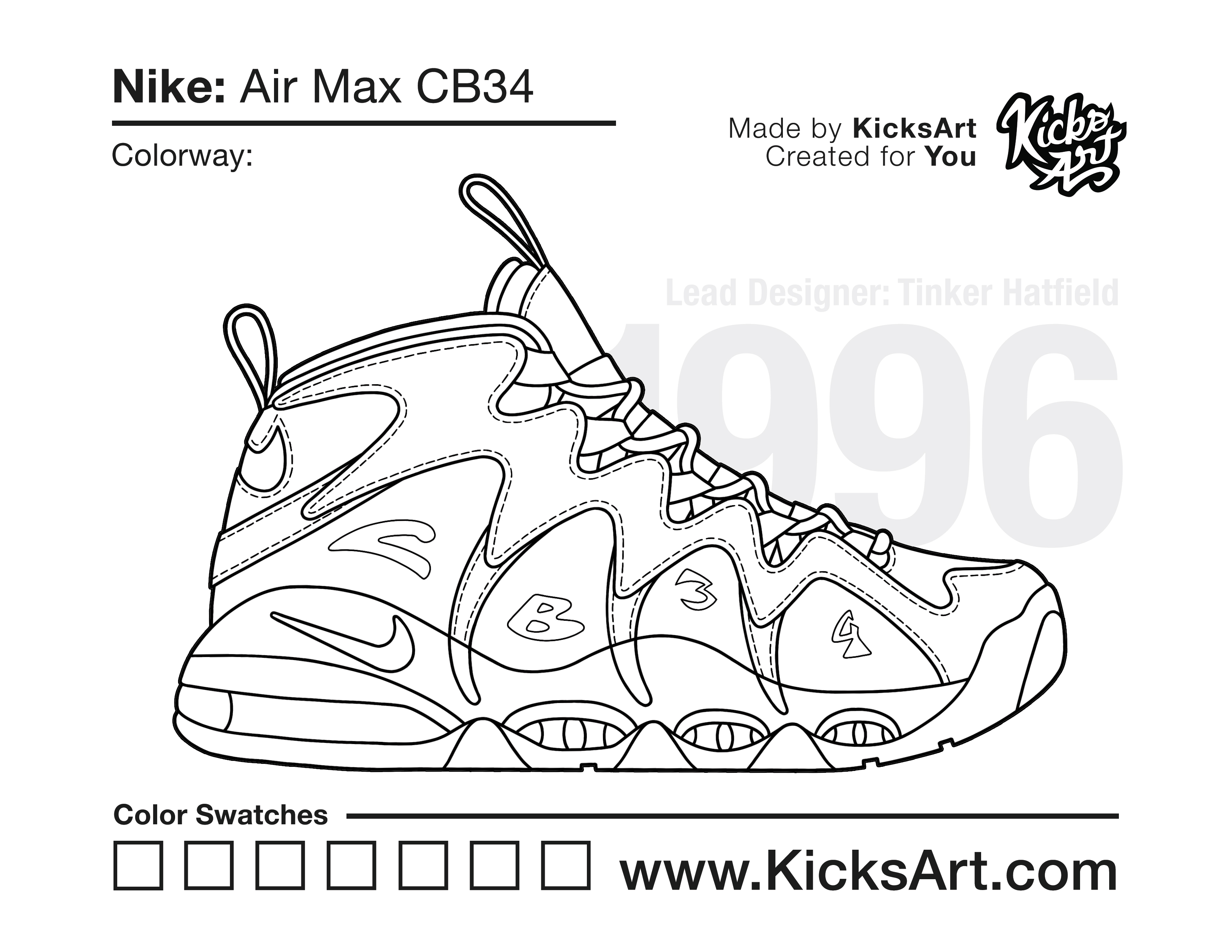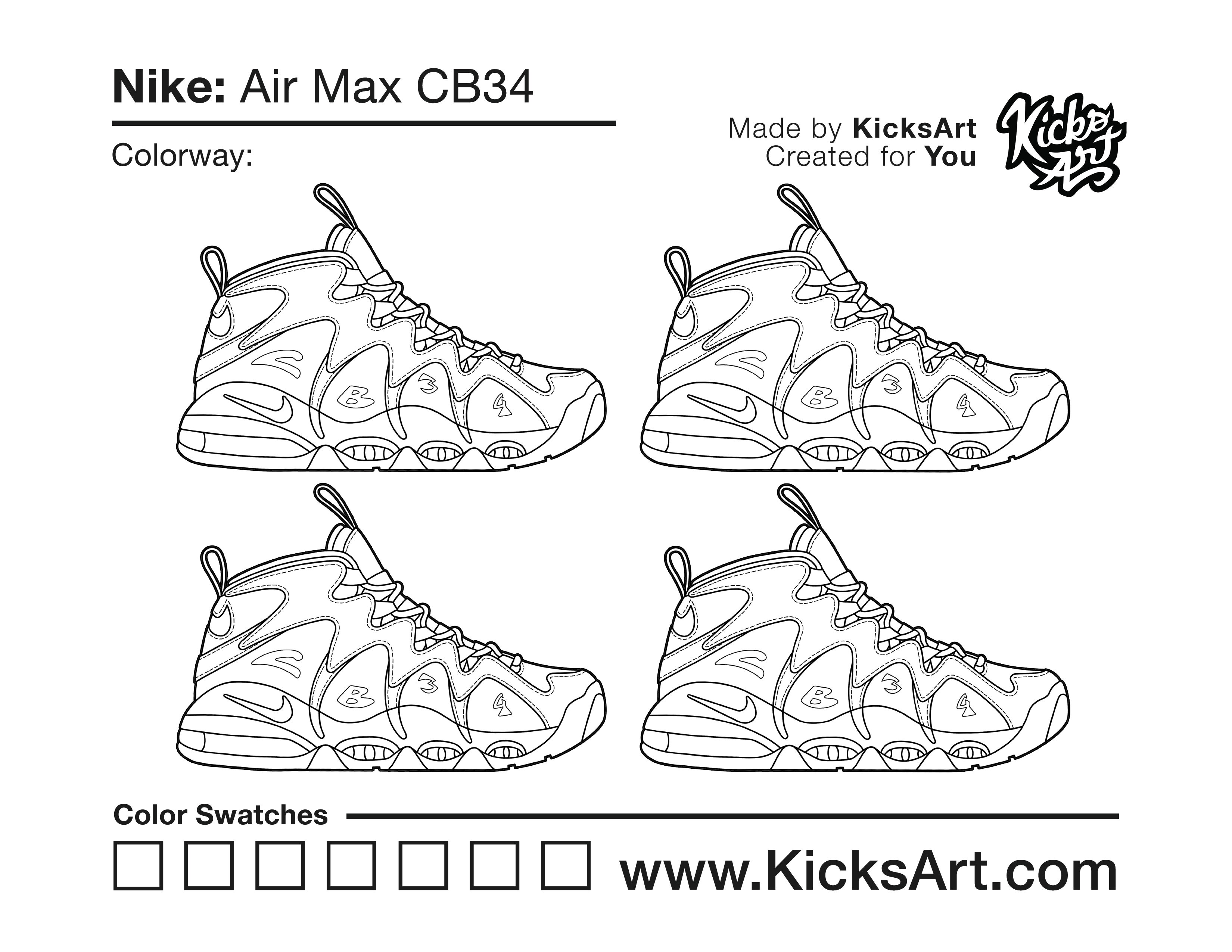 Nike Air Max CB34 Sneaker Coloring Pages July 24, 2021 kicksart05 For any sneaker coloring page, click on the button above the image to start the instant download! FREE Download: Nike Air Max CB34 Art materials can be expensive!Try out colorways on these smaller templates so your supplies can last longer! Nike Air Max CB34 (4UP)