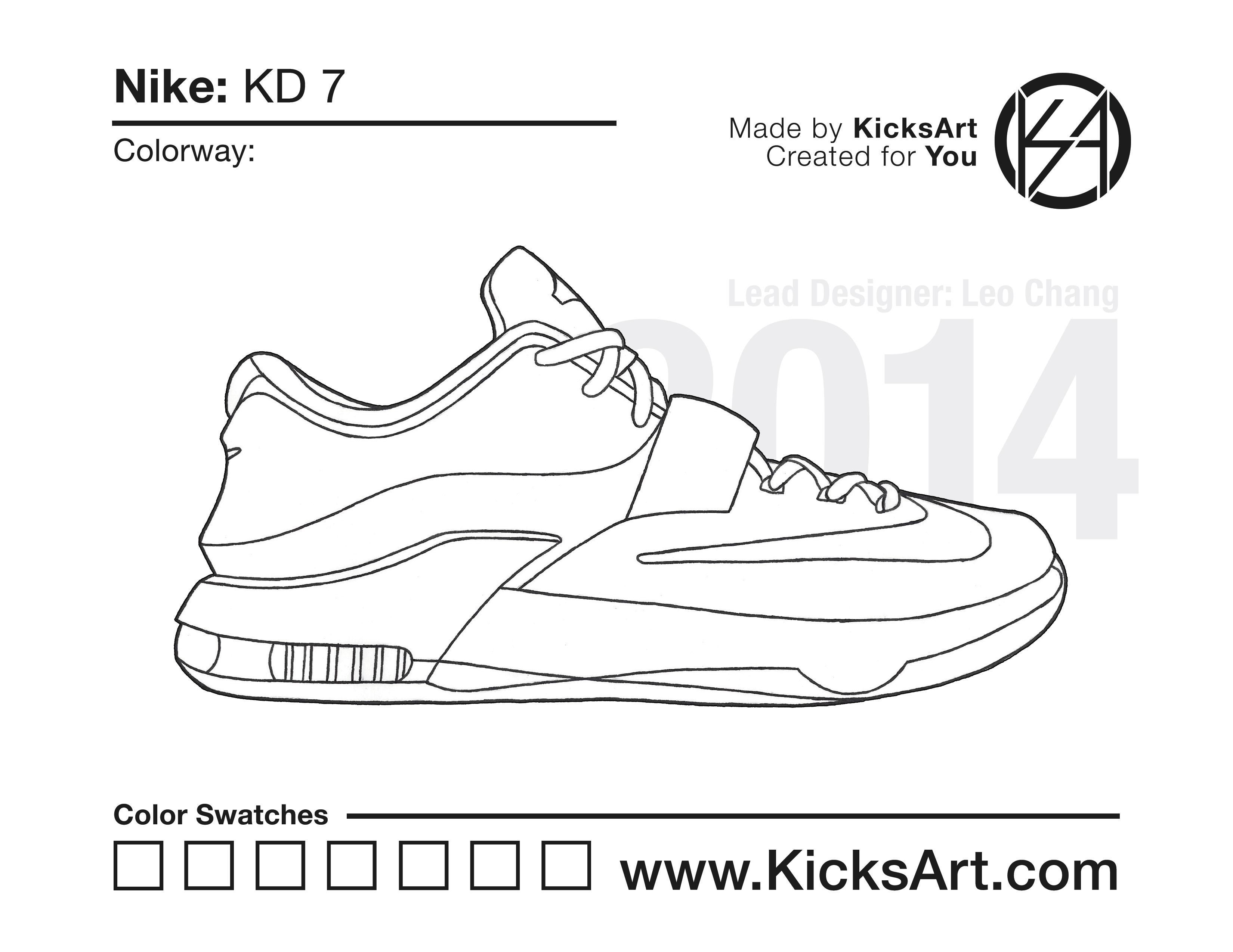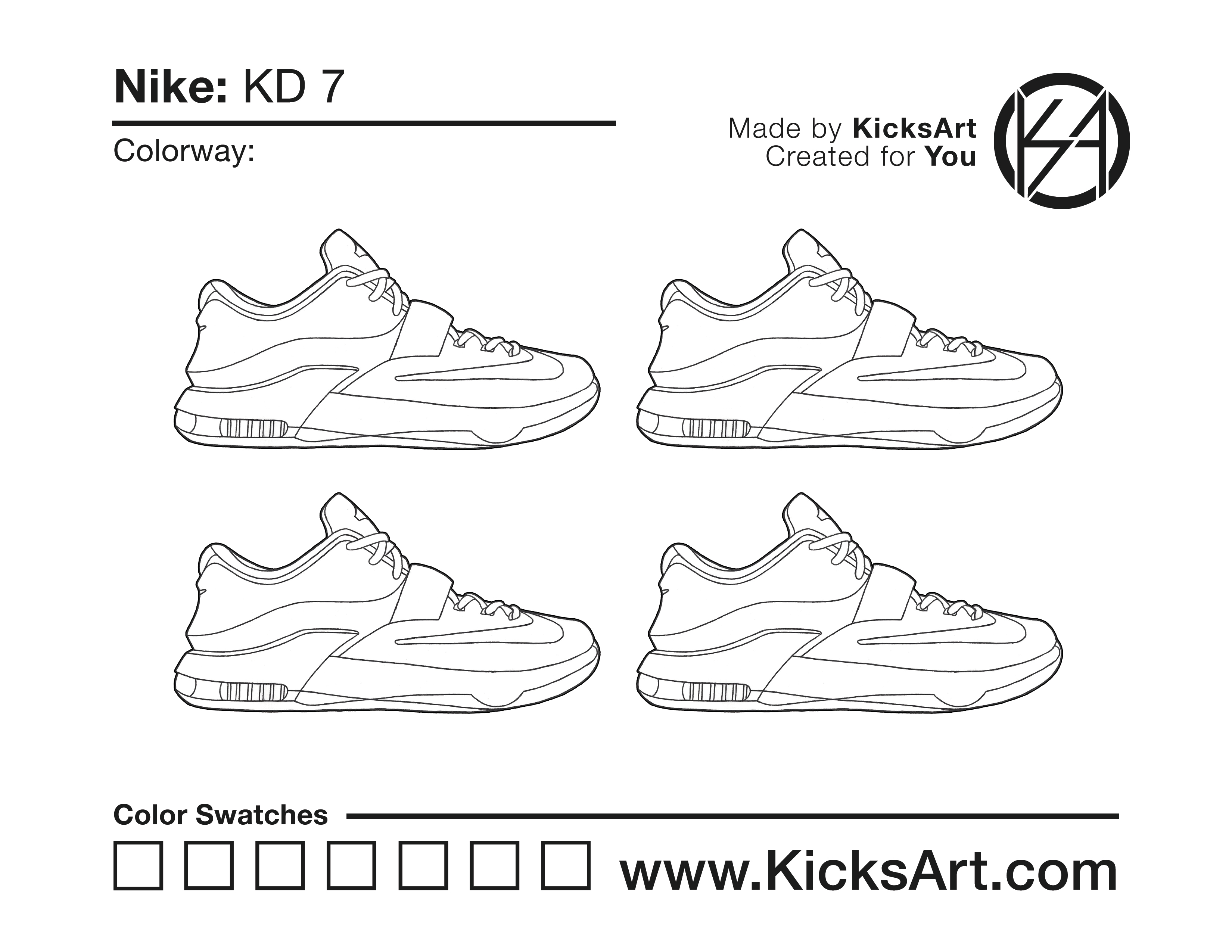 Nike KD 7 Sneaker Coloring Pages March 8, 2019 kicksart05 For any sneaker coloring page, click on the button above the image to start the instant download! FREE Download: Nike KD 7 Art materials can be expensive!Try out colorways on these smaller templates so your supplies can last longer! Nike KD 7 (4UP)
