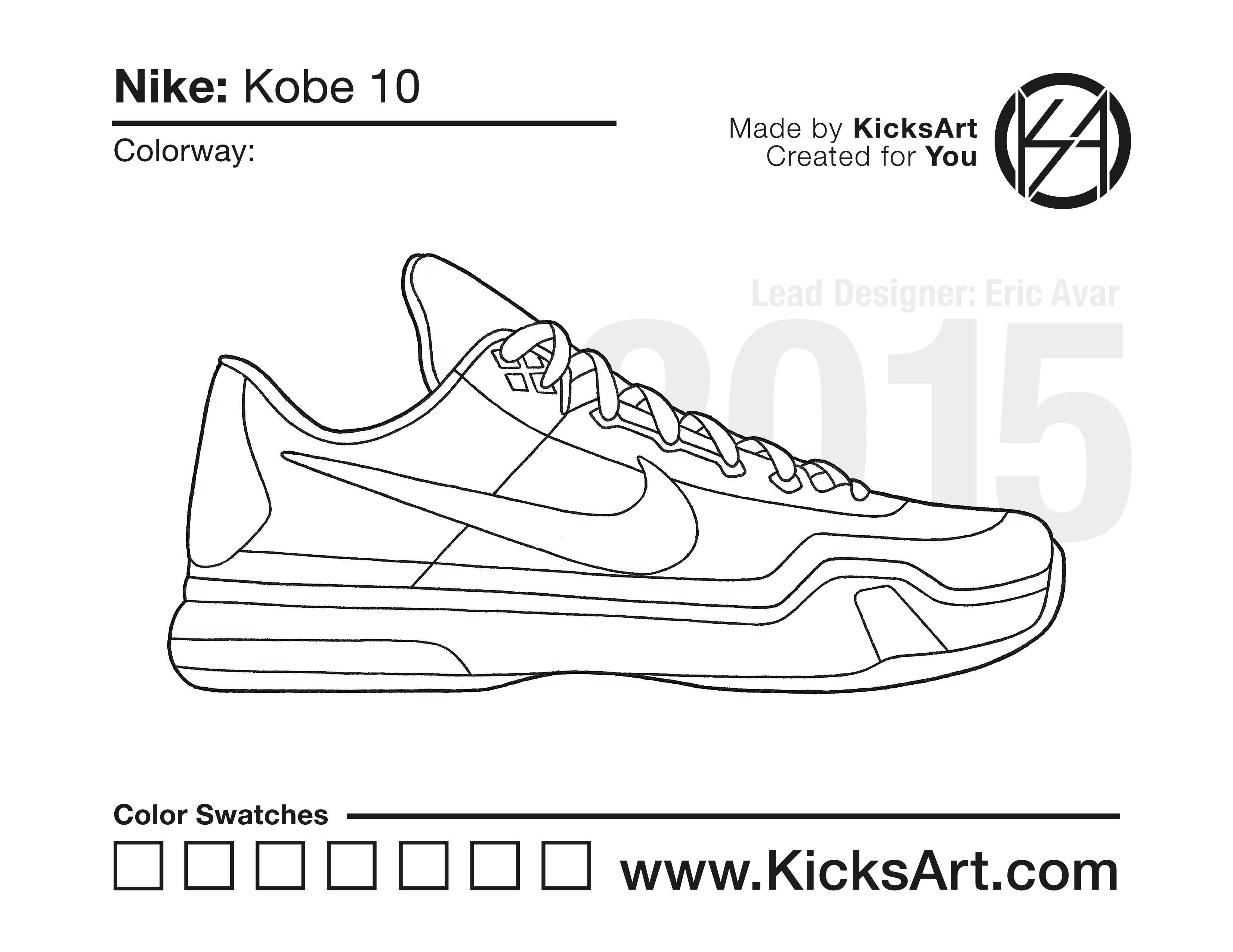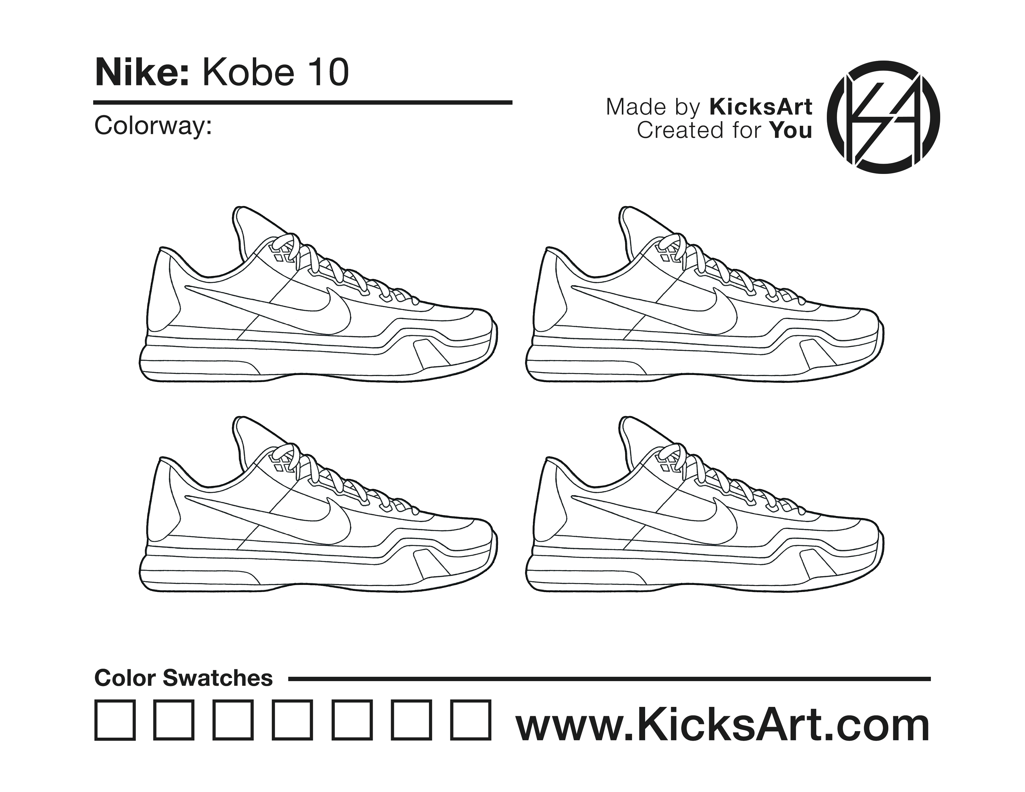 Nike Kobe 10 Sneaker Coloring Pages March 9, 2019 kicksart05 For any sneaker coloring page, click on the button above the image to start the instant download! FREE Download: Nike Kobe 10 Art materials can be expensive!Try out colorways on these smaller templates so your supplies can last longer! Nike Kobe 10 (4UP) Nike Kobe 10 (Drawing Guide) Drawing Guide (Page 2) Additional Variants Nike Kobe 10 Elite High Nike Kobe 10 Elite Low