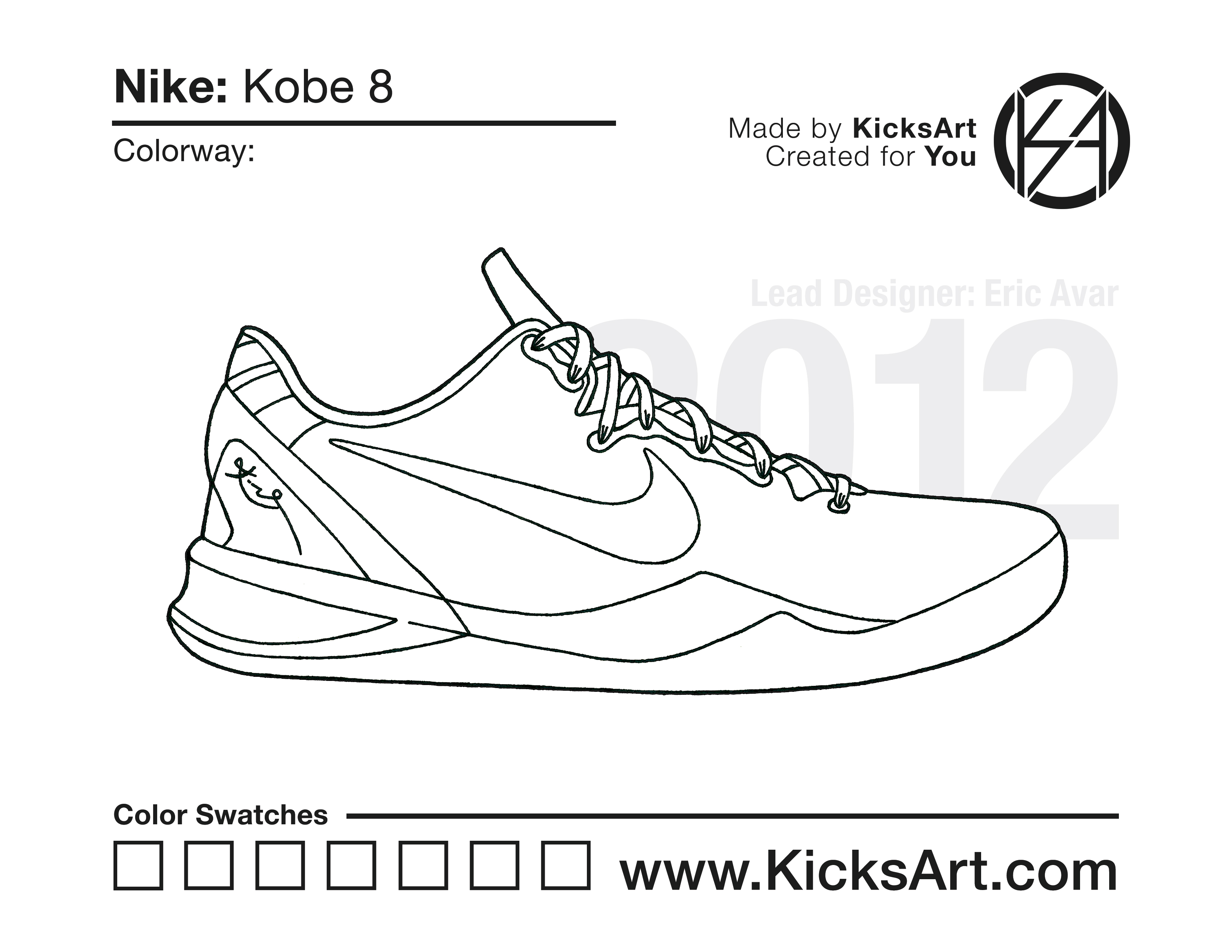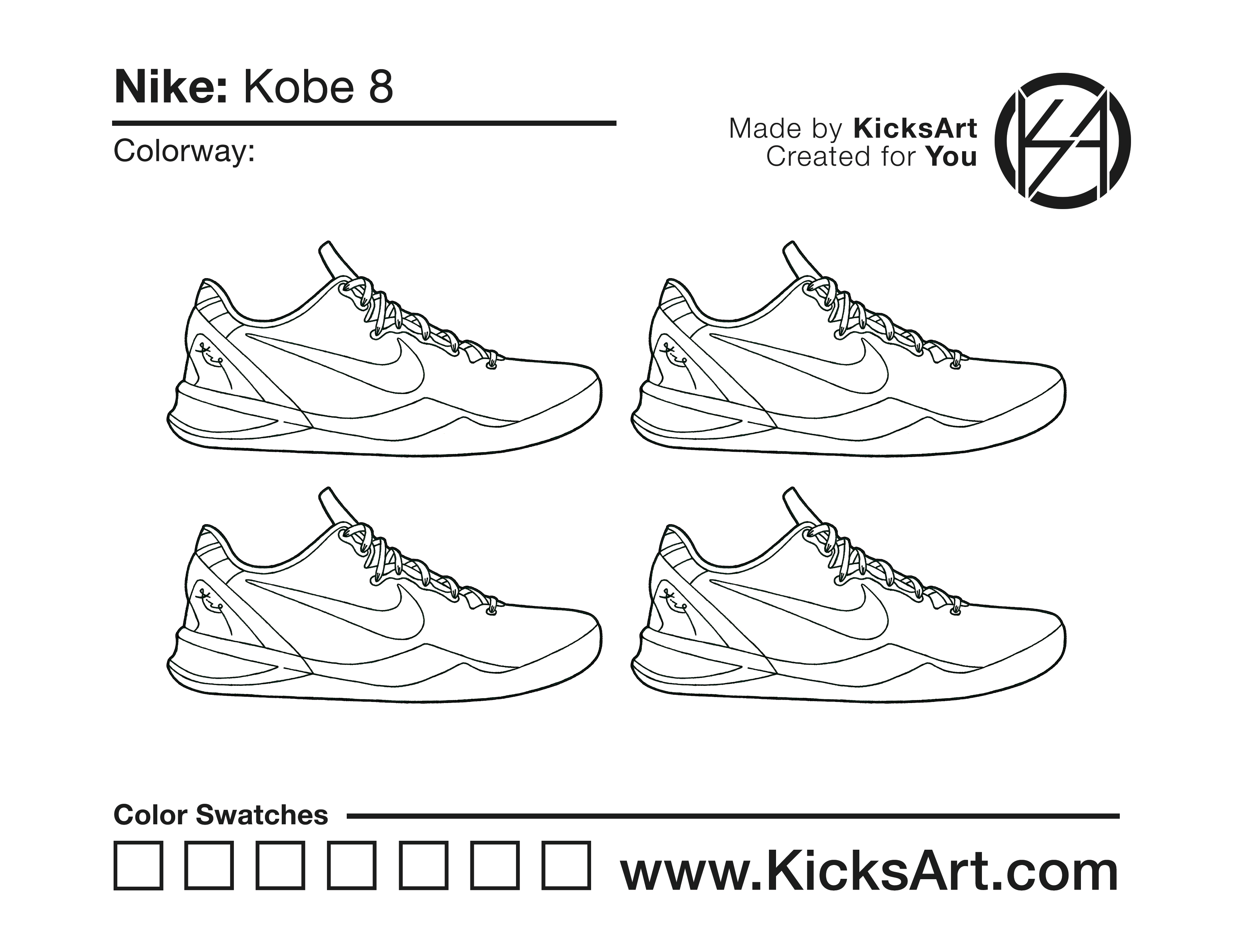 Nike Kobe 8 Sneaker Coloring Pages March 9, 2019 kicksart05 For any sneaker coloring page, click on the button above the image to start the instant download! FREE Download: Nike Kobe 8 Art materials can be expensive!Try out colorways on these smaller templates so your supplies can last longer! Nike Kobe 8 (4UP)