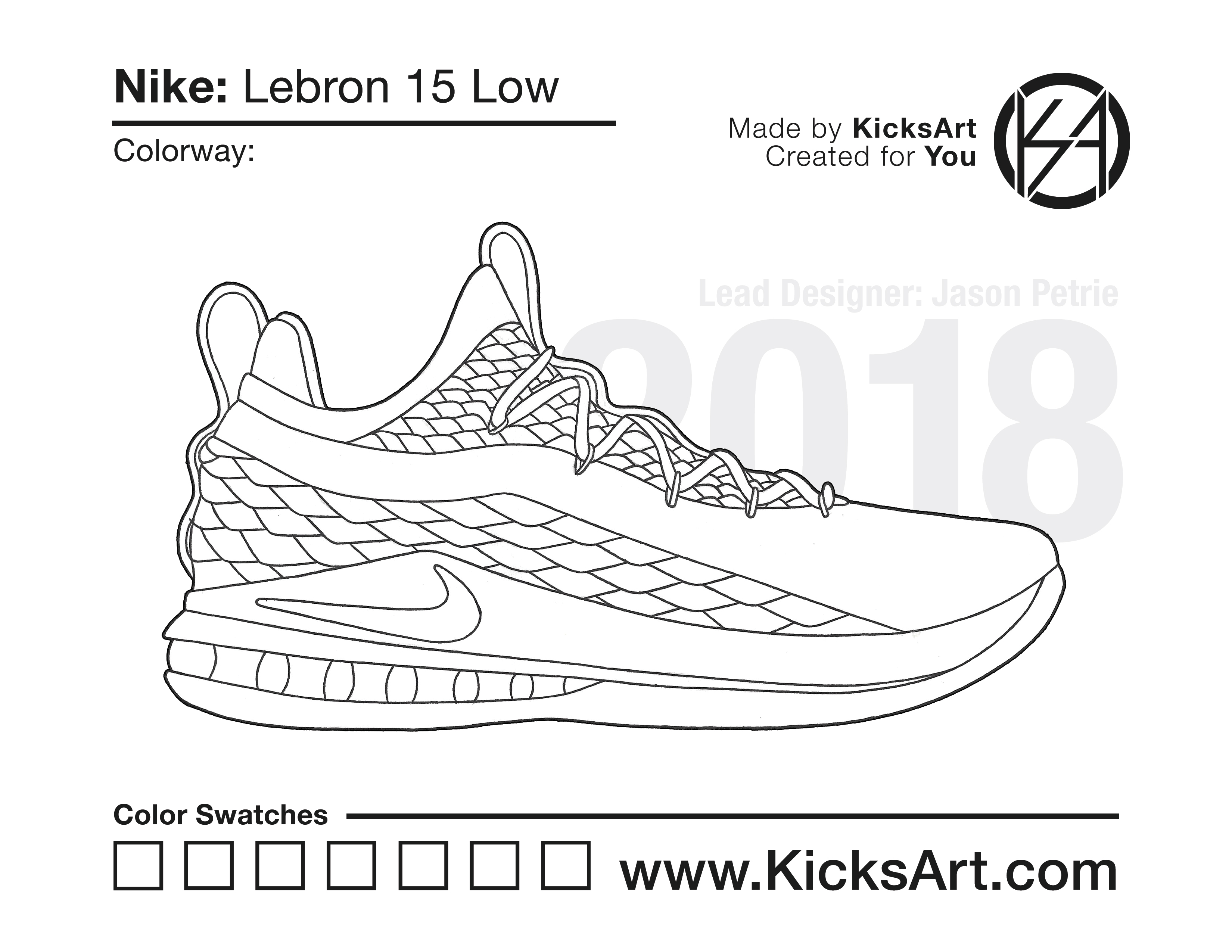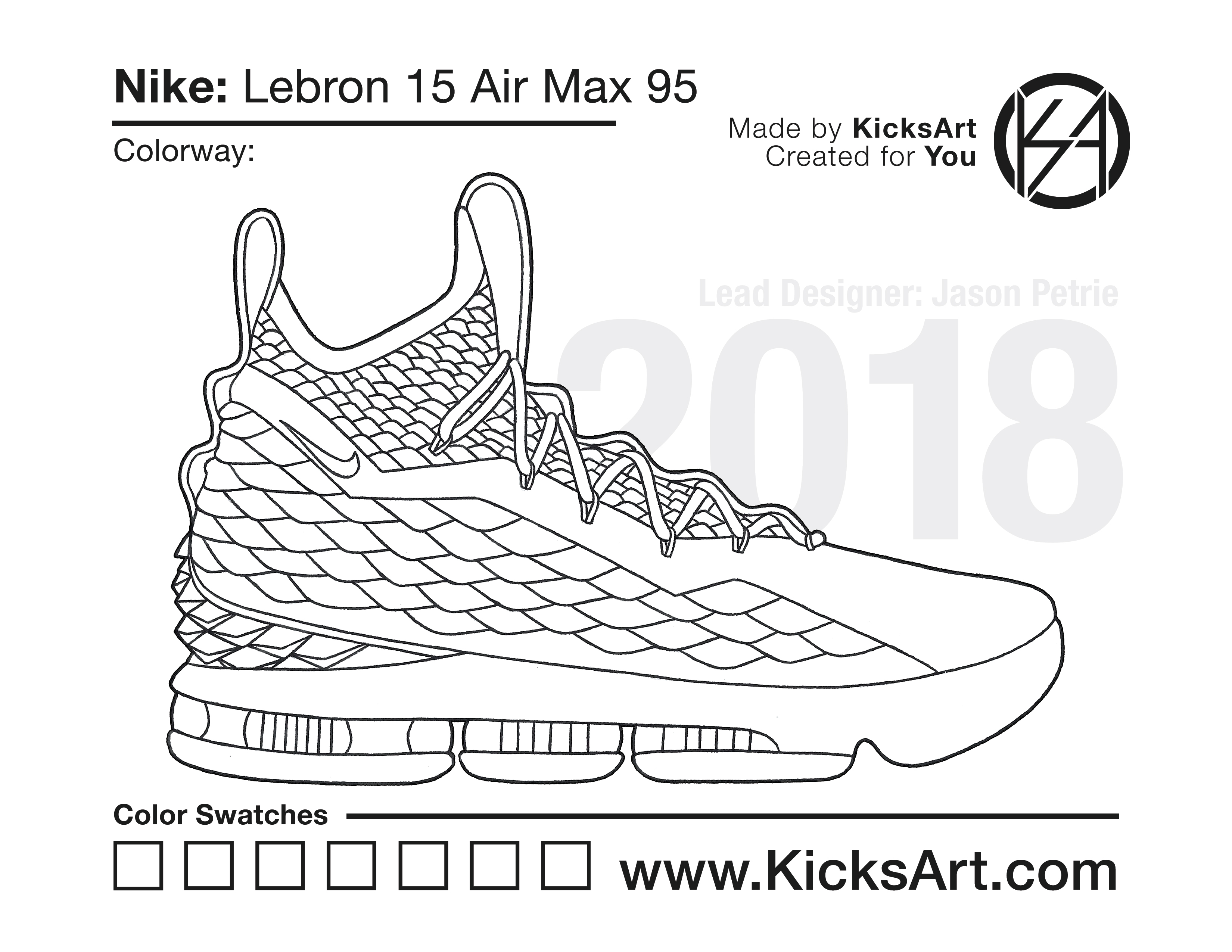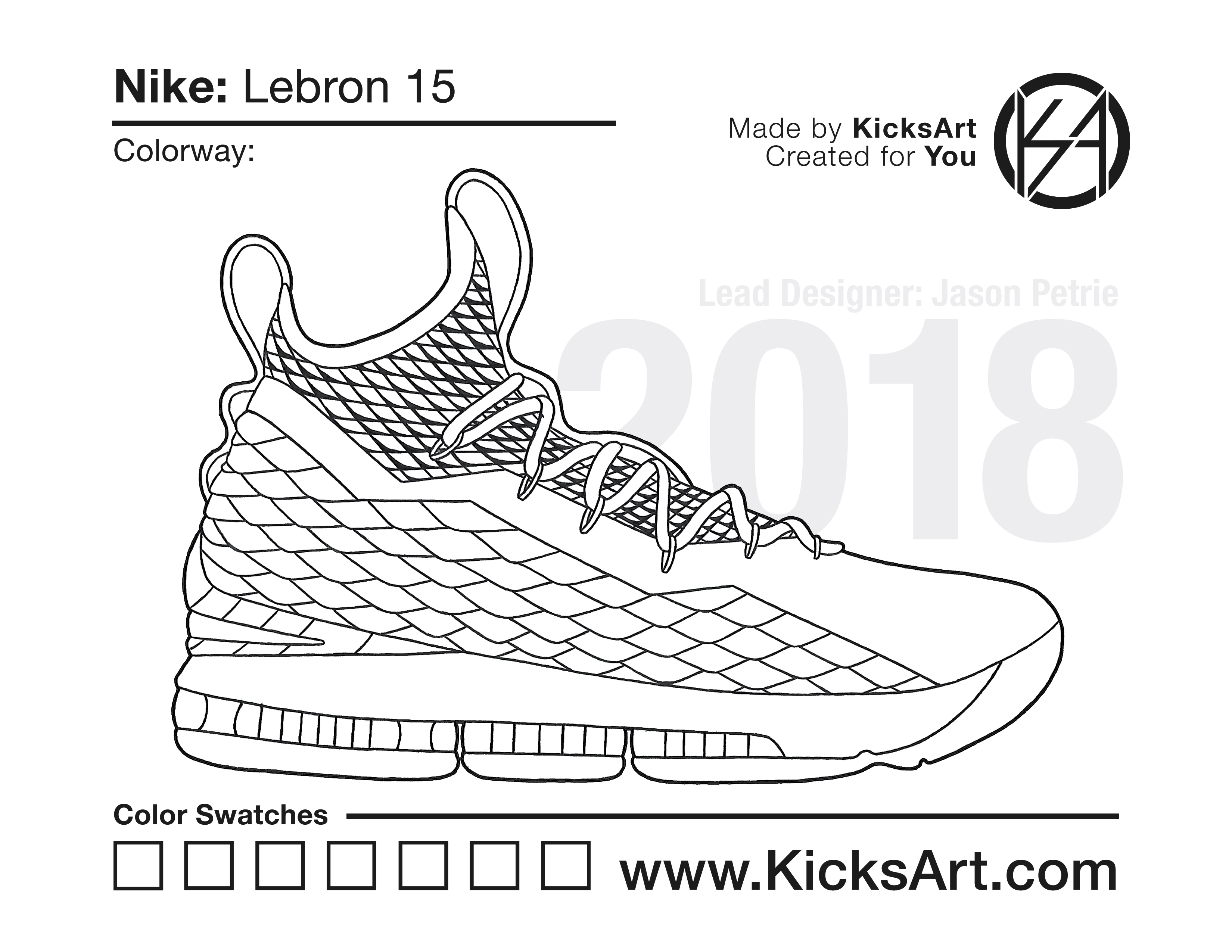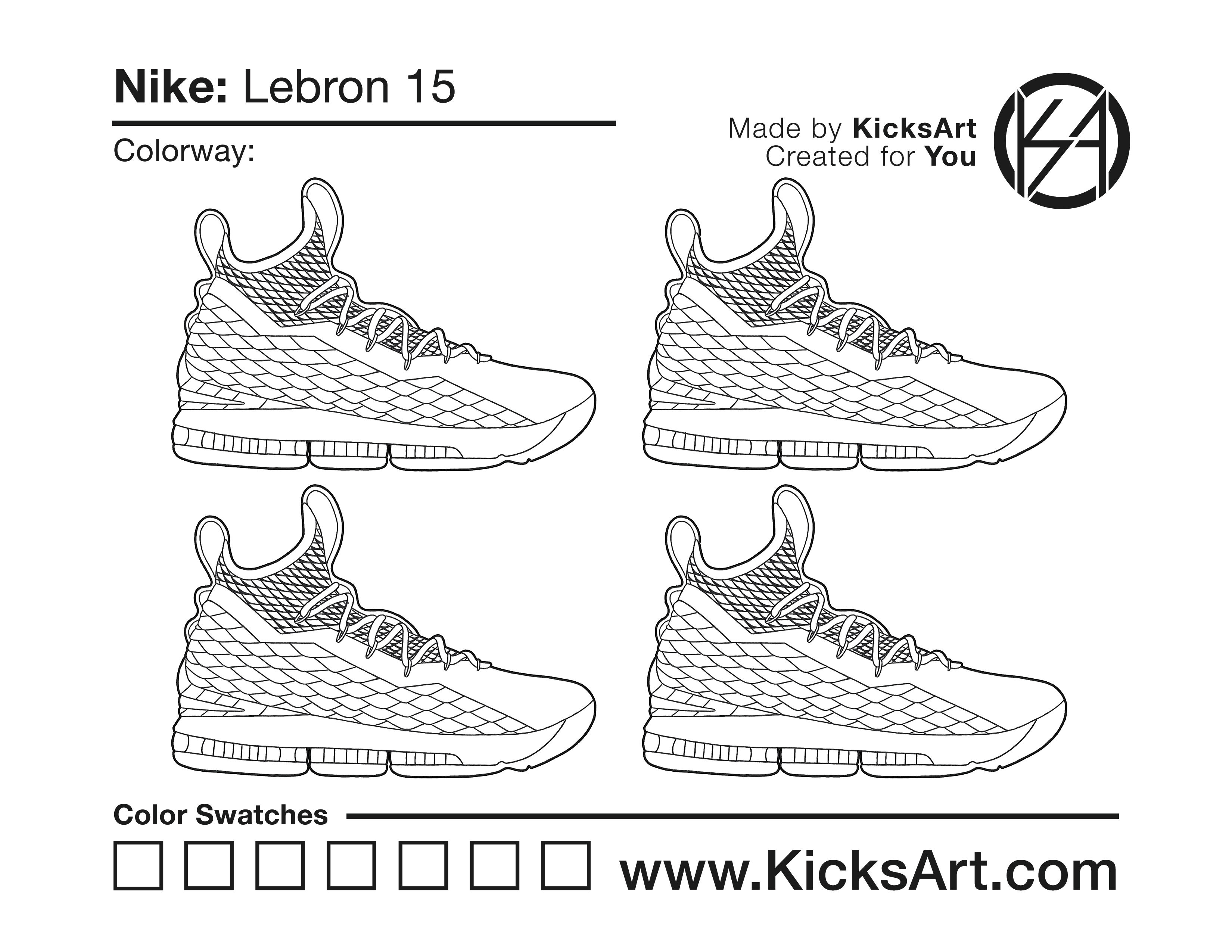 Nike Lebron 15 Sneaker Coloring Pages March 6, 2019 kicksart05 For any sneaker coloring page, click on the button above the image to start the instant download! FREE Download: Nike Lebron 15 Art materials can be expensive!Try out colorways on these smaller templates so your supplies can last longer! Nike Lebron 15 (4UP) Additional Variants Nike Lebron 15 Air Max 95 Nike Lebron 15 Low