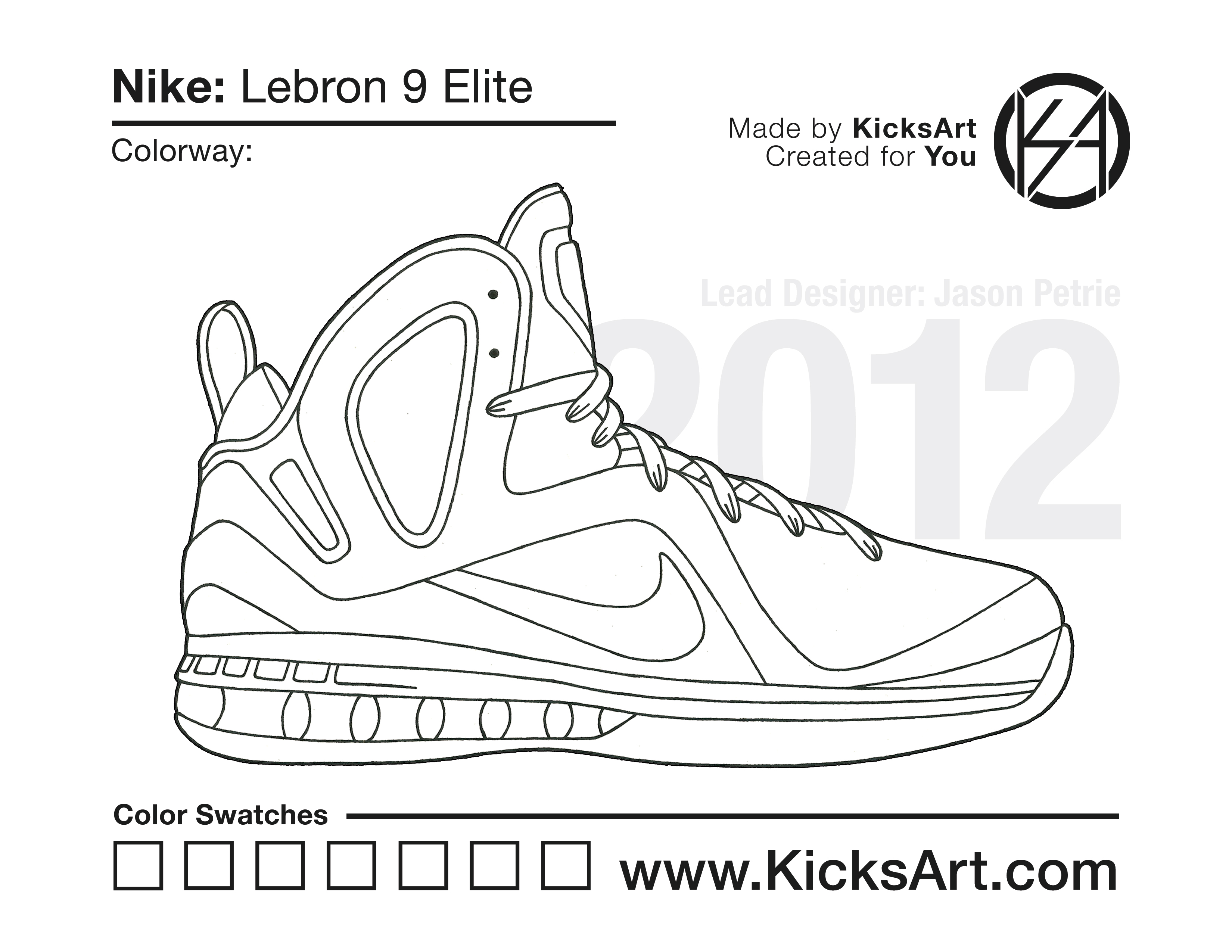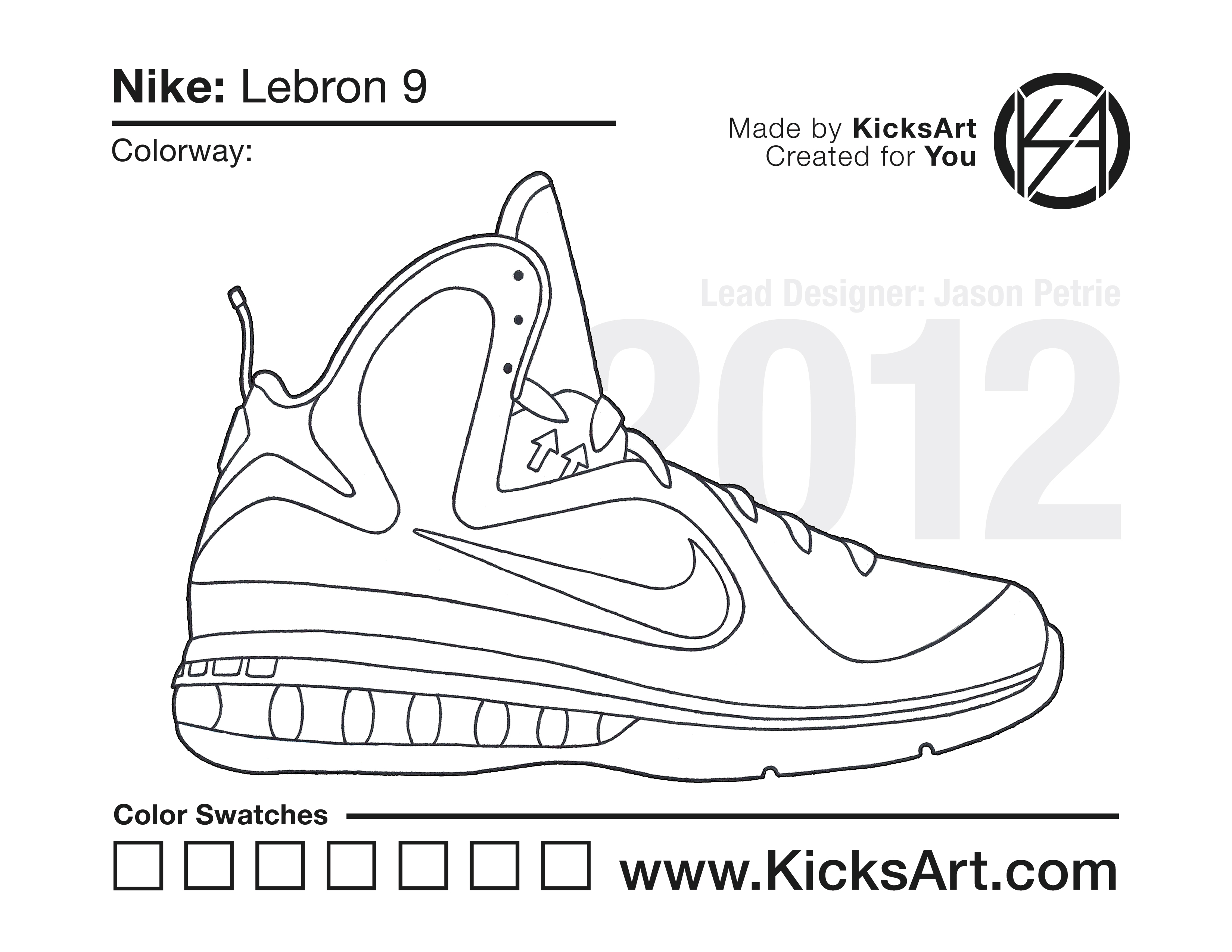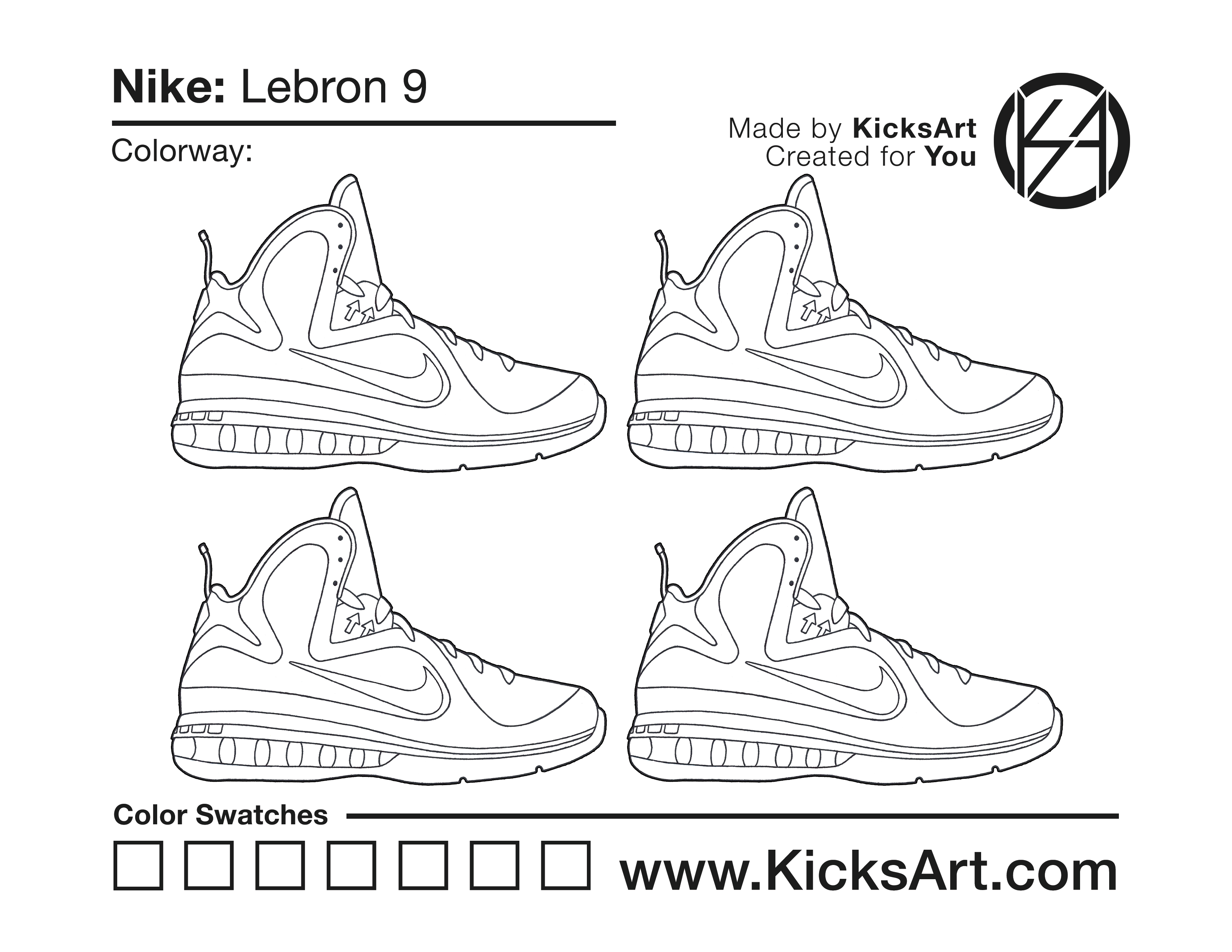 Nike Lebron 9 Sneaker Coloring Pages March 5, 2019 kicksart05 For any sneaker coloring page, click on the button above the image to start the instant download! FREE Download: Nike Lebron 9 Art materials can be expensive!Try out colorways on these smaller templates so your supplies can last longer! Nike Lebron 9 (4UP) Additional Variants Nike Lebron 9 Elite