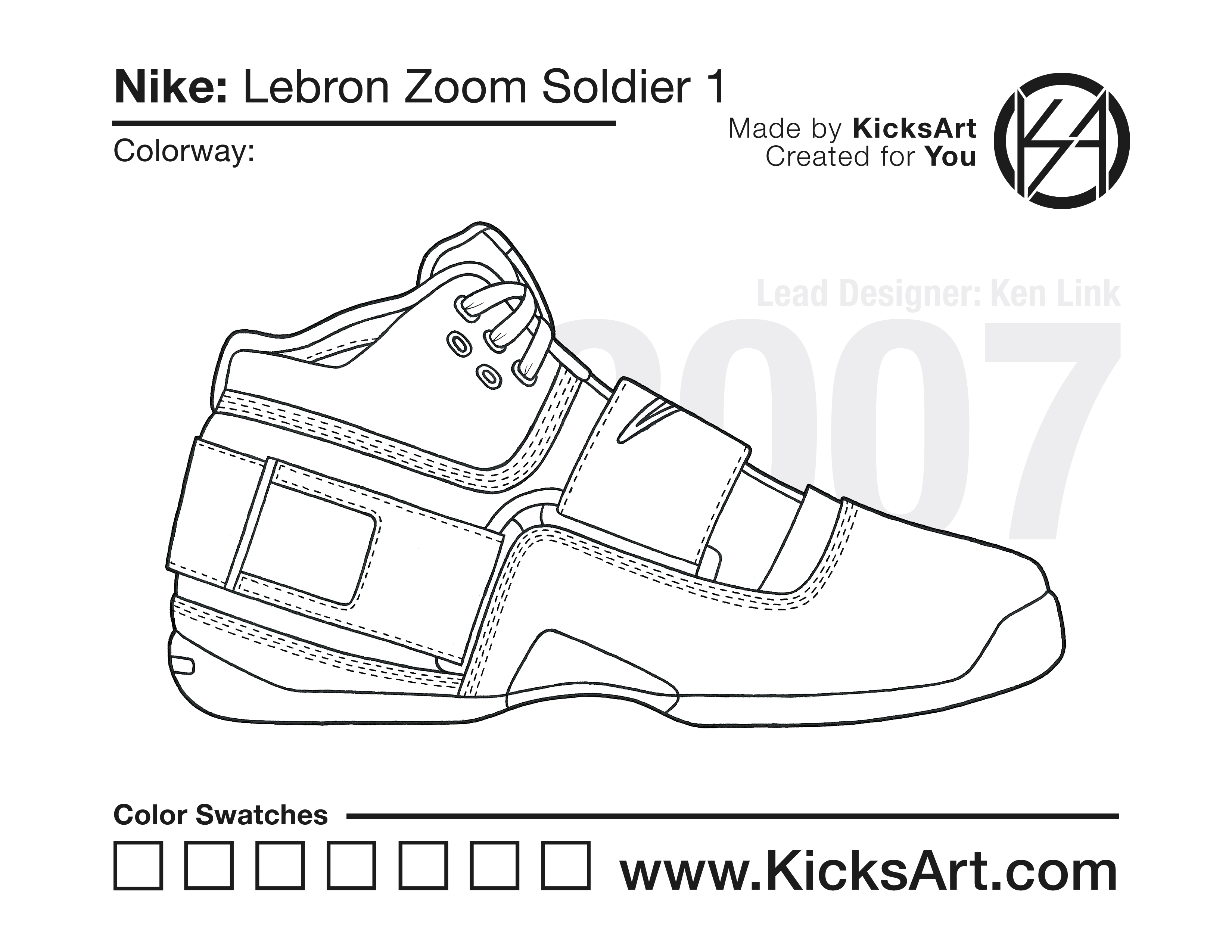 Nike Lebron Soldier 1 Sneaker Coloring Pages March 5, 2019 kicksart05 For any sneaker coloring page, click on the button above the image to start the instant download! FREE Download: Nike Lebron Soldier 1 Art materials can be expensive!Try out colorways on these smaller templates so your supplies can last longer! Nike Lebron Soldier 1 (4UP)