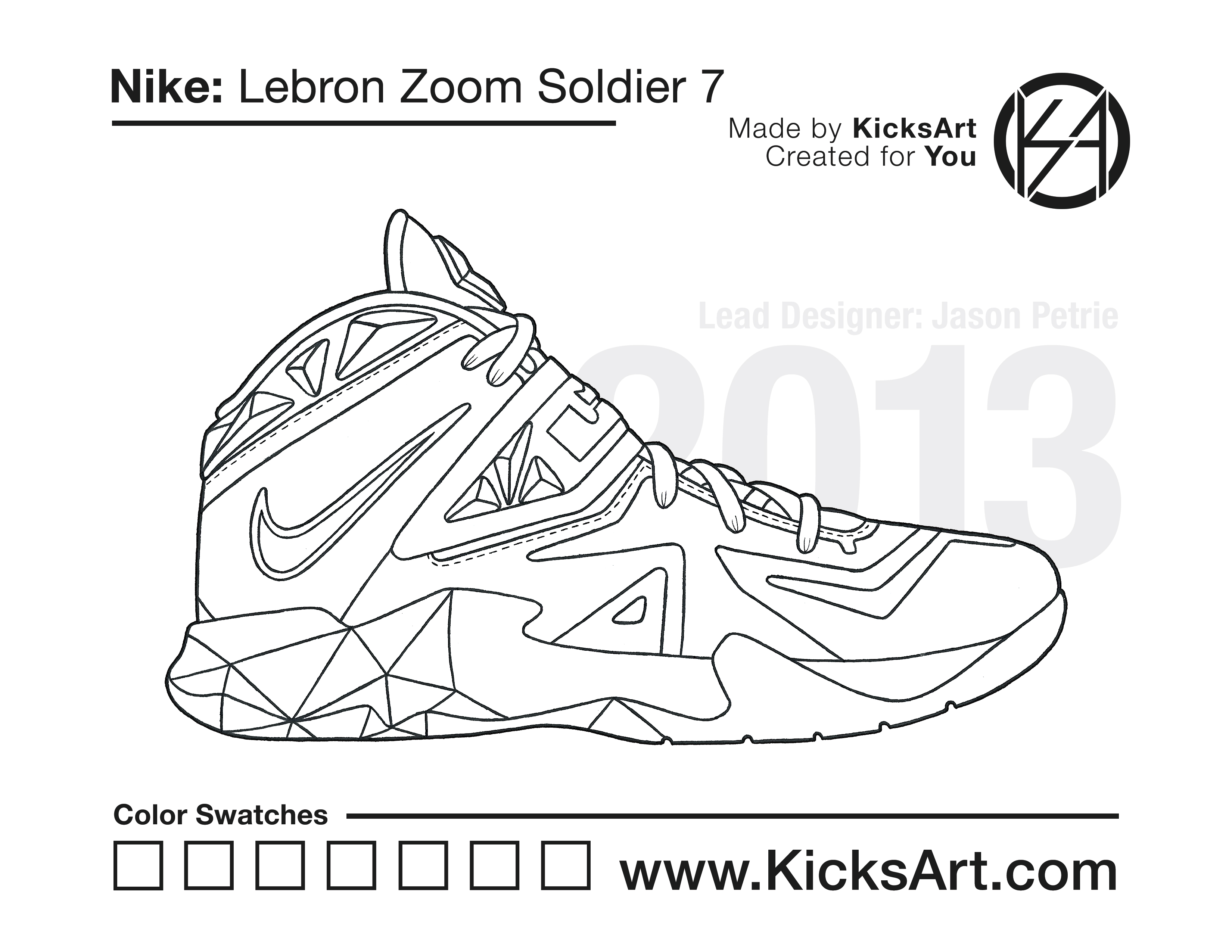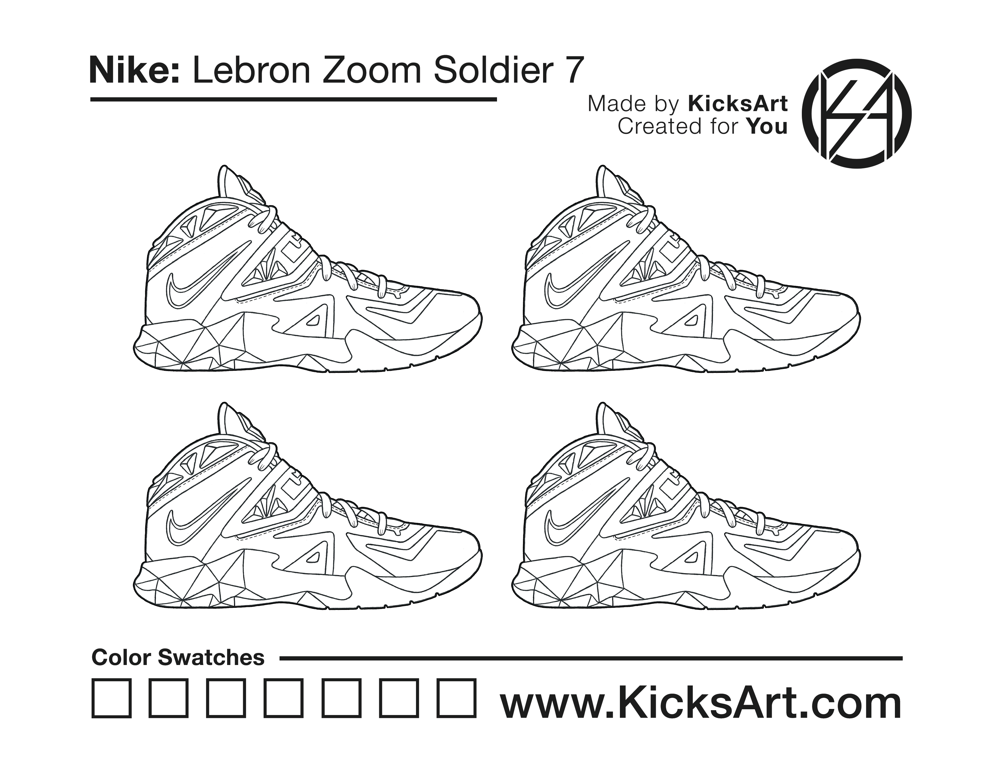 Nike Lebron Soldier 7 Sneaker Coloring Pages March 5, 2019 kicksart05 For any sneaker coloring page, click on the button above the image to start the instant download! FREE Download: Nike Lebron Soldier 7 Art materials can be expensive!Try out colorways on these smaller templates so your supplies can last longer! Nike Lebron Soldier 7 (4UP)