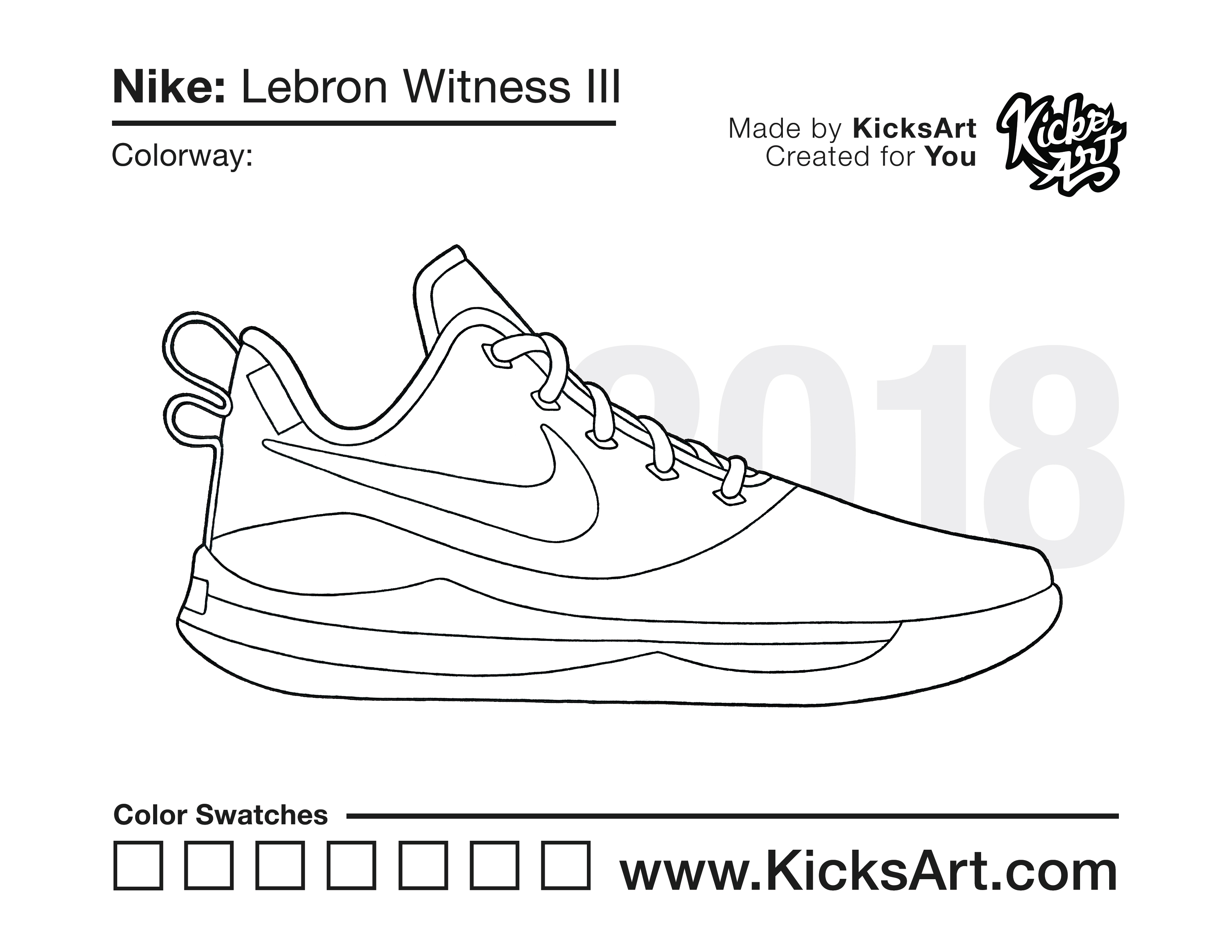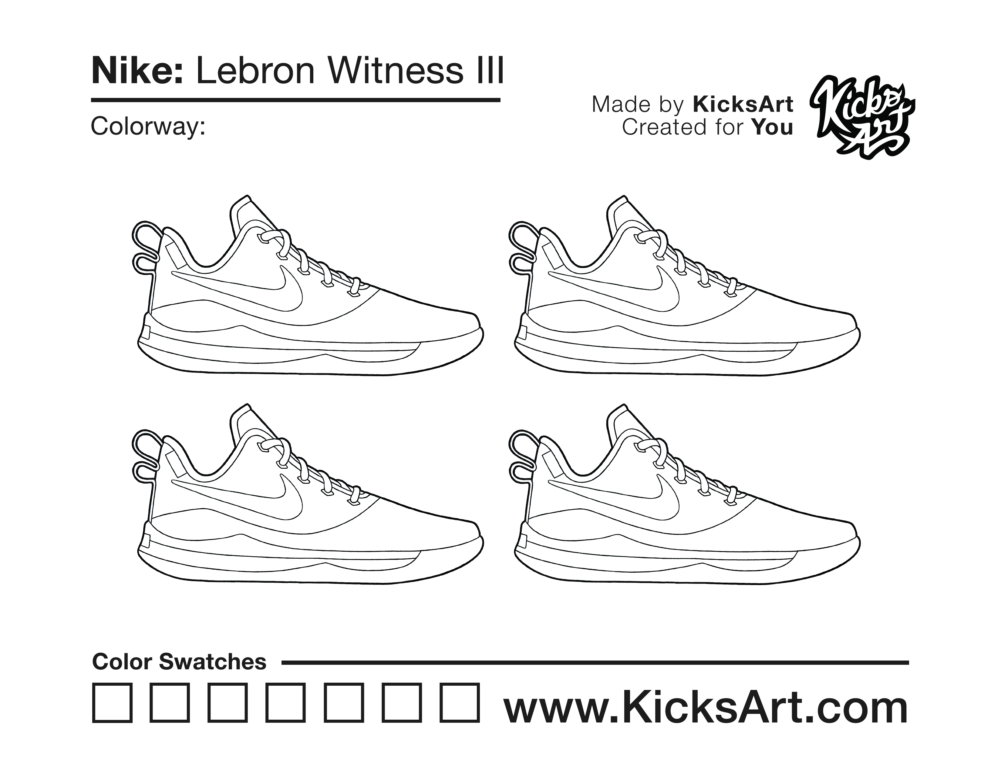 Nike Lebron Witness III Sneaker Coloring Pages October 1, 2020 kicksart05 For any sneaker coloring page, click on the button above the image to start the instant download! FREE Download: Nike Lebron Witness III Art materials can be expensive!Try out colorways on these smaller templates so your supplies can last longer! Nike Lebron Witness III (4UP)