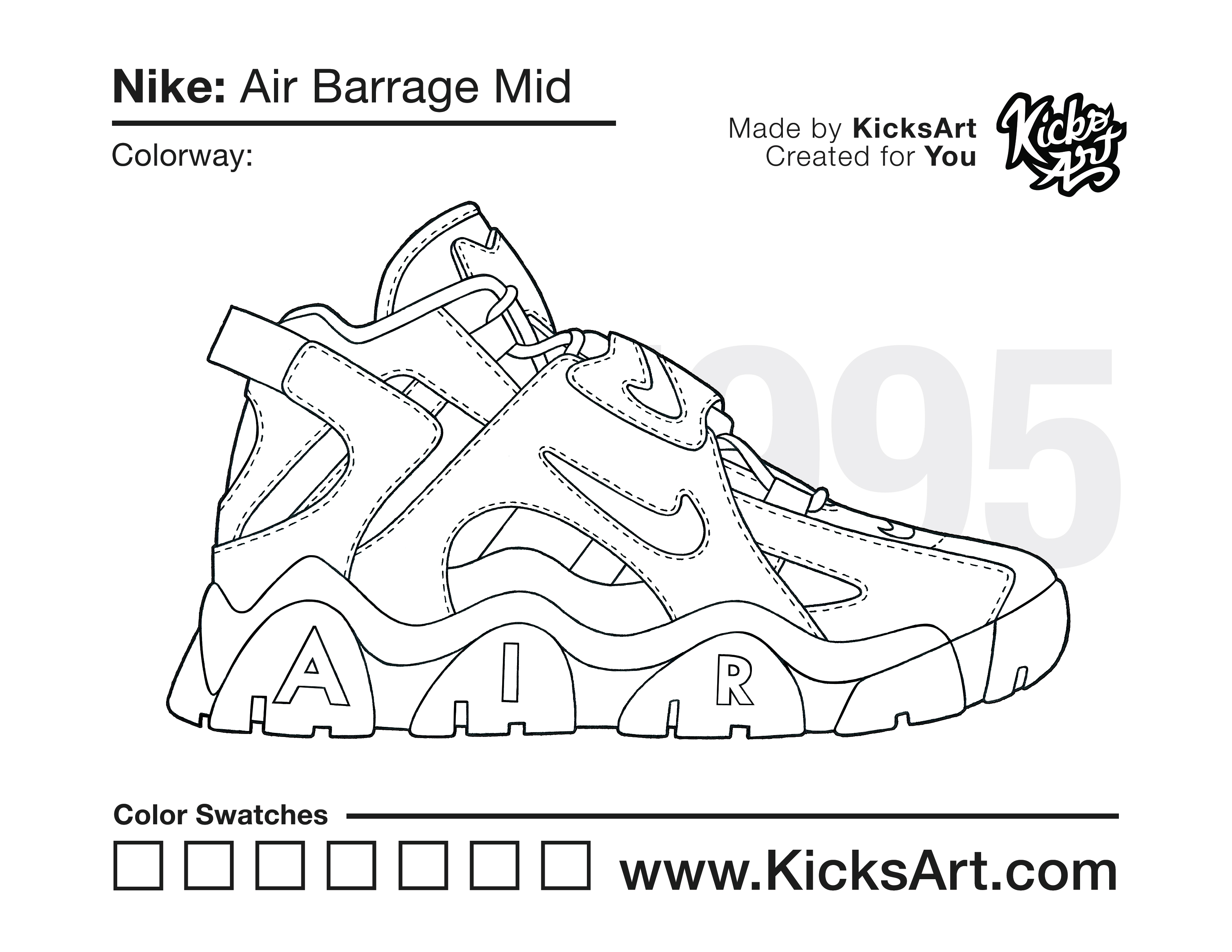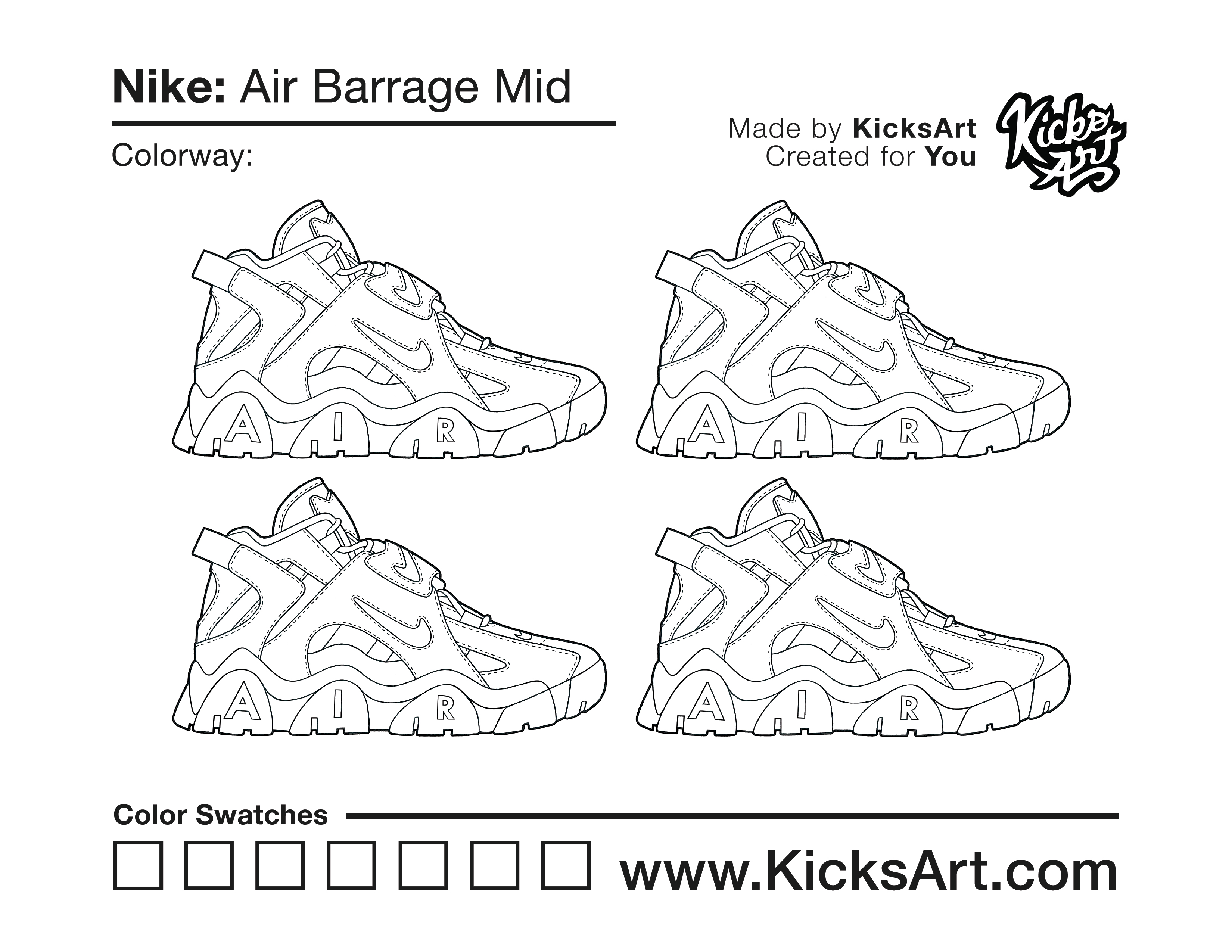 Nike Air Barrage Mid Sneaker Coloring Pages August 21, 2020 kicksart05 For any sneaker coloring page, click on the button above the image to start the instant download! FREE Download: Nike Air Barrage Mid Art materials can be expensive!Try out colorways on these smaller templates so your supplies can last longer! Nike Air Barrage Mid (4UP) Nike Air Barrage Mid (Drawing Guide) Drawing Guide (Page 2)